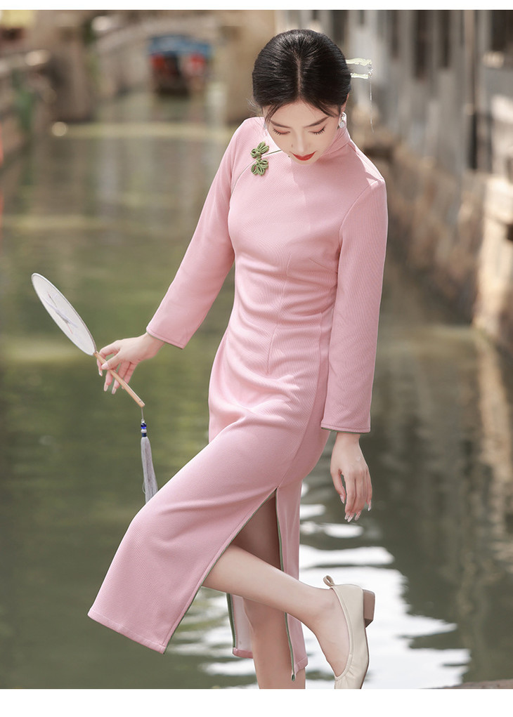粉色旗袍年轻款高端气质改良少女秋冬新中式淑女QZX3068