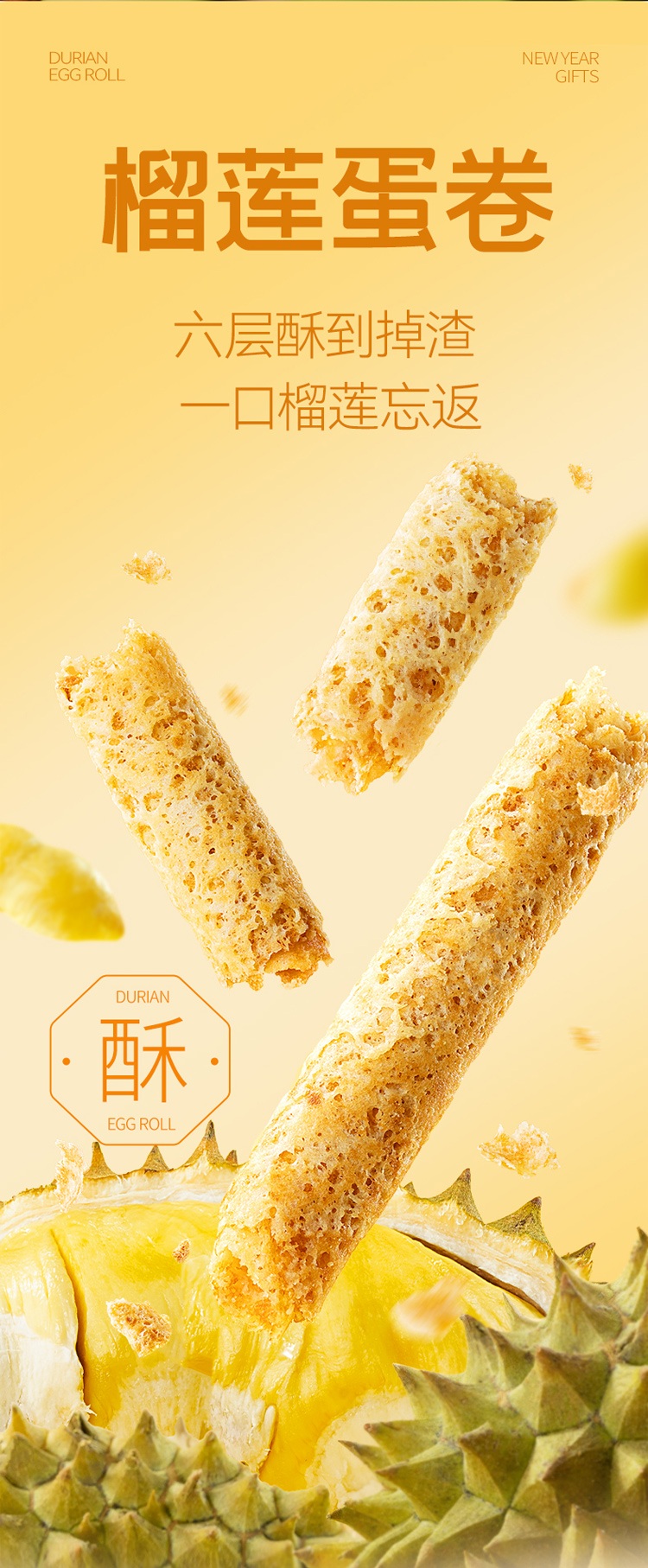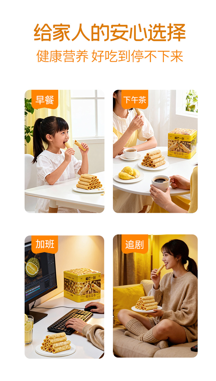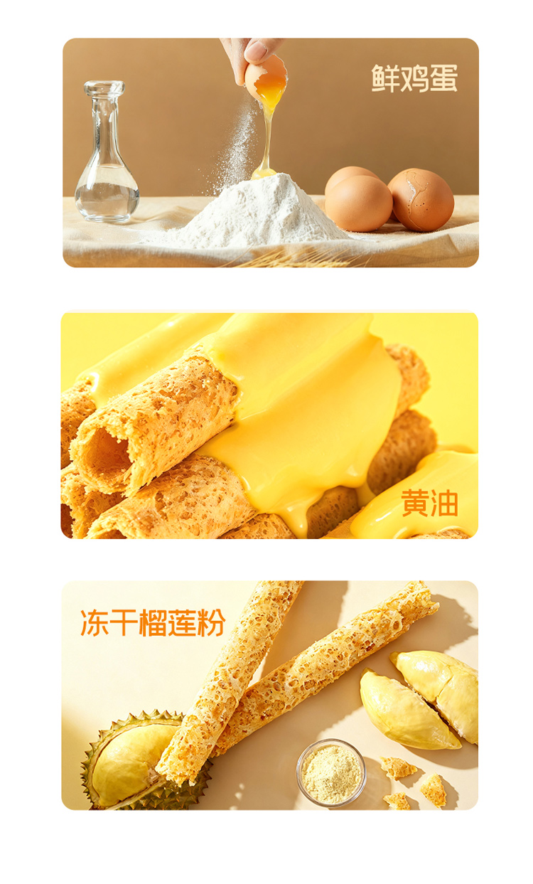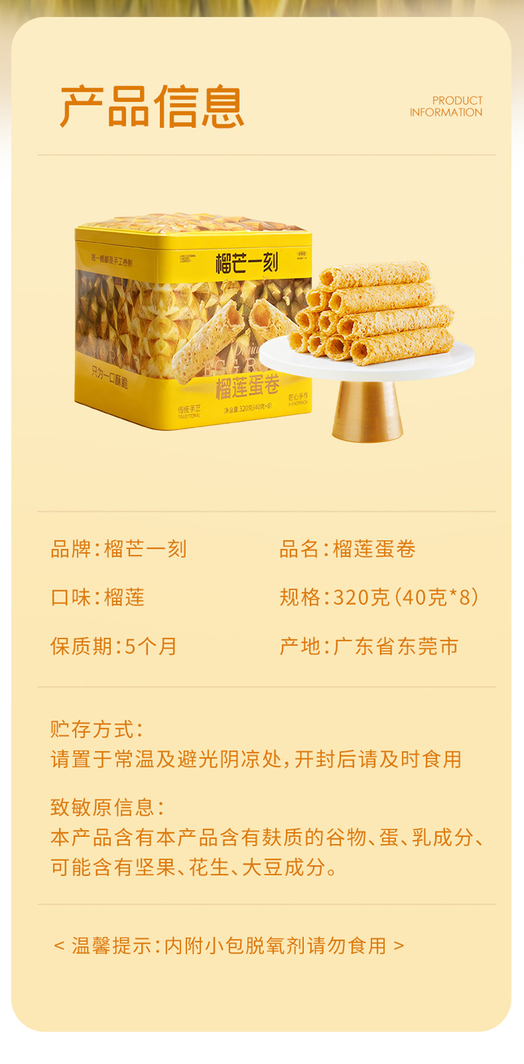 【榴芒一刻】榴芒一刻榴莲蛋卷礼盒手工鸡蛋卷黄油饼干零食点心年货礼盒伴手礼