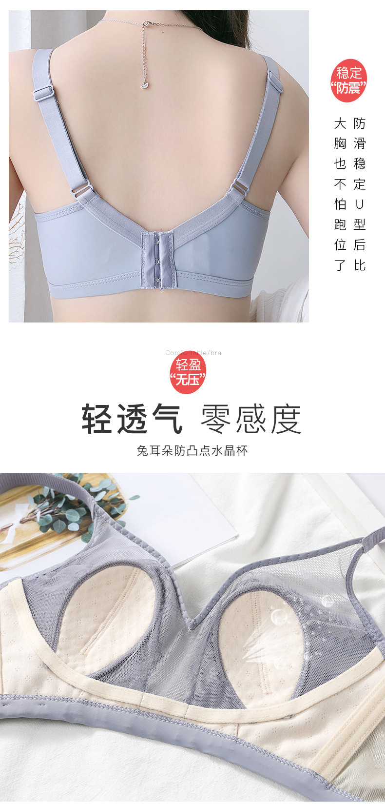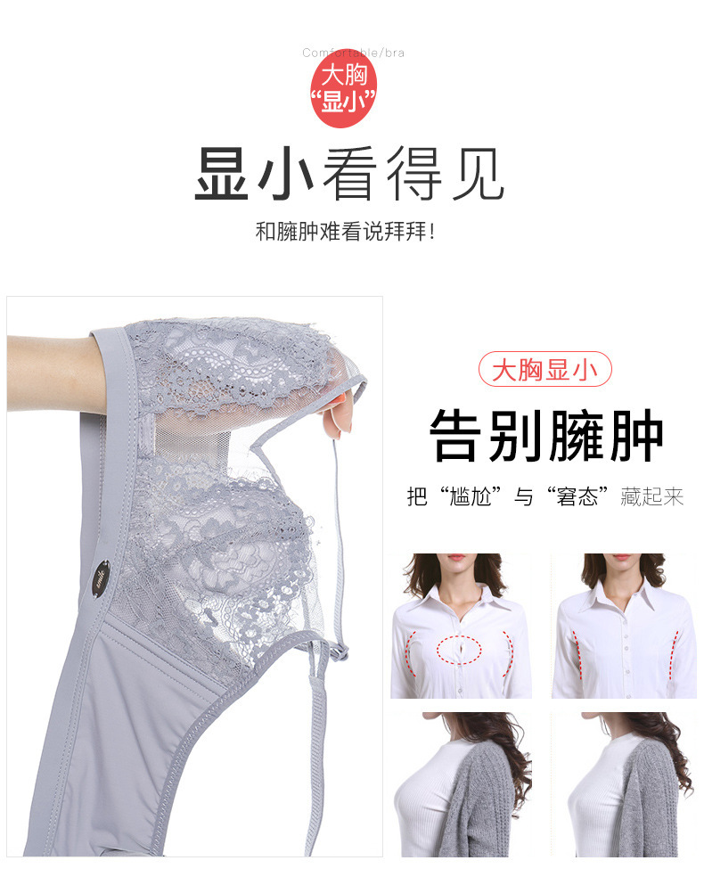 YTM-101新品无钢圈水晶杯超薄文胸 聚拢调整型收副上托大胸显小内衣