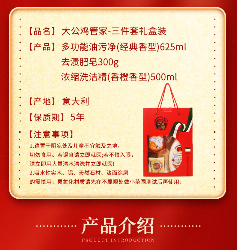 CHANTECLAIR大公鸡管家三件套礼盒 油污净600ml+马赛皂300g+浓缩洗洁精500ml