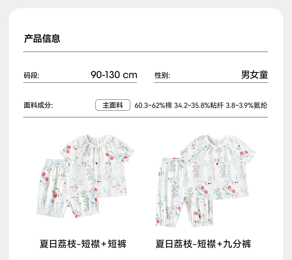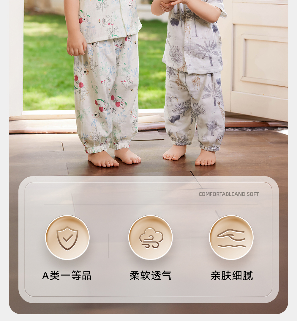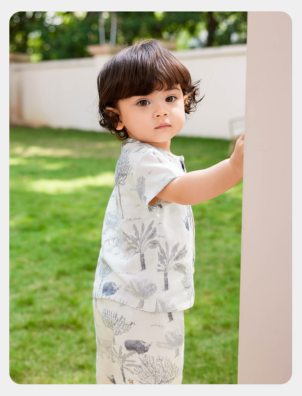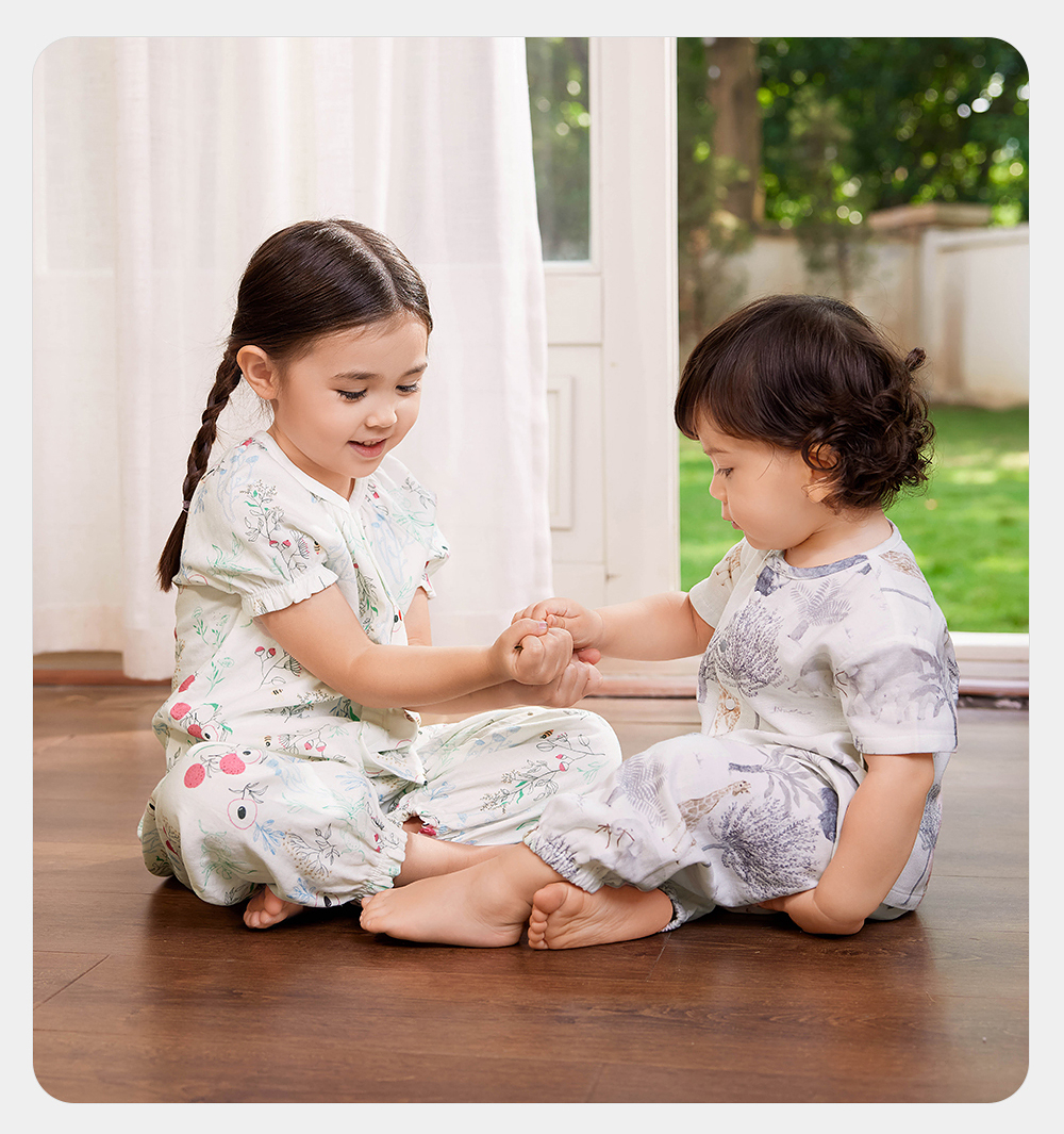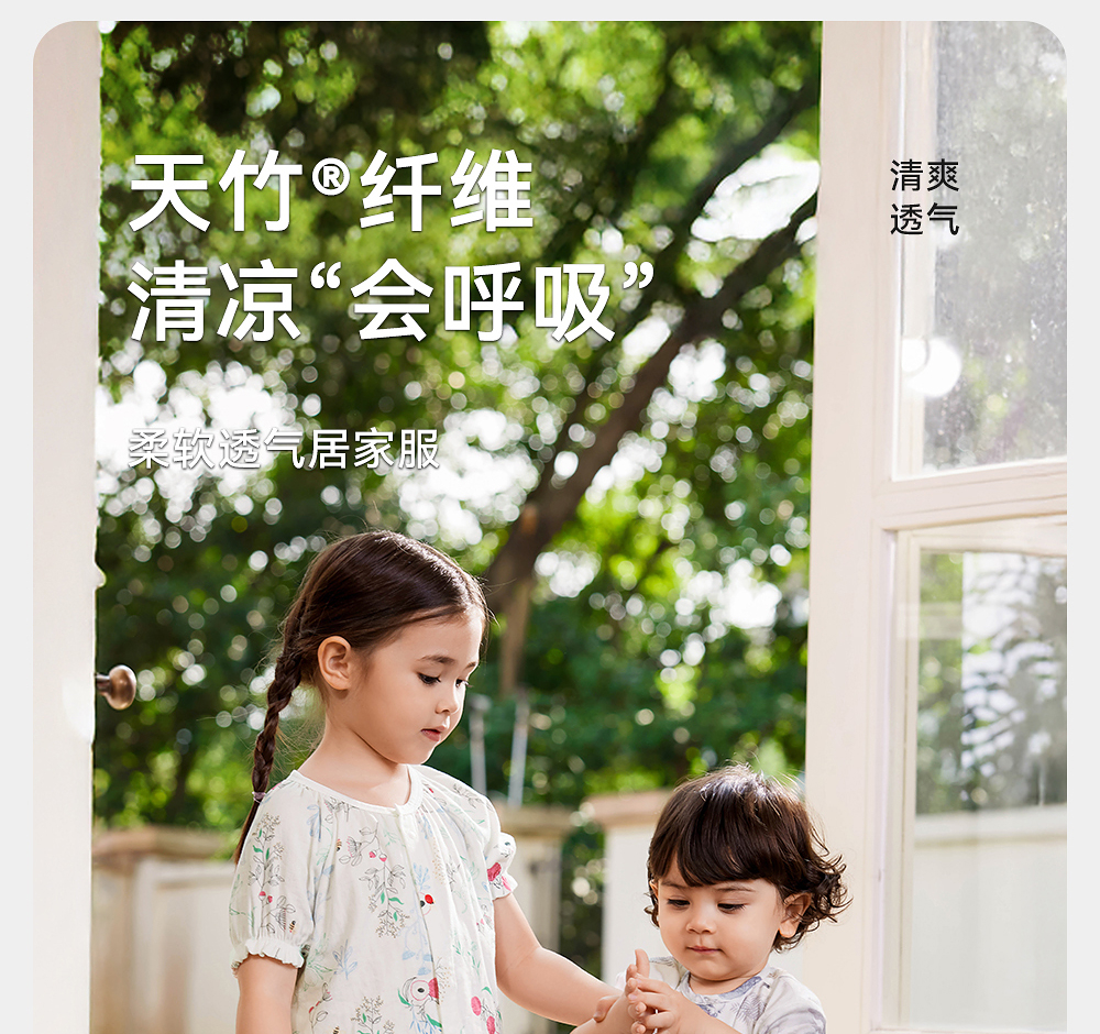 英氏儿童居家服夏季凉感透气男童睡衣速干睡衣女童居家服套装新款