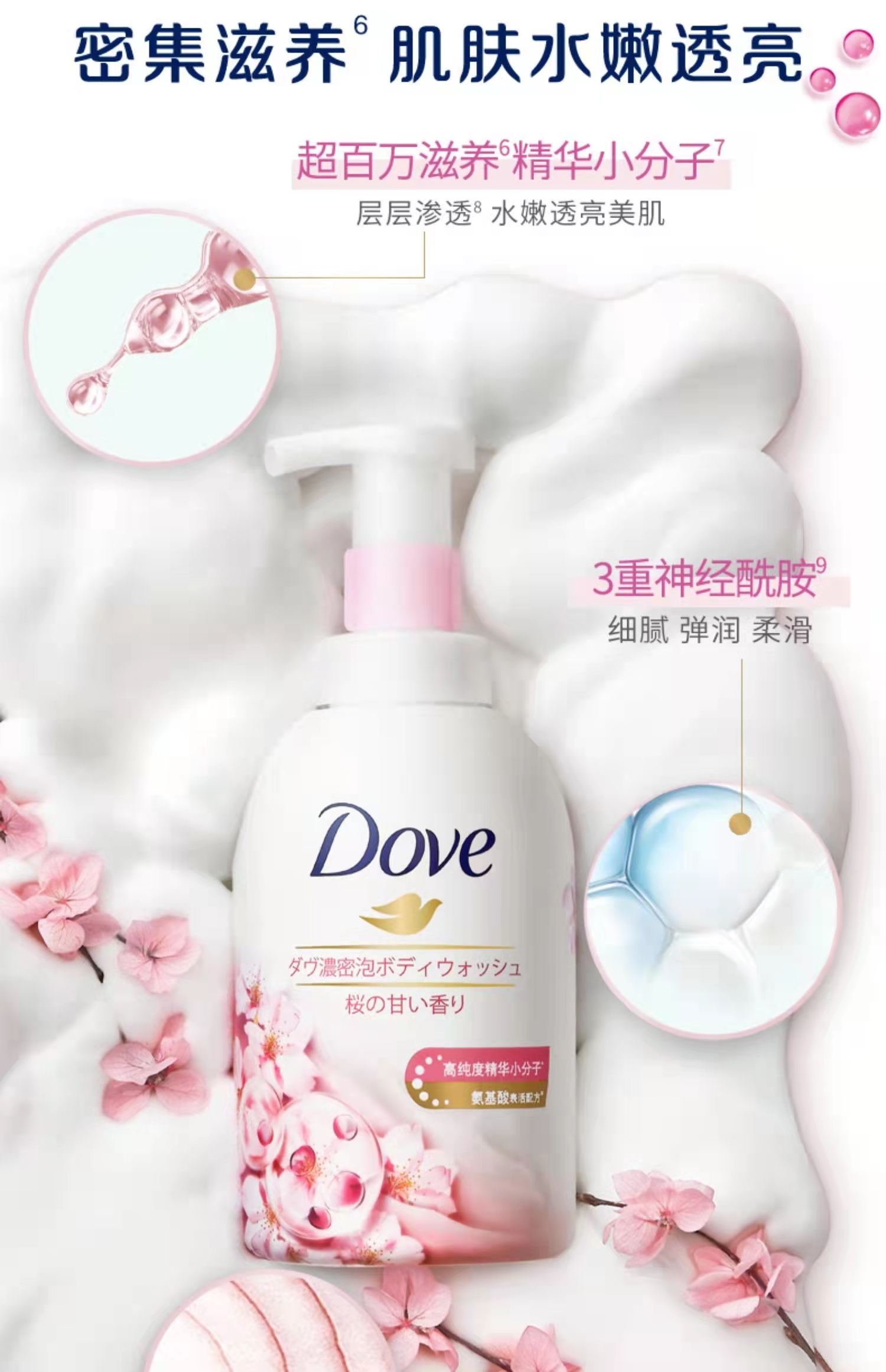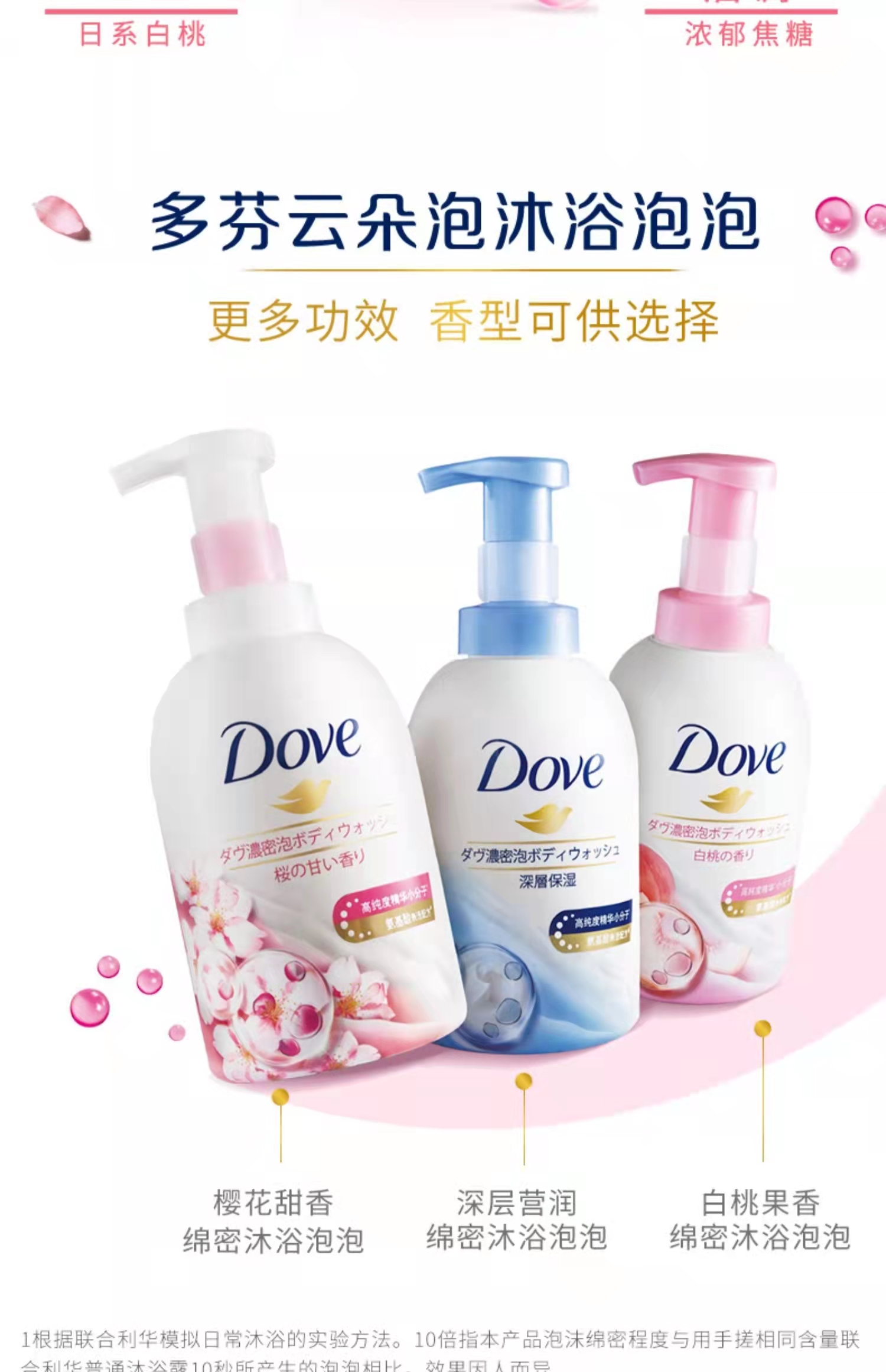 【门店直发 支持同城配送】多芬沐浴露泡沫慕斯香味持续留香温和酰胺沐浴泡泡沐浴露400ml