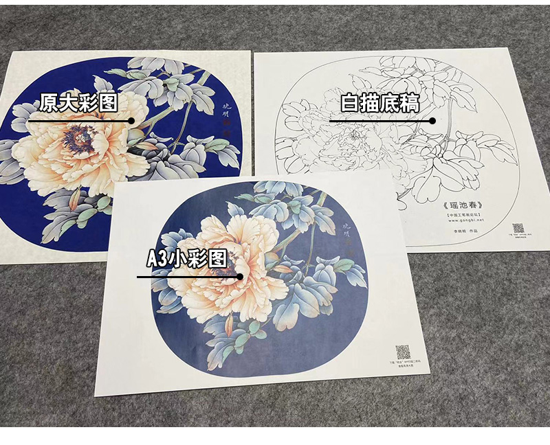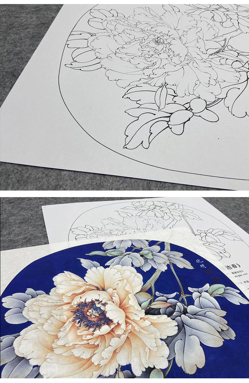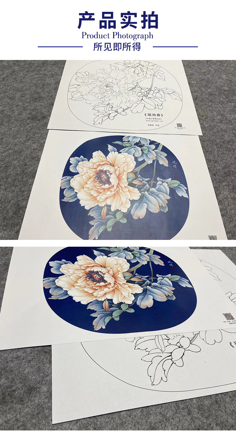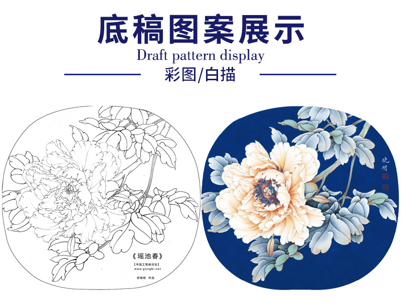 【大彩图】李晓明工笔画白描底稿小品《瑶池春》牡丹临摹勾线花鸟线稿K016