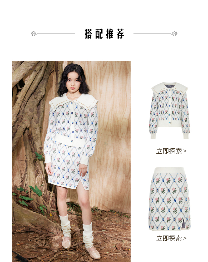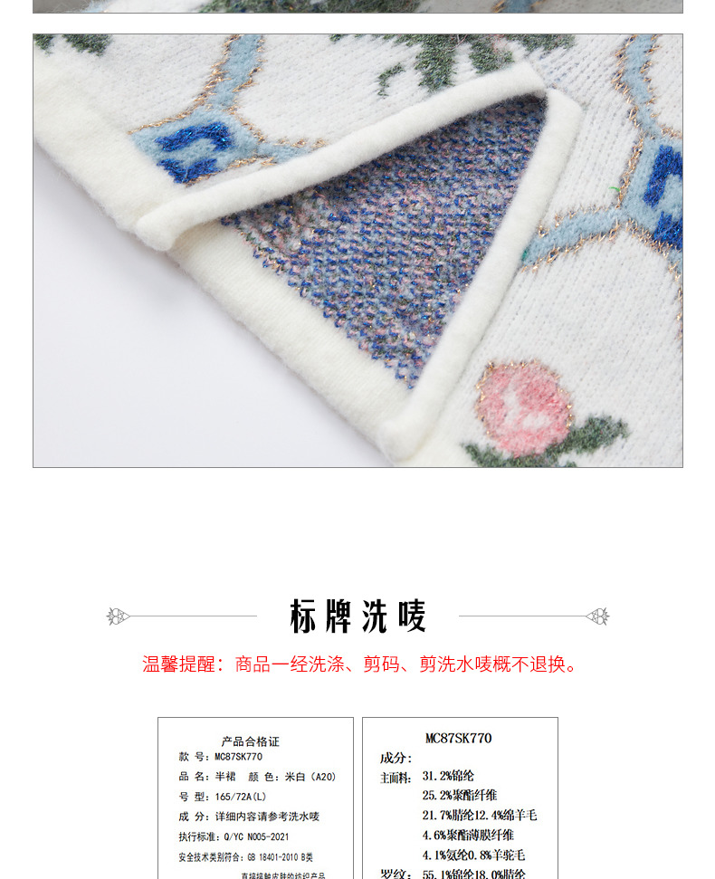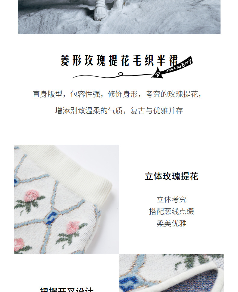 MAXRIENY菱形玫瑰提花毛织半裙冬装半身裙(货号:MC87SK770)