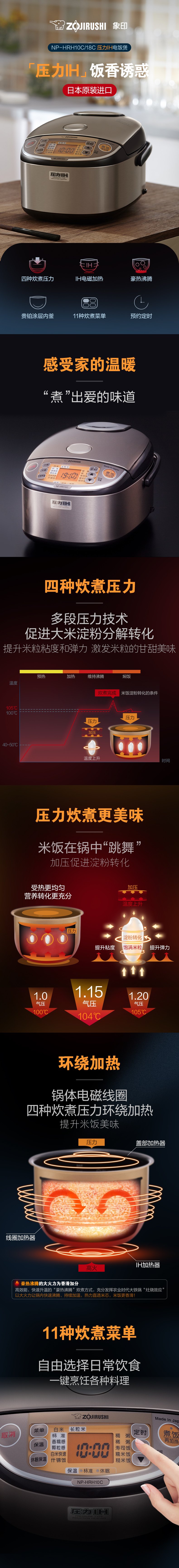 象印/ZOJIRUSHI 日本原装进口压力IH家用电饭煲HRH10C 3L