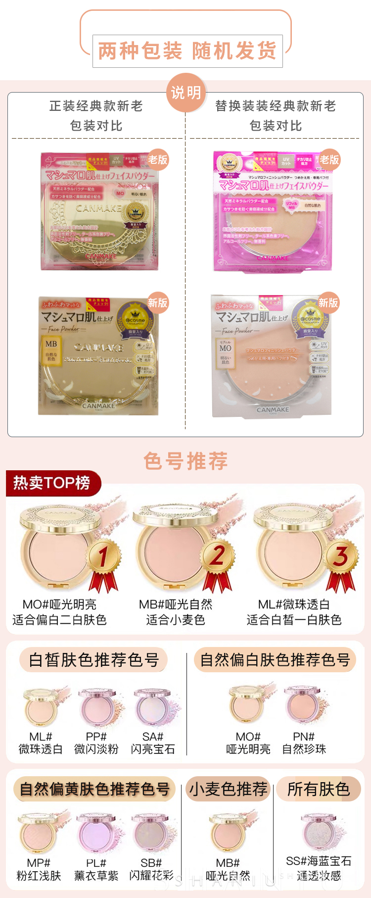 新款 Canmake井田棉花糖 弹力定妆 控油蜜粉饼 遮瑕轻薄散粉 遮豆印带粉扑
