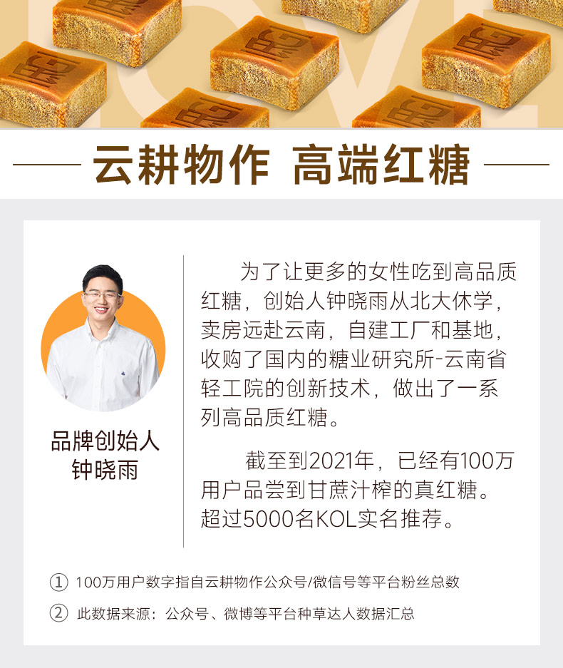 - 云耕物作是一个高品质无添加红糖的品牌,创新现代工艺和古法工艺相融合,给你无添加的爱。