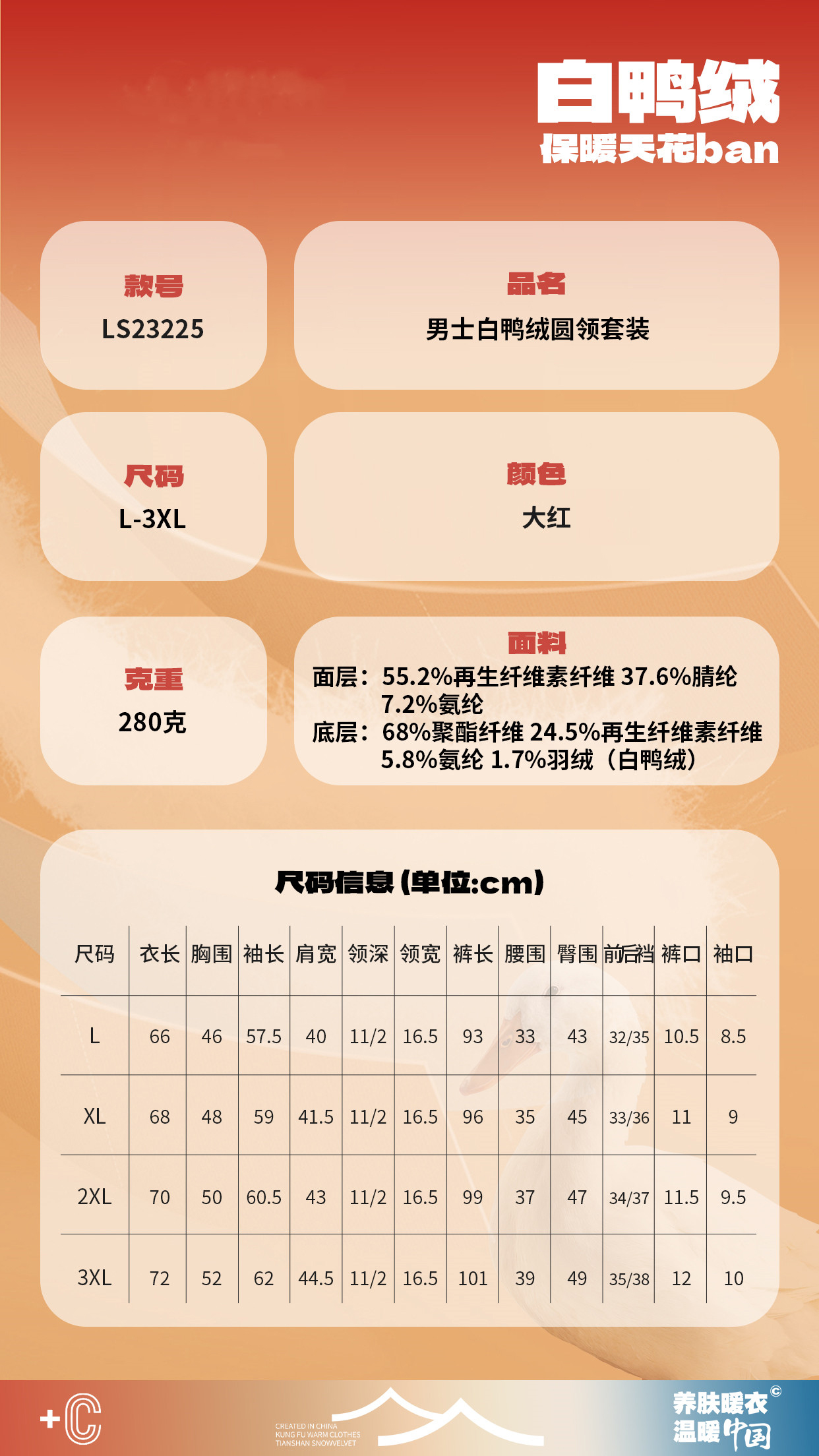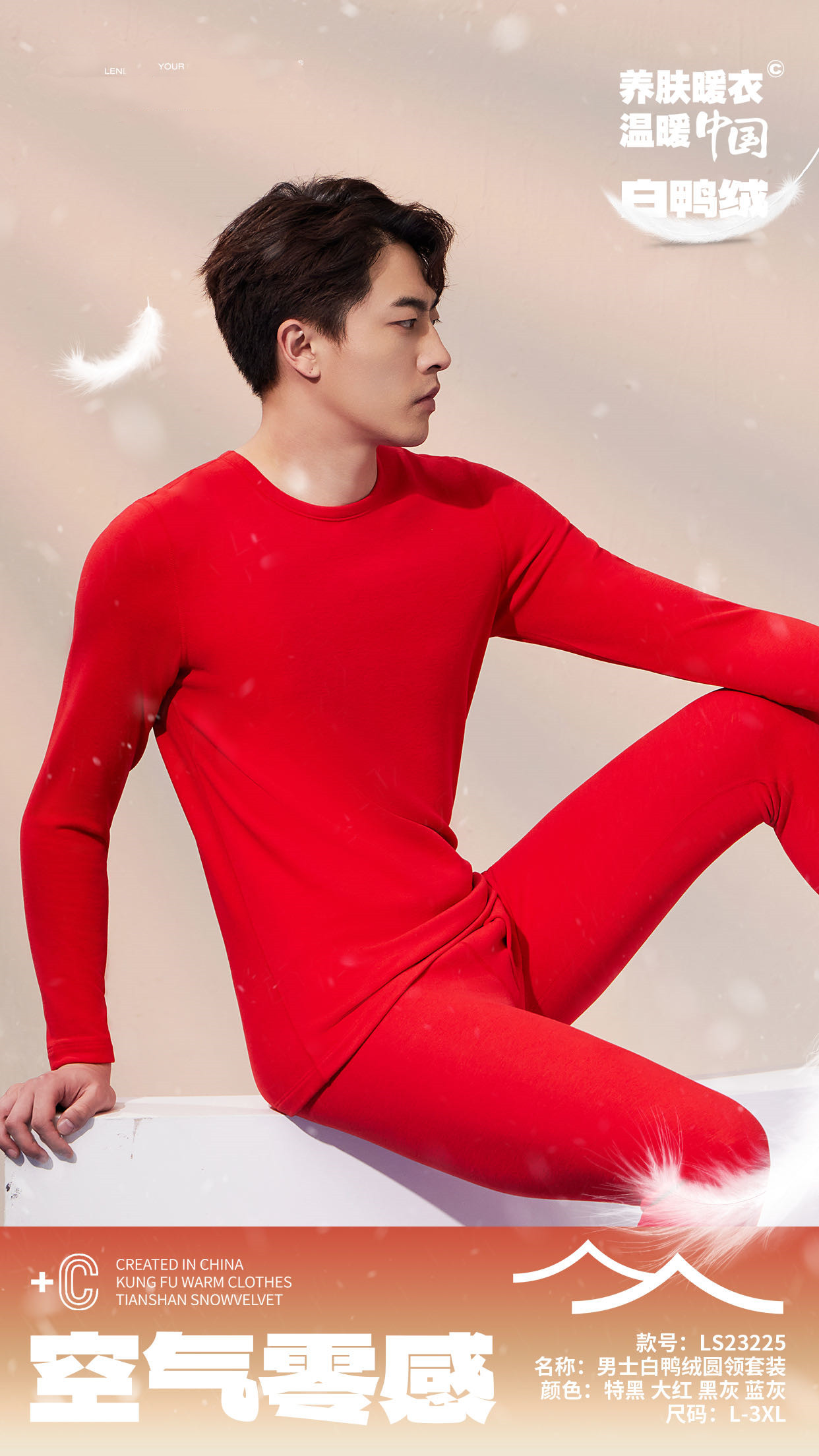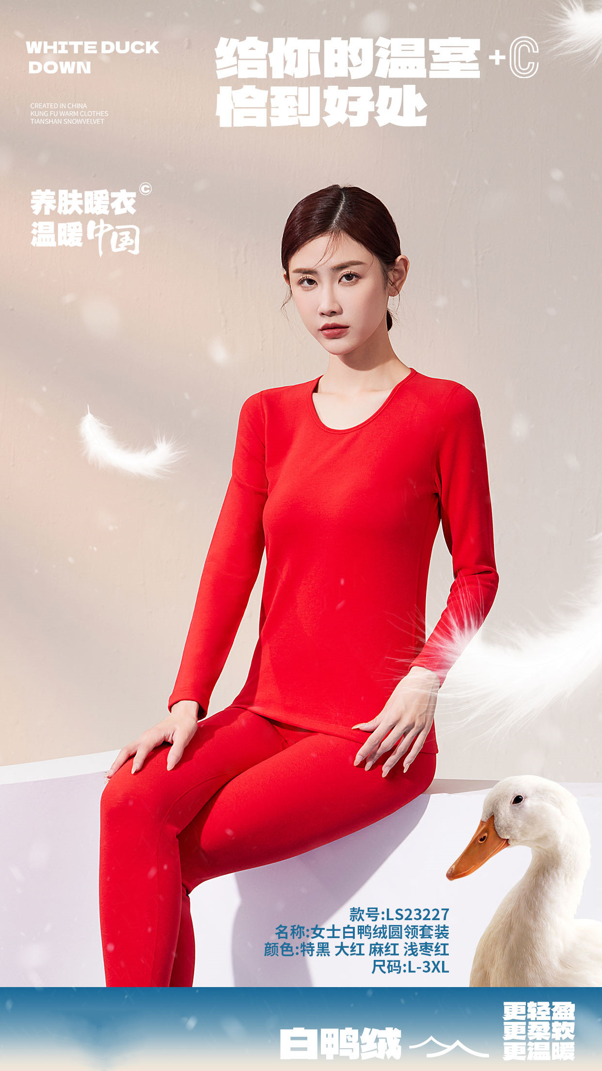 艺达世家女士白鸭绒圆领套装(大红)/1套(L码,适合45-52.5kg)补单专用
