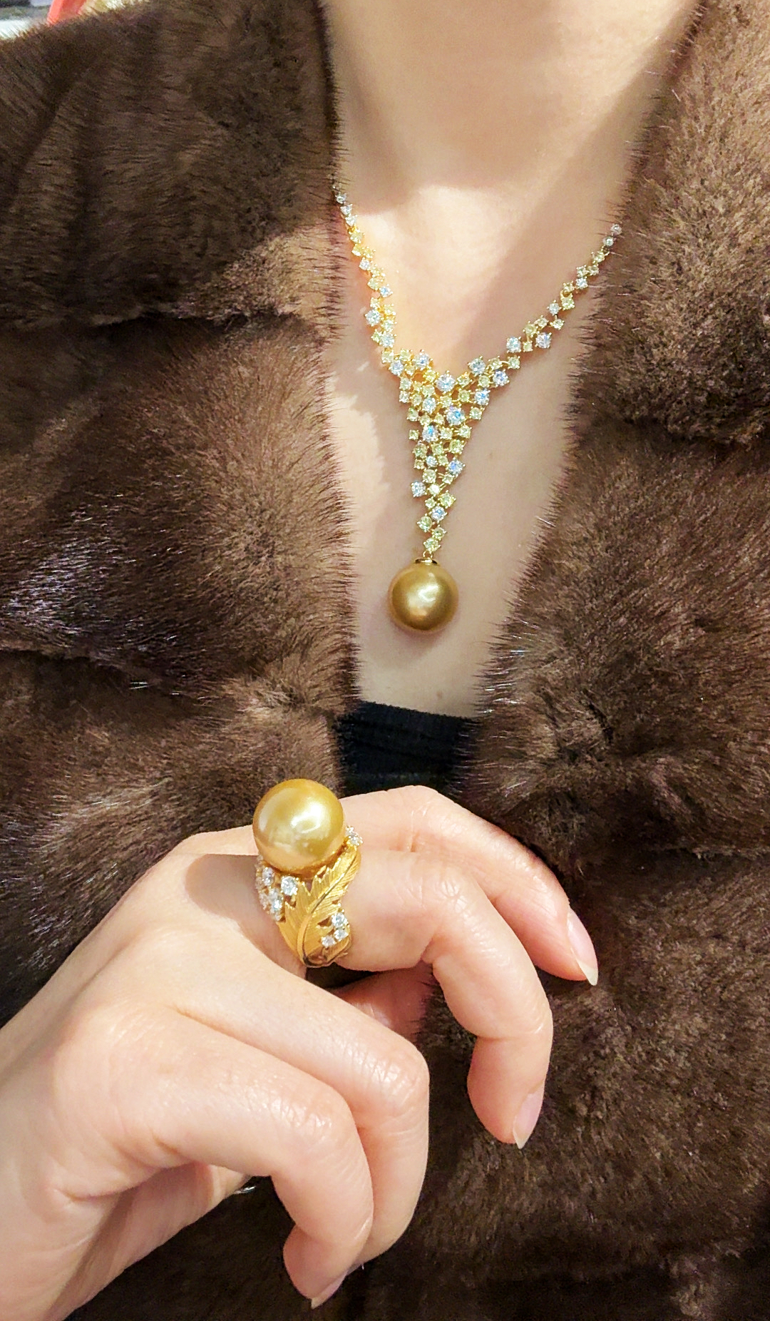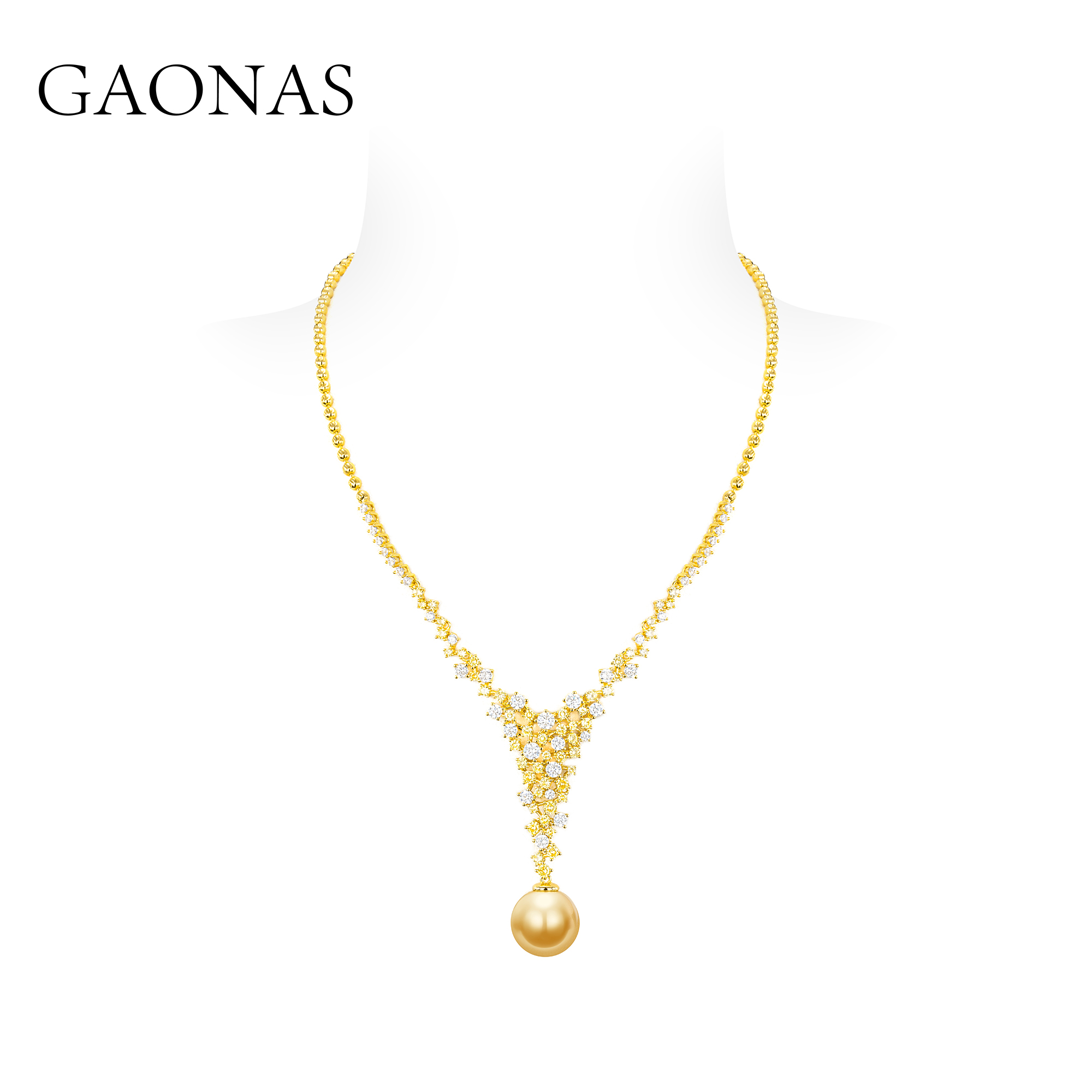 GAONAS 璀璨华丽金色珠贵气Y字项链11861XGO