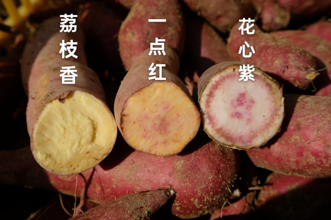 一点红:表皮呈深红色,薯肉中心是紫红色,周边淡黄色,口感是糯甜细腻;