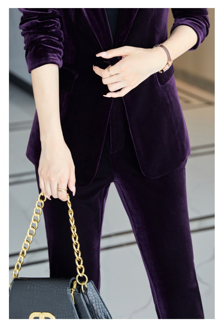 气质修身,时装版大码高端金丝绒西装外套套装XZ-9637