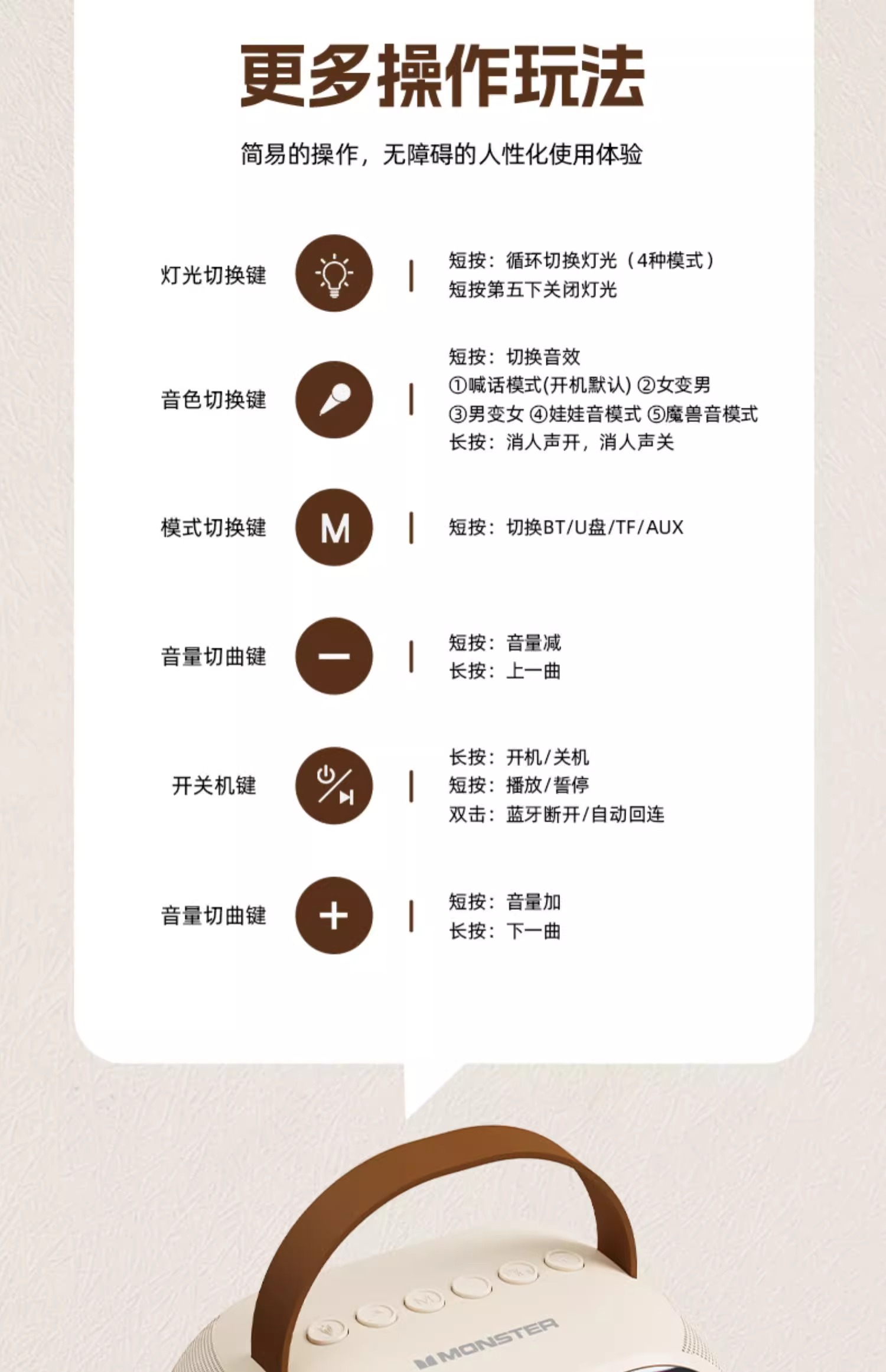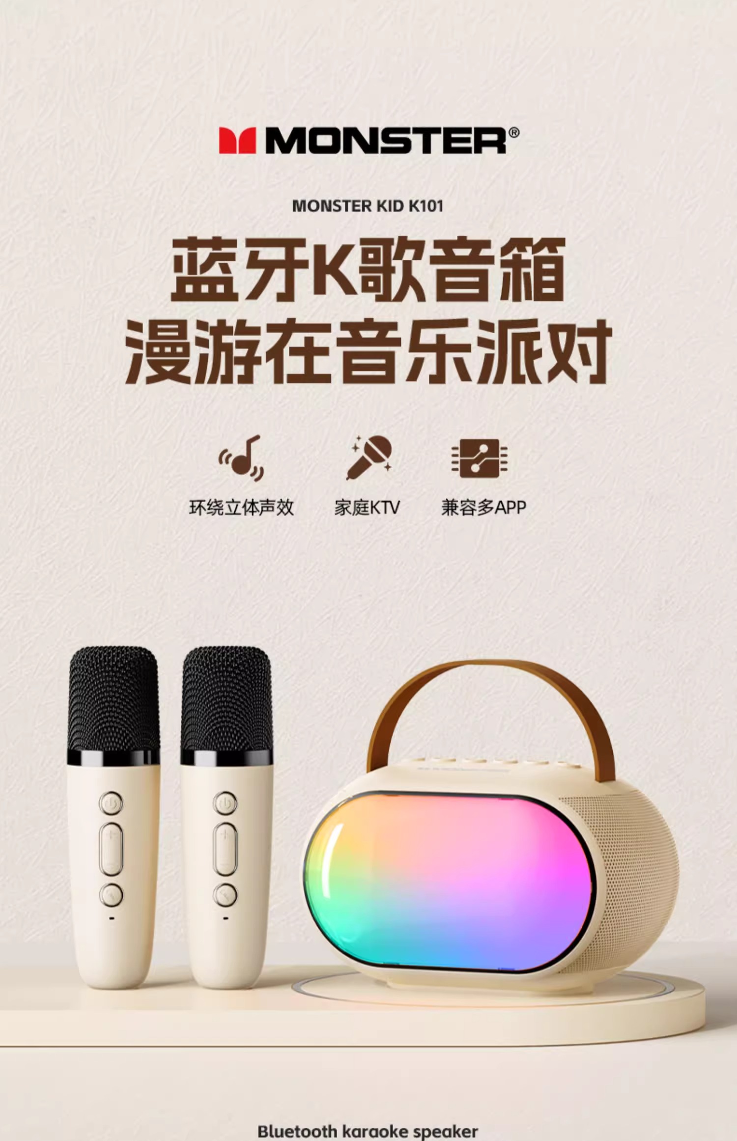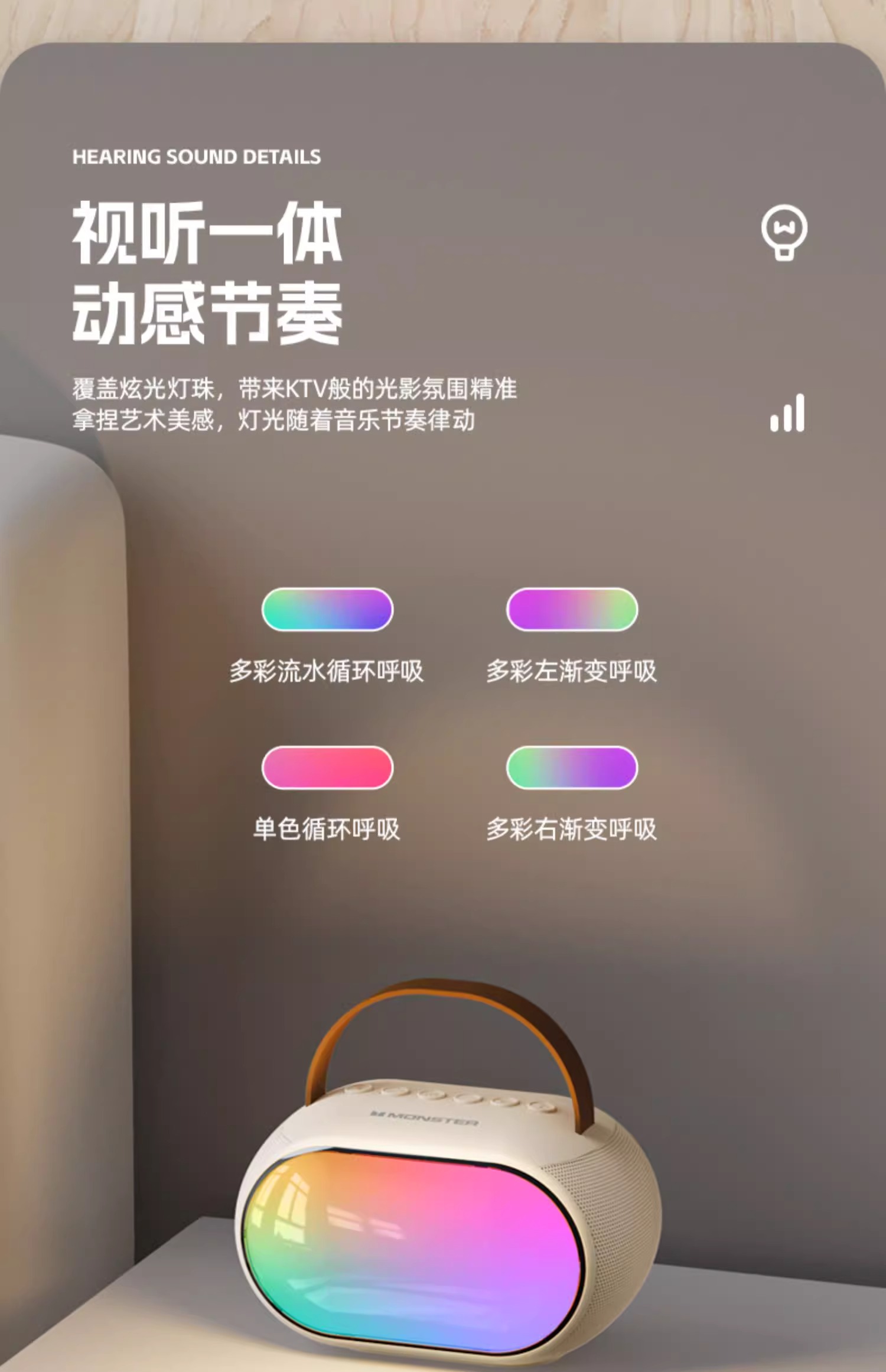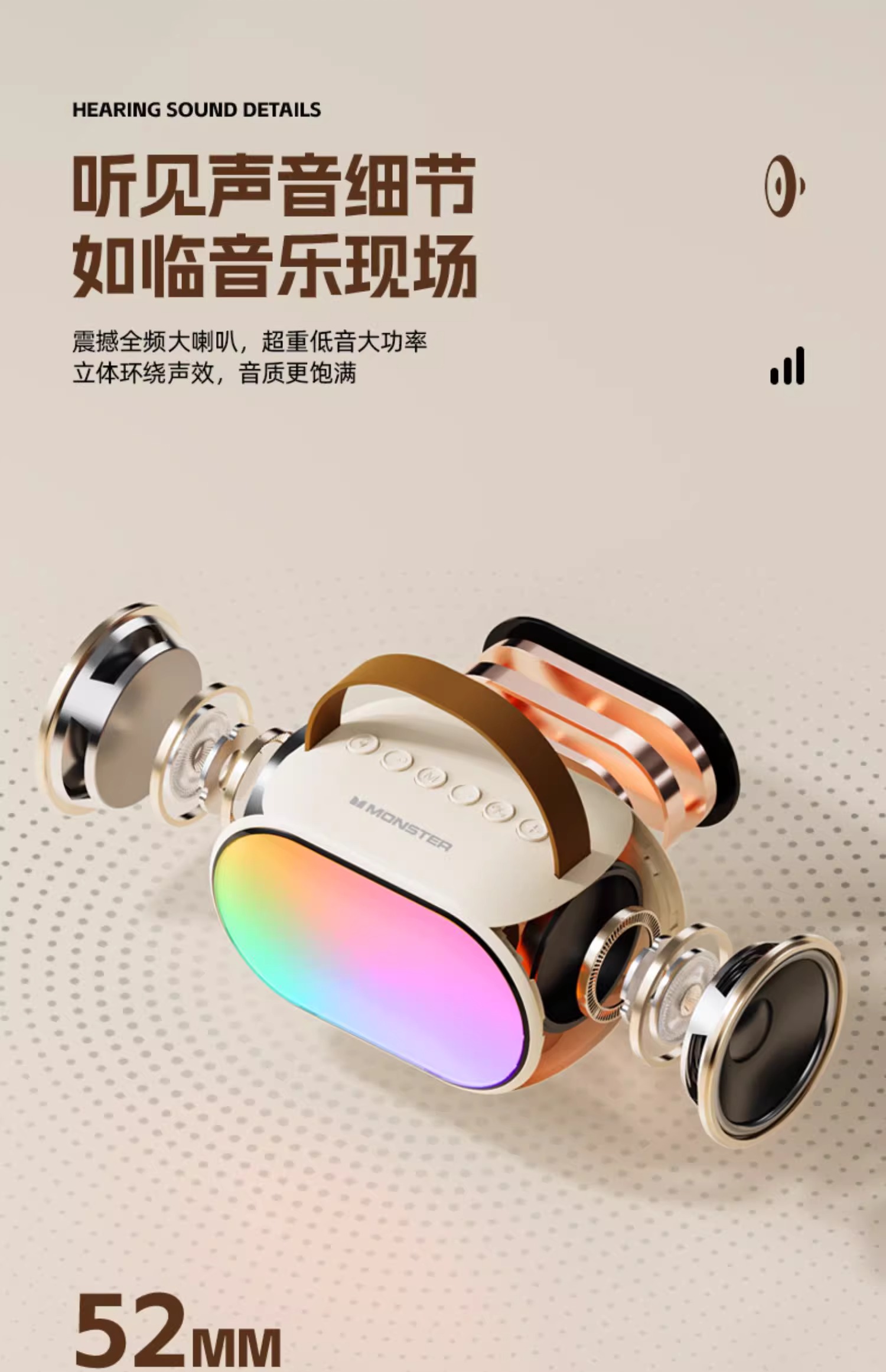 【L】美国monster魔声桌面光污染小音箱 支持AUX/蓝牙 部分播放器自动识别母带专享