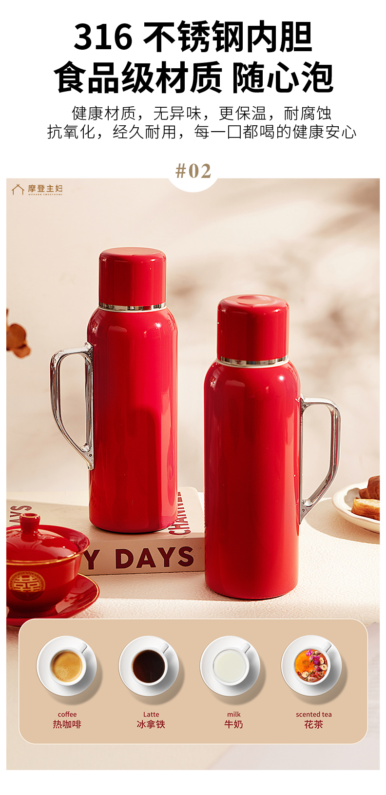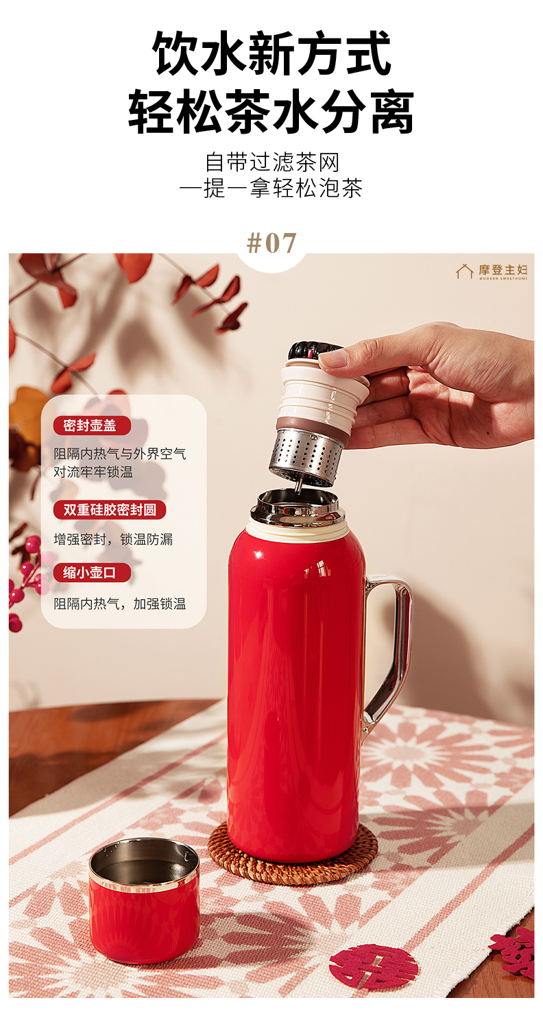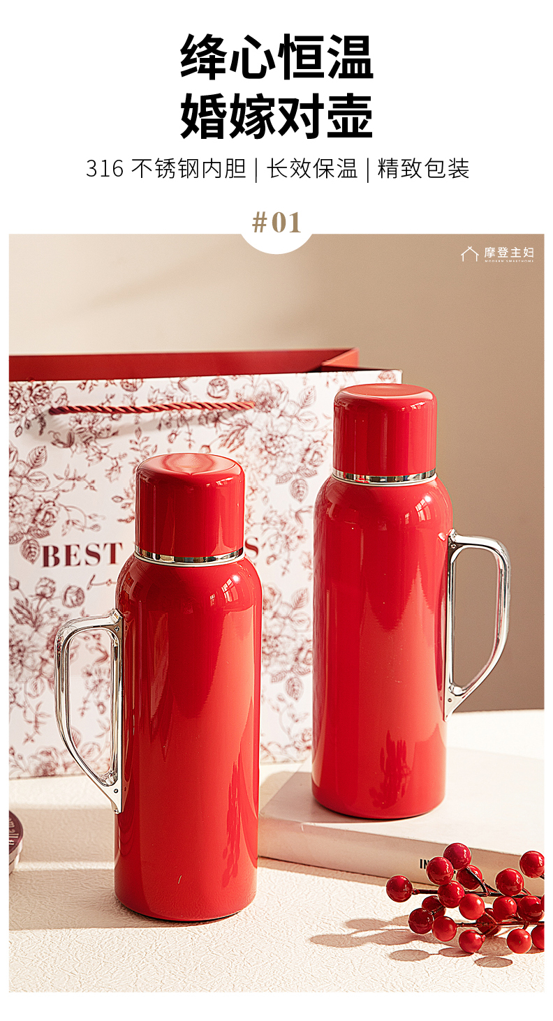 摩登主妇保温壶结婚一对红色陪嫁用品热水壶女新婚礼物家用焖茶壶
