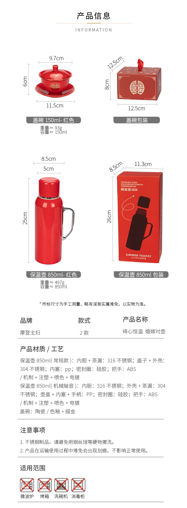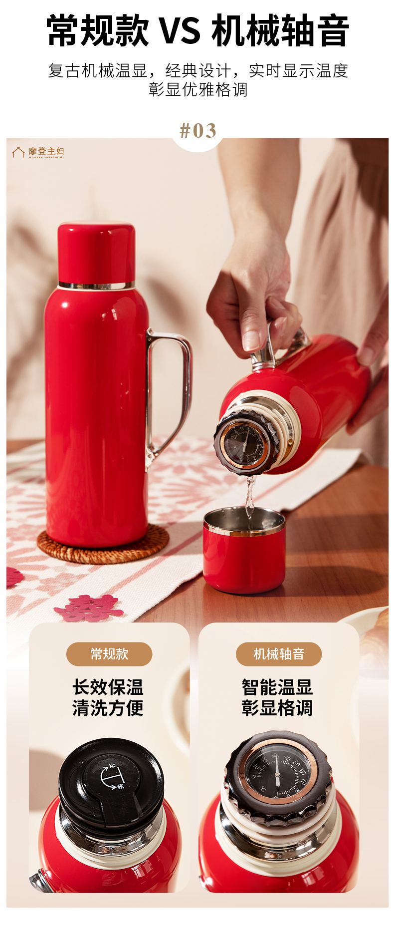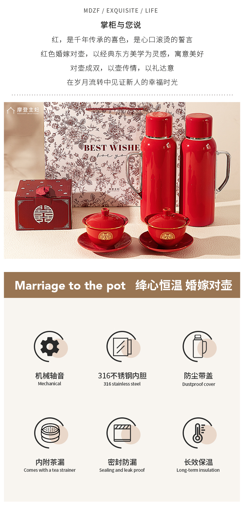 摩登主妇保温壶结婚一对红色陪嫁用品热水壶女新婚礼物家用焖茶壶