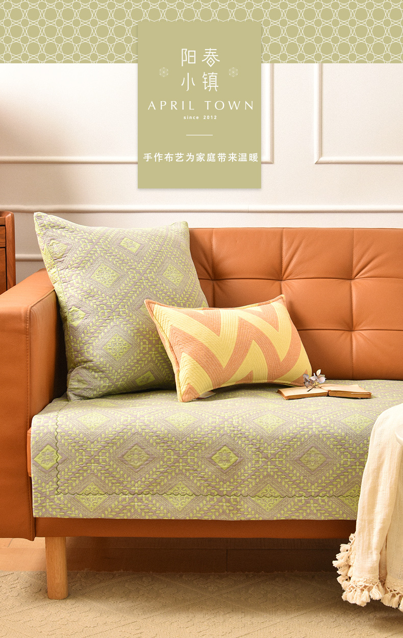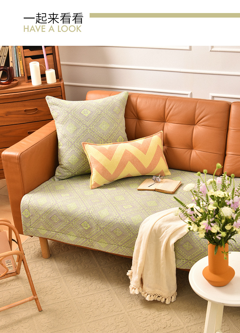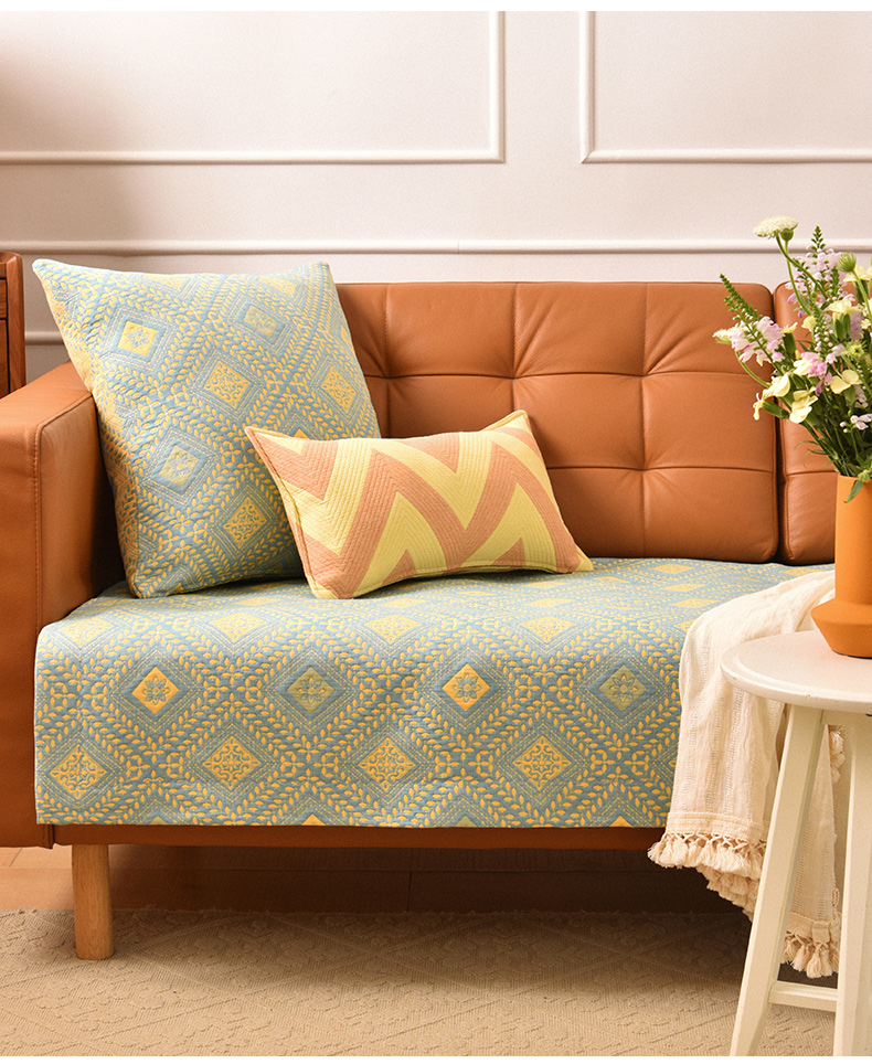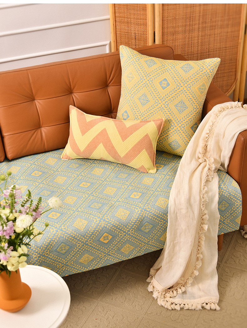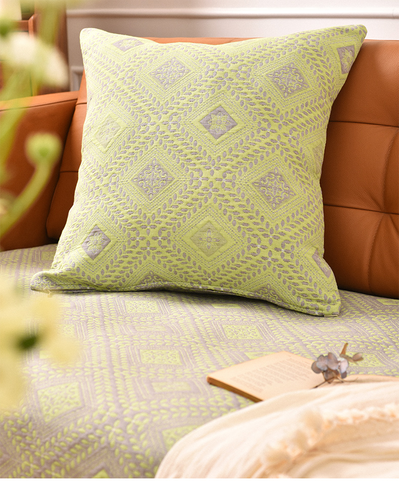经典菱形花纹沙发巾和靠包棉四季通用高端轻奢防滑盖布定制