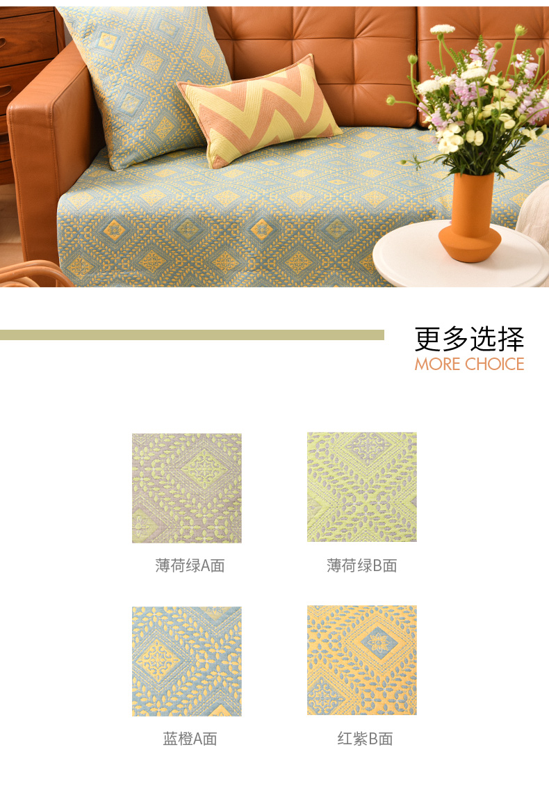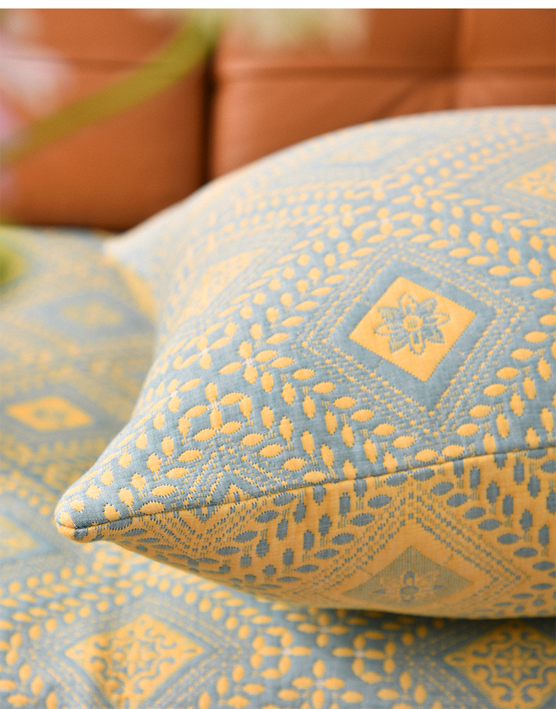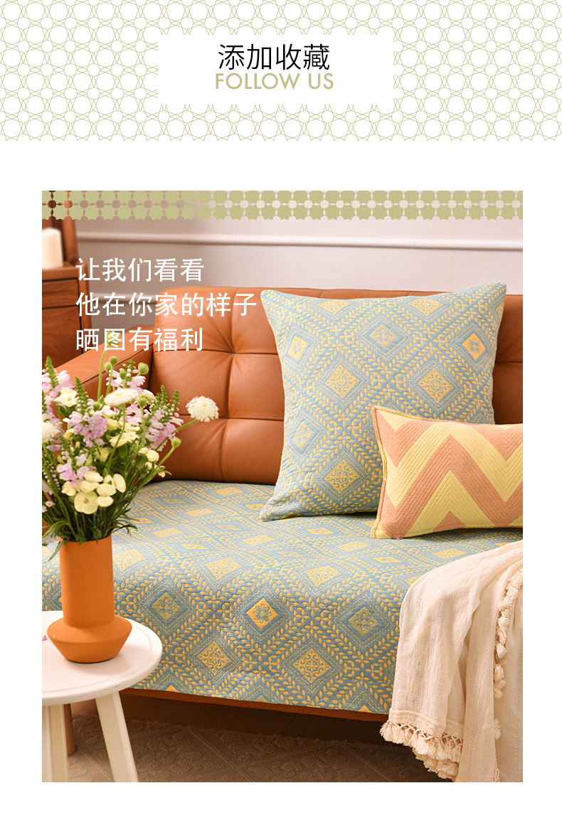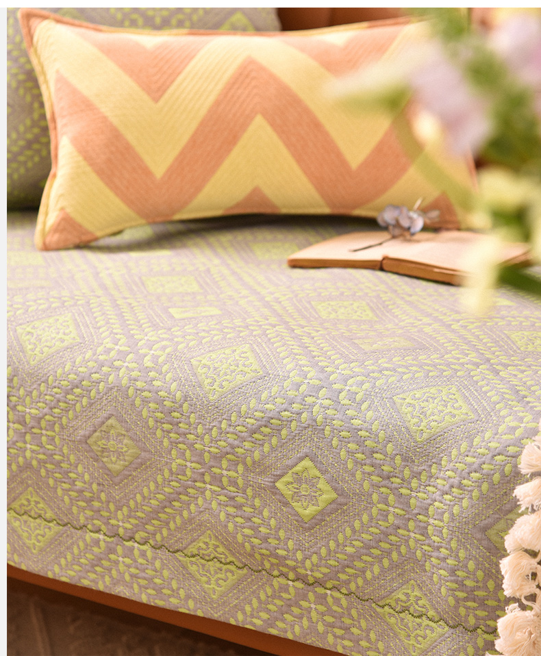 经典菱形花纹沙发巾和靠包棉四季通用高端轻奢防滑盖布定制
