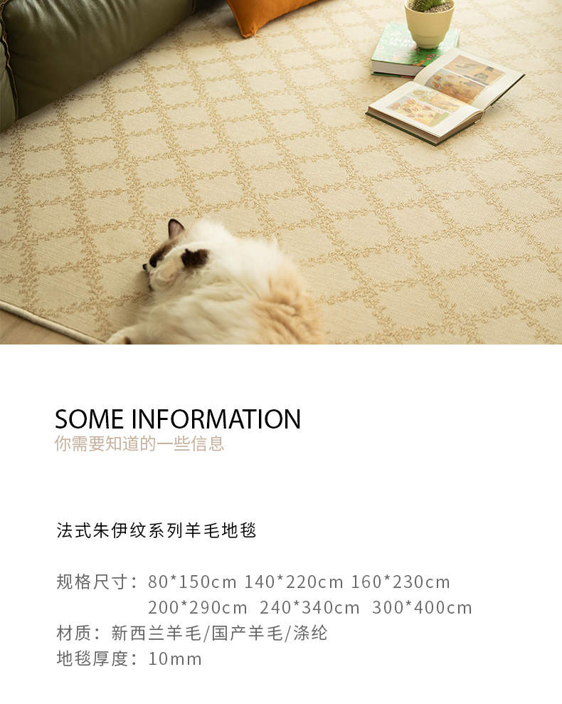 法式朱伊纹系列羊毛地毯客厅卧室复古地垫