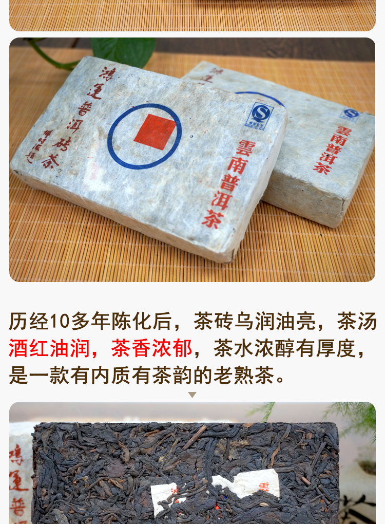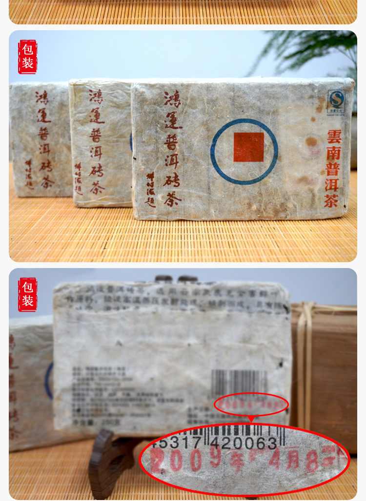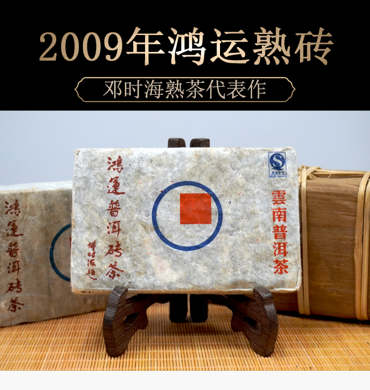 2009年邓时海鸿运熟茶砖 邓老师经典鸿运系列老熟茶砖 干仓真品