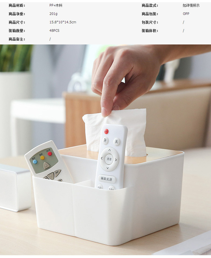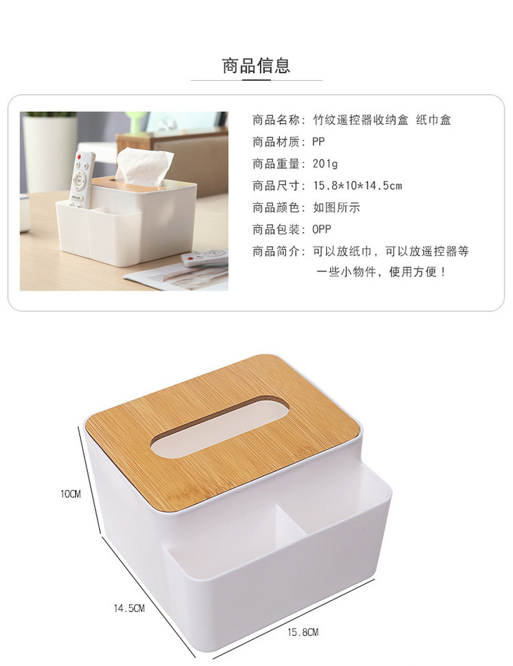 竹纹遥控器收纳盒纸巾盒简约家用客厅茶几杂物储物盒创意整理盒 ZMXNAg1