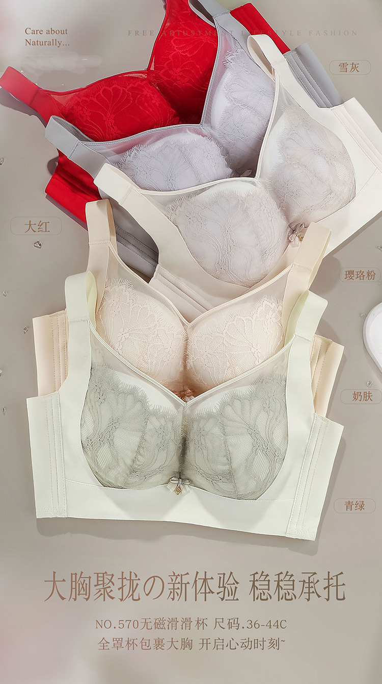 ZYQ-570 大胸调整内衣聚拢上托性感睫毛蕾丝收副乳舒适莫代尔透气薄款文胸(单件)