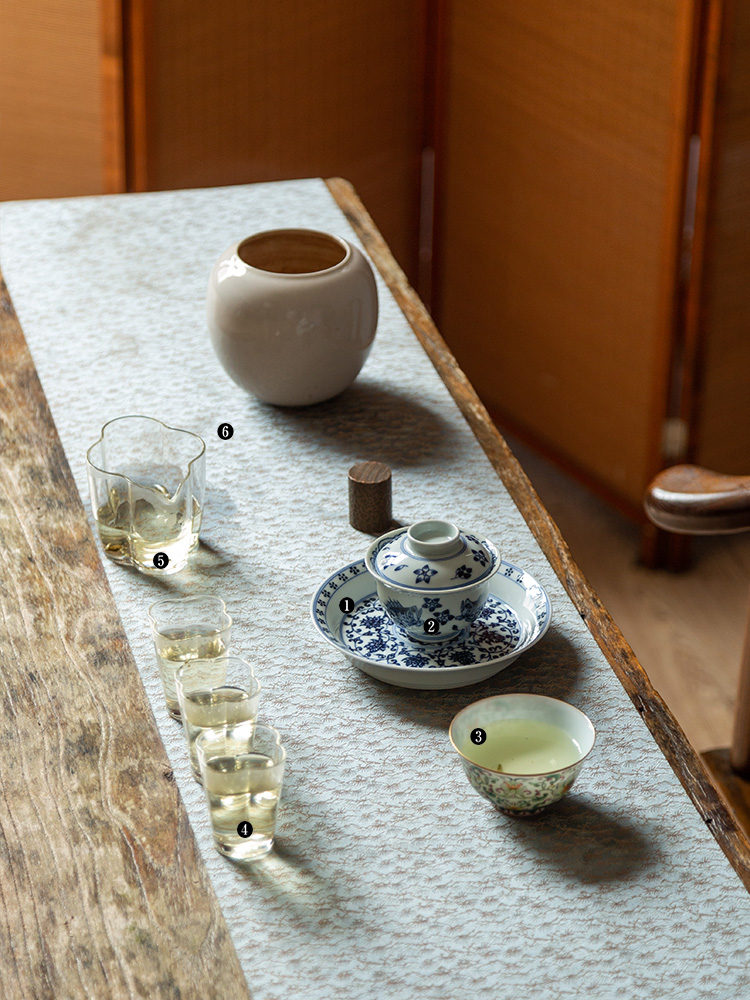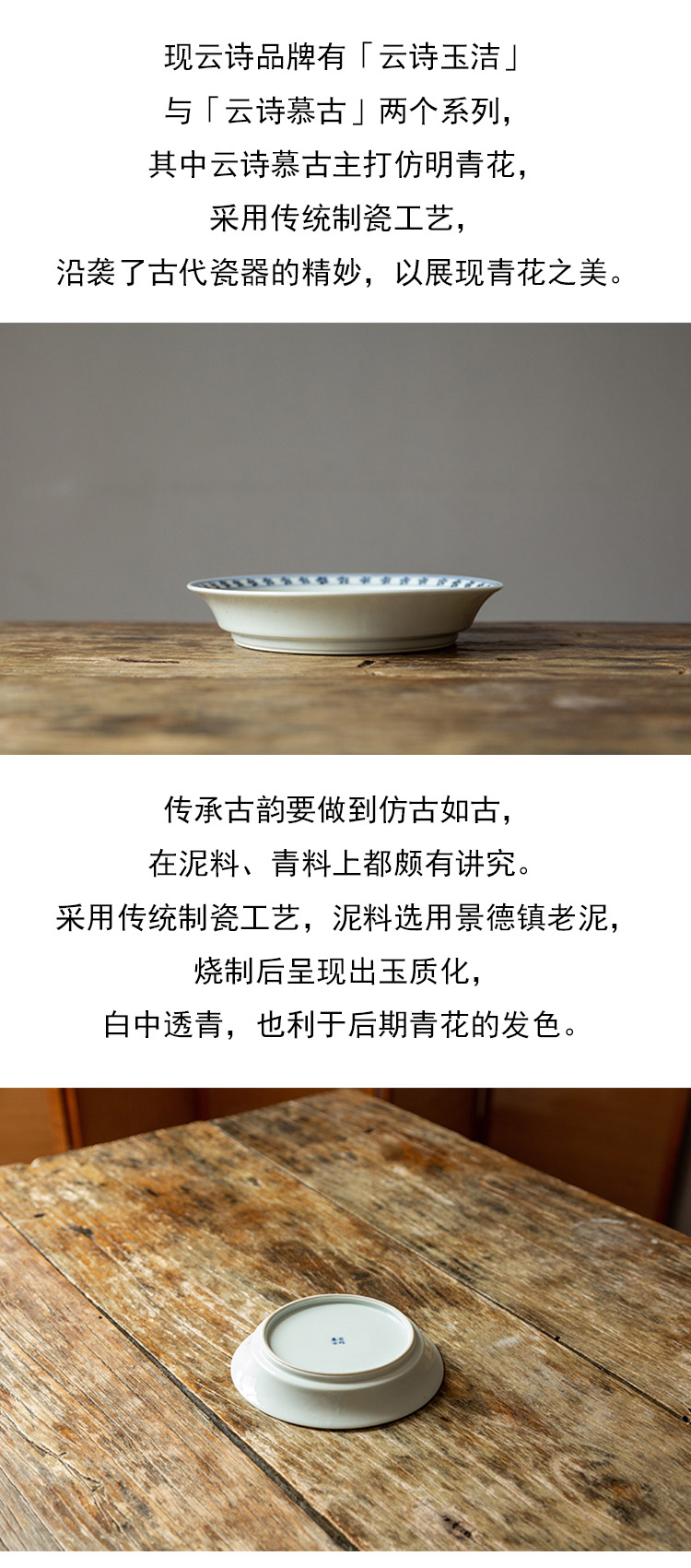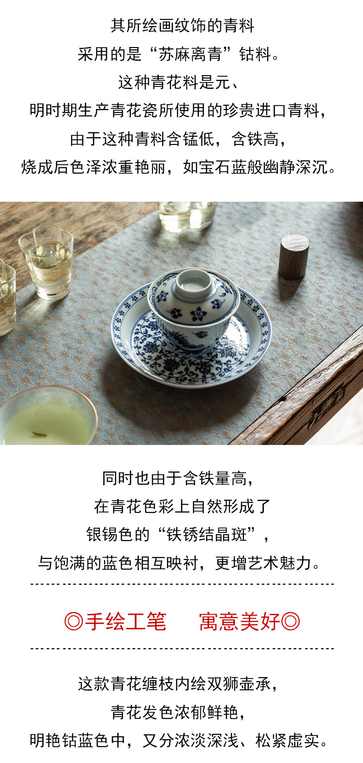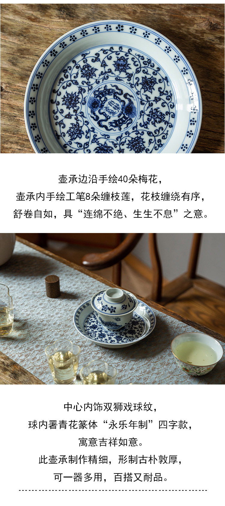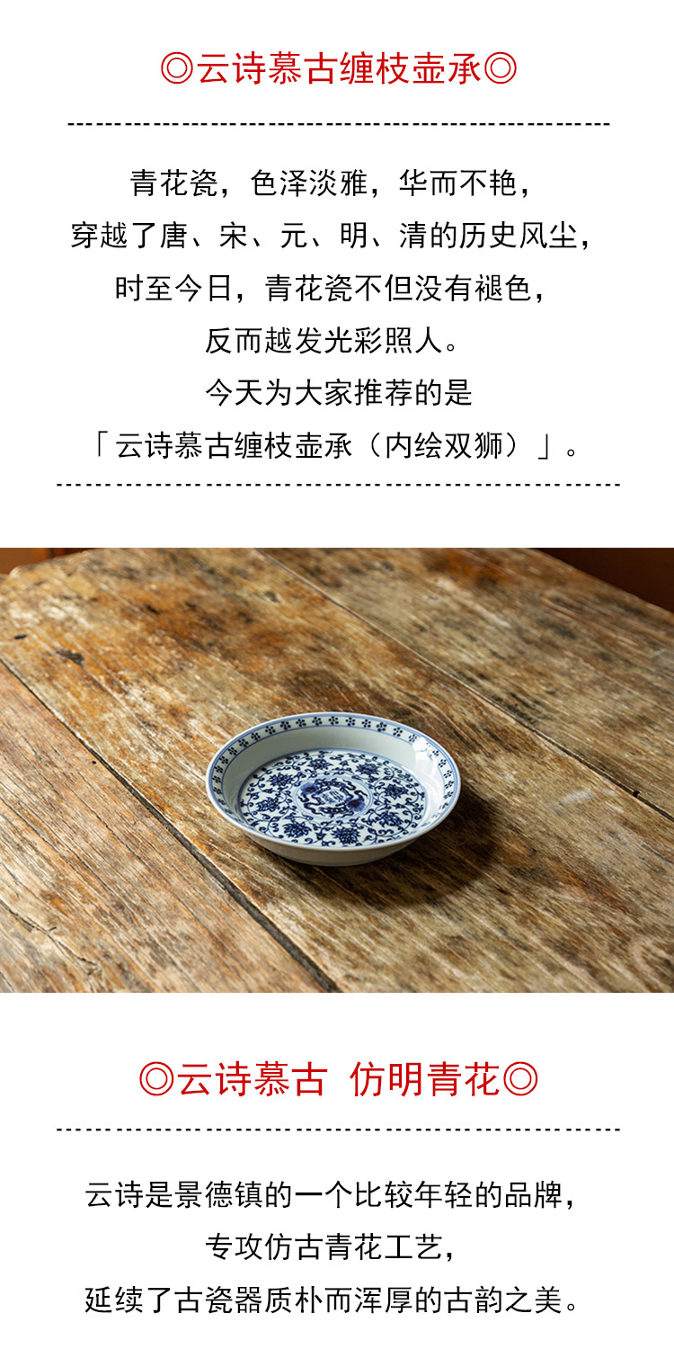 茶香记 云诗慕古缠枝壶承(内绘双狮)仿明青花干泡盘陶瓷茶盘