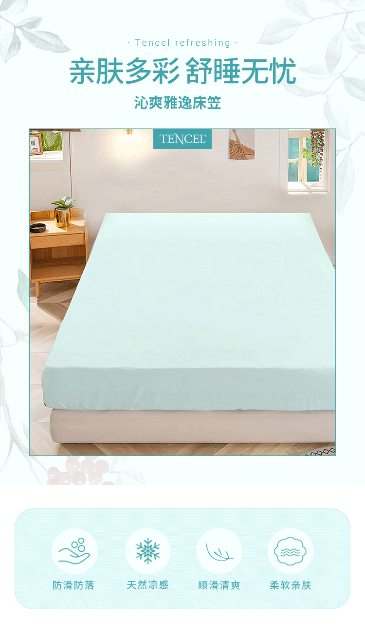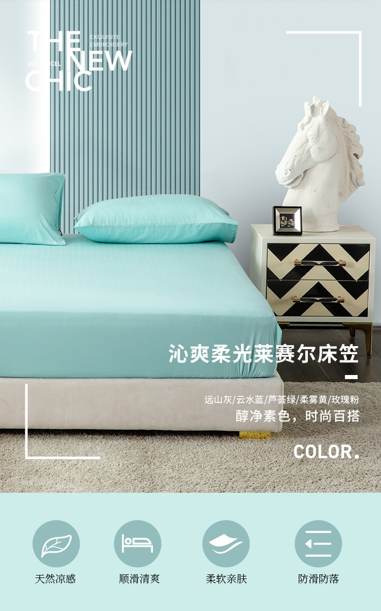 多喜爱 沁爽柔光莱赛尔床笠(芦荟绿/柔雾黄/玫瑰粉/时空漫行/蓝曲悠扬/悦然雅馨/简约之境/极简空间)cs