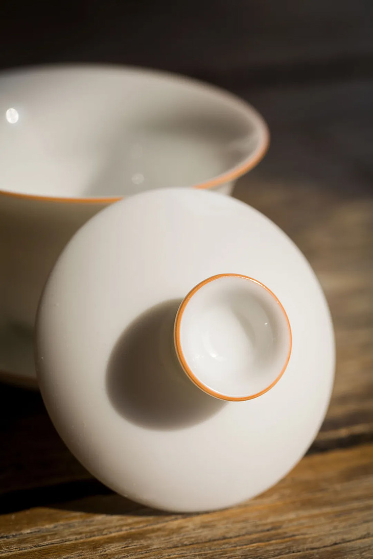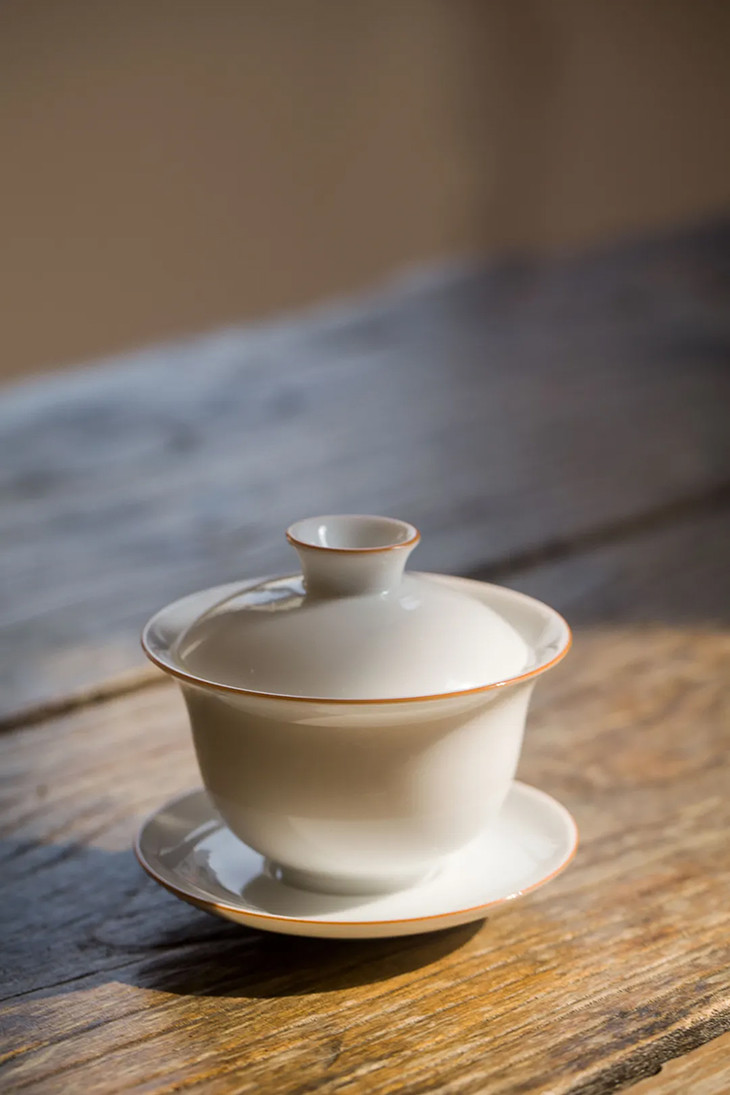 这款盖碗线条柔美、器型圆润、胎薄莹润、容量适中。