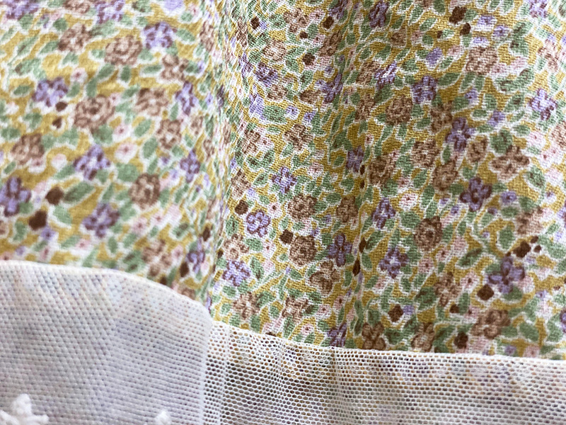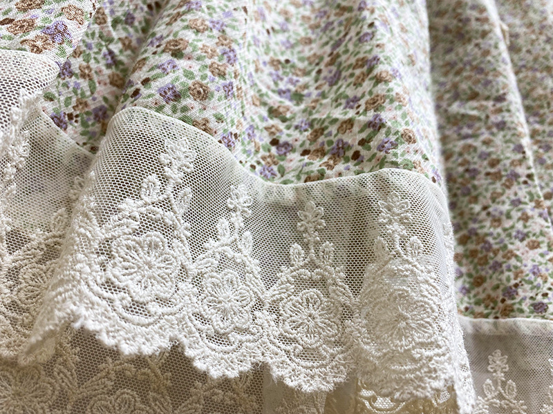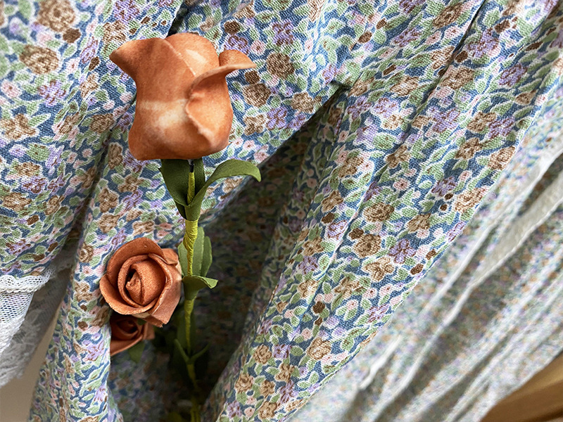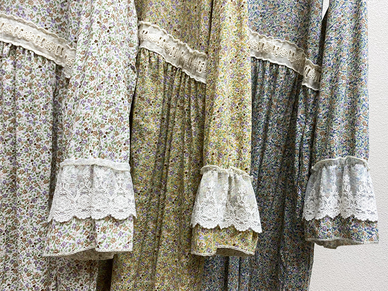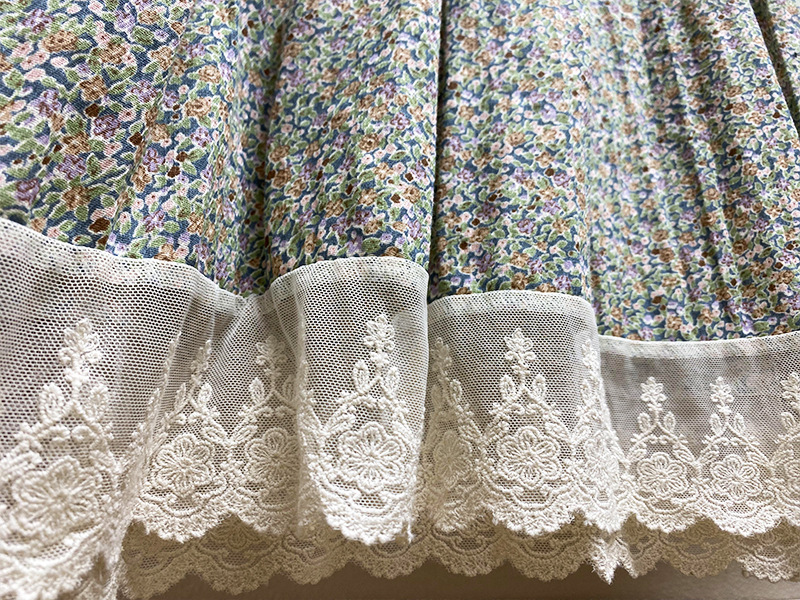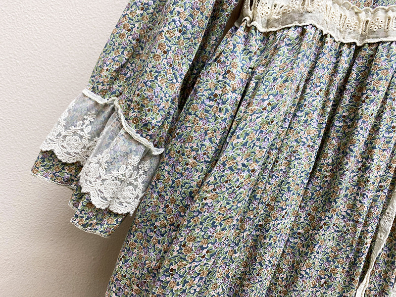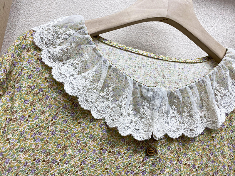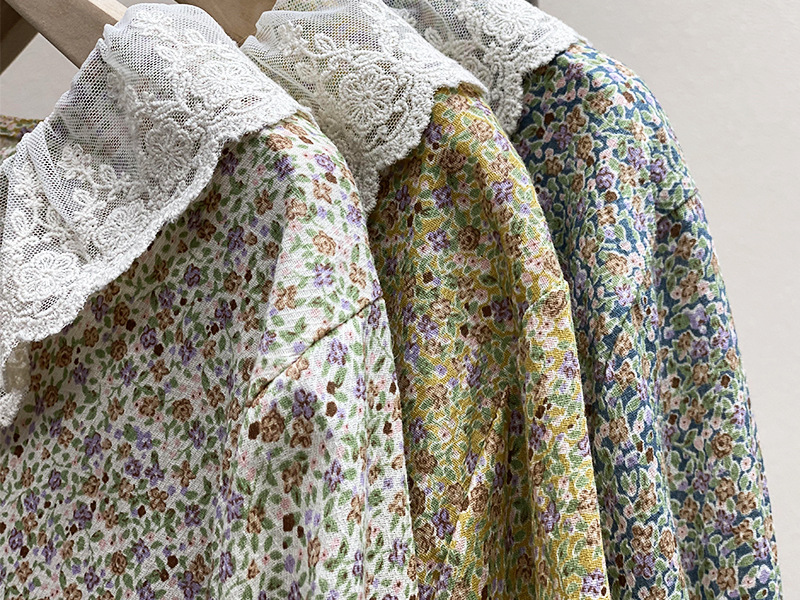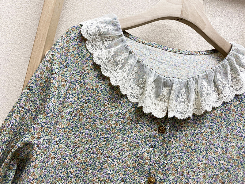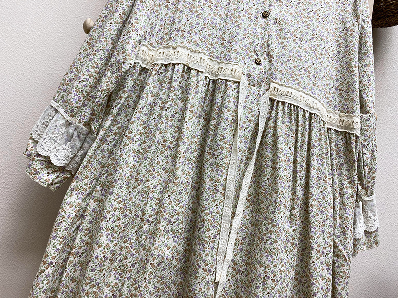 WQ-8802新款春装日系清新蕾丝娃娃领棉麻碎花长裙宽松长袖抽绳连衣裙