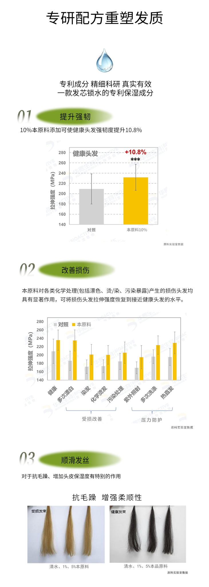 这样一来,头发不仅听话好打理,摸上去的手感也自然是滑溜溜的。另外,我们不惜成本添加了一款针对发芯锁水的专利保湿成分,对头发进行从内而外的呵护。