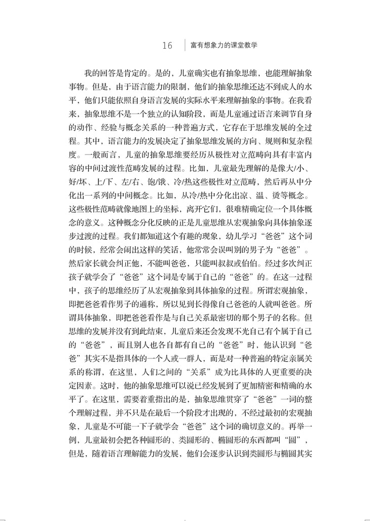 这是一本激发人们想象力的著作。其旨趣不单是构建一种新的教学模式或教学样式,而是以想象力的视角整体性地批判教育、建构教育。该著对中国当下基础教育改革实践中突出存在的“想象力危机”现象作了写实性批判,对想象力教育的意义与价值作了合宜而细腻的哲学史考察,对想象力教育之于知识观、学习观、教学观、评价观的变革意义作了系统的关联性考究。这不仅为“想象力教育论”扎就了坚实的根基,而且也是论者自身教育观的某种真切表达与真情流溢。