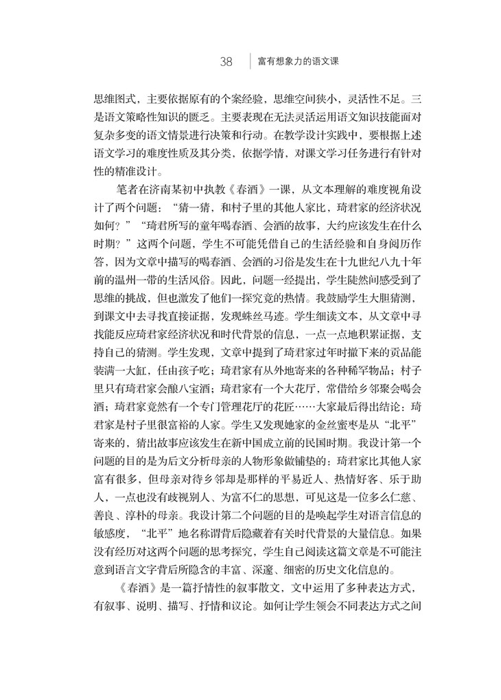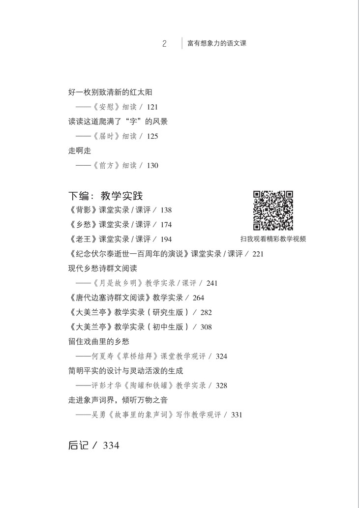 富有想象力的语文课,给我们打开了一个理解语文教学的新视角,给我们建构了一个改革语文课堂的新范式,给我们提供了一个创新教学实践的新理论。好的课堂,总能让人充满激情、充满想象、充满期待!好的专著,也是如此!