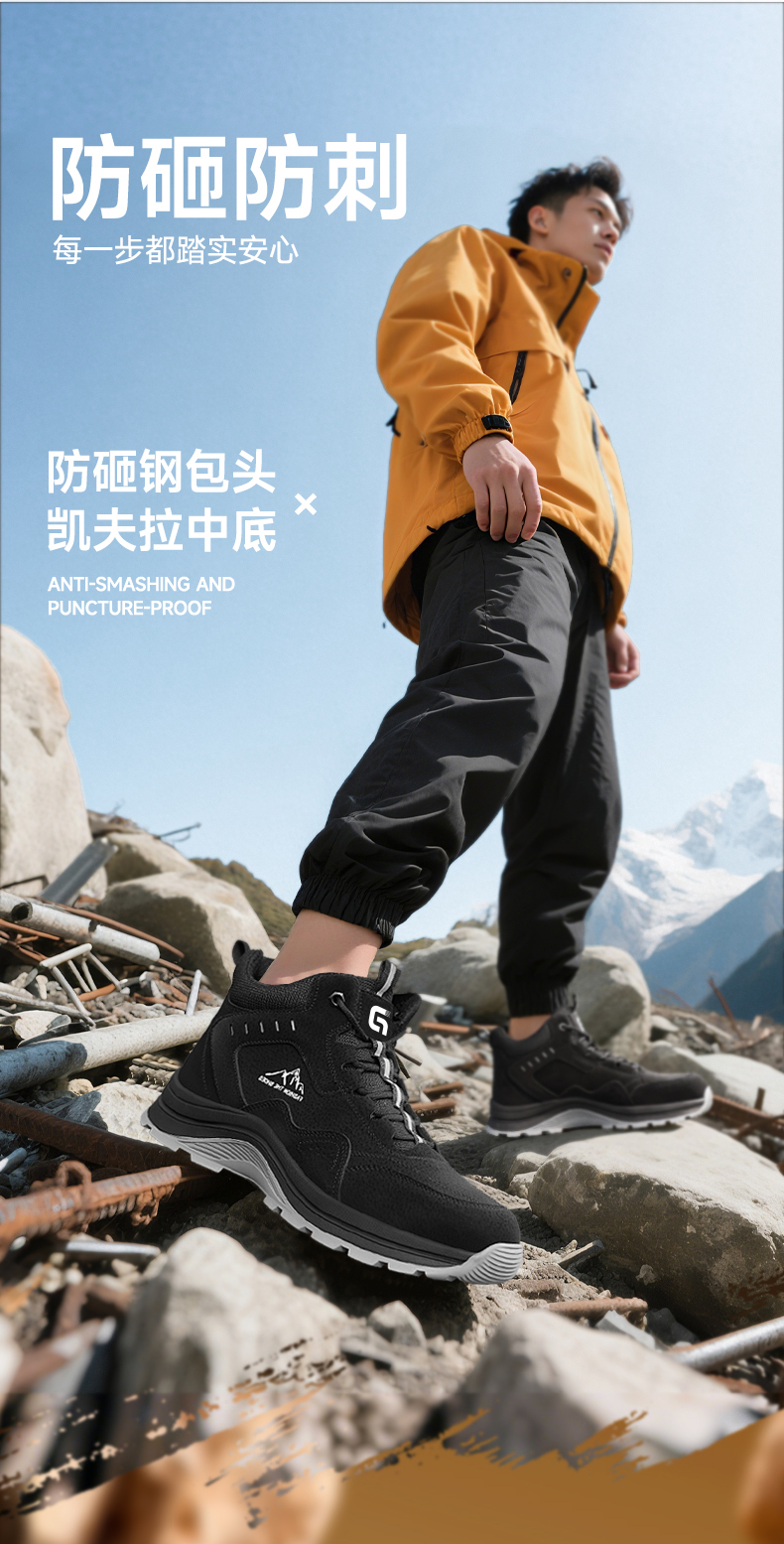 四季款劳保鞋男防砸防刺钢包头橡胶大底透气安全鞋工作鞋