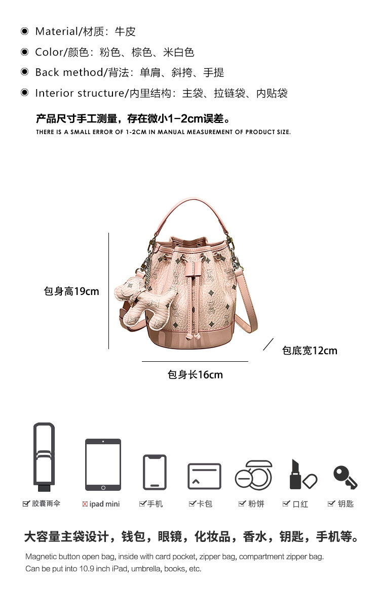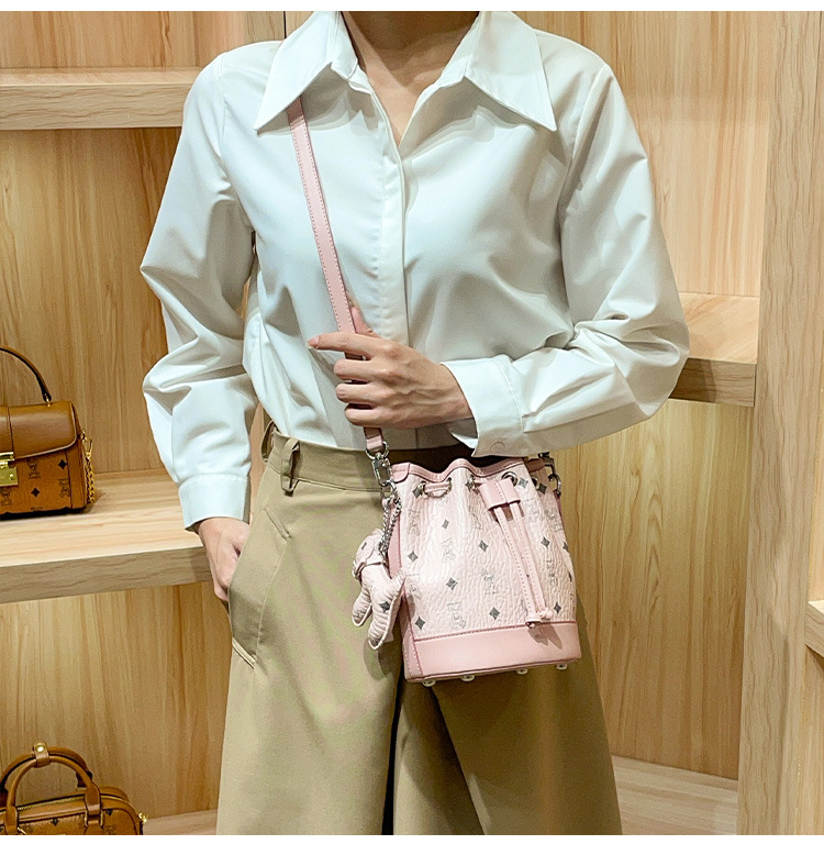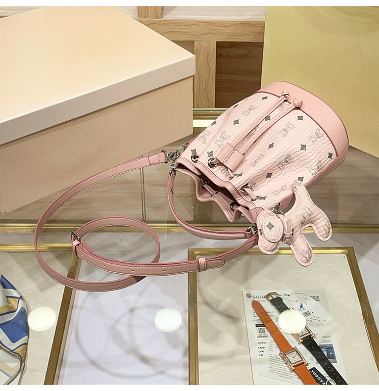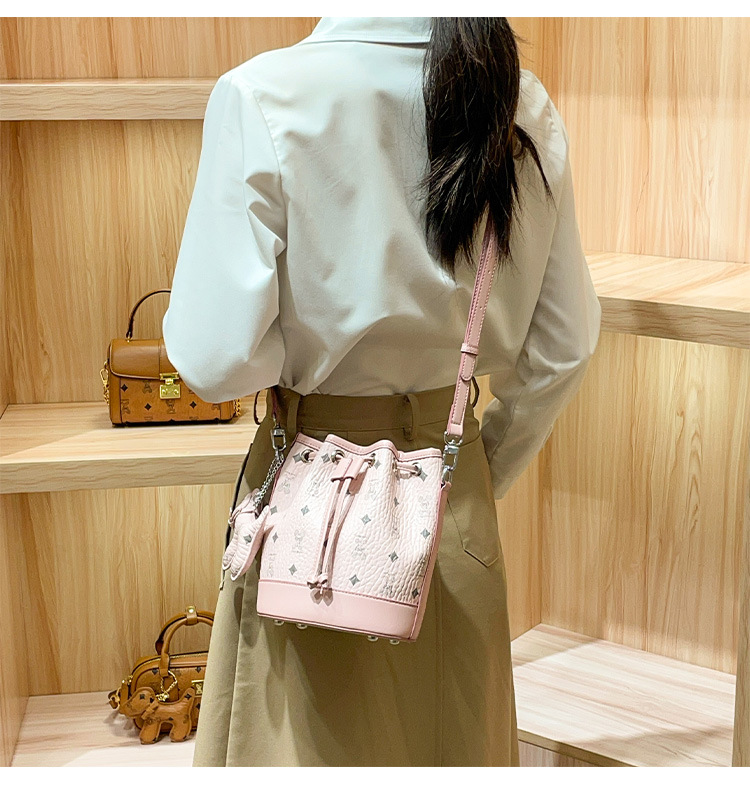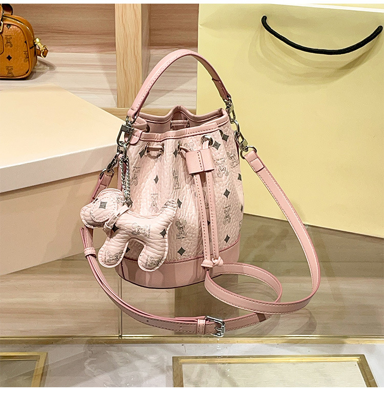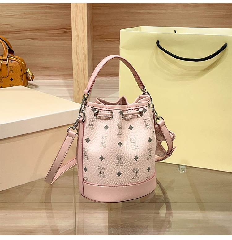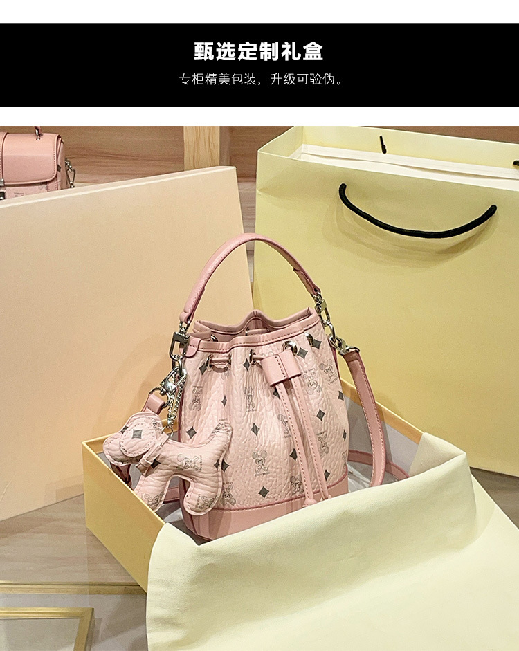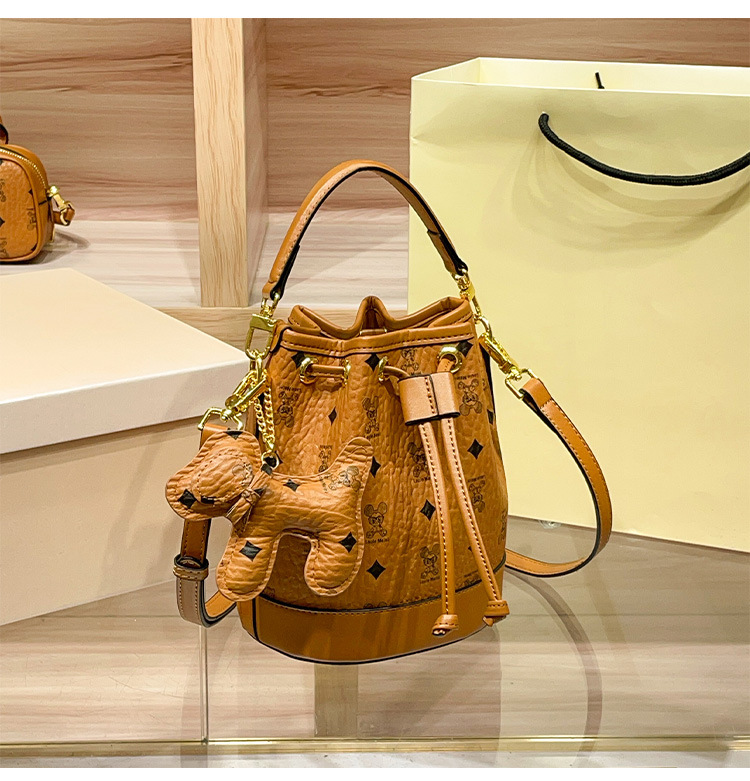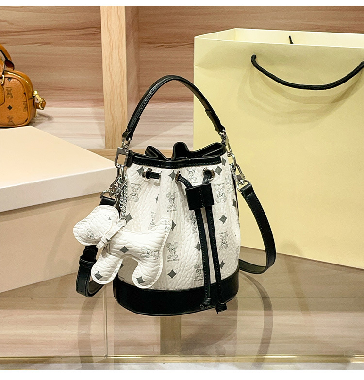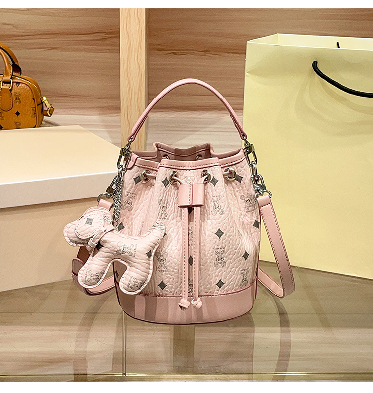 丁摩 【高品质】水桶包潮牛皮印花洋气小众设计高级感手提斜挎包5ZF-976