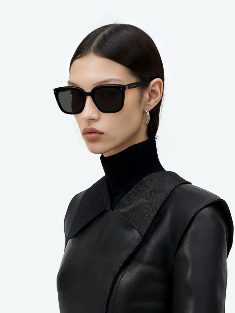 镜框没有之前那几款大,也是唯一一款偏圆的,线条感比较圆润,上脸又飒又可爱,有种说不出来的感觉~适合小脸女生