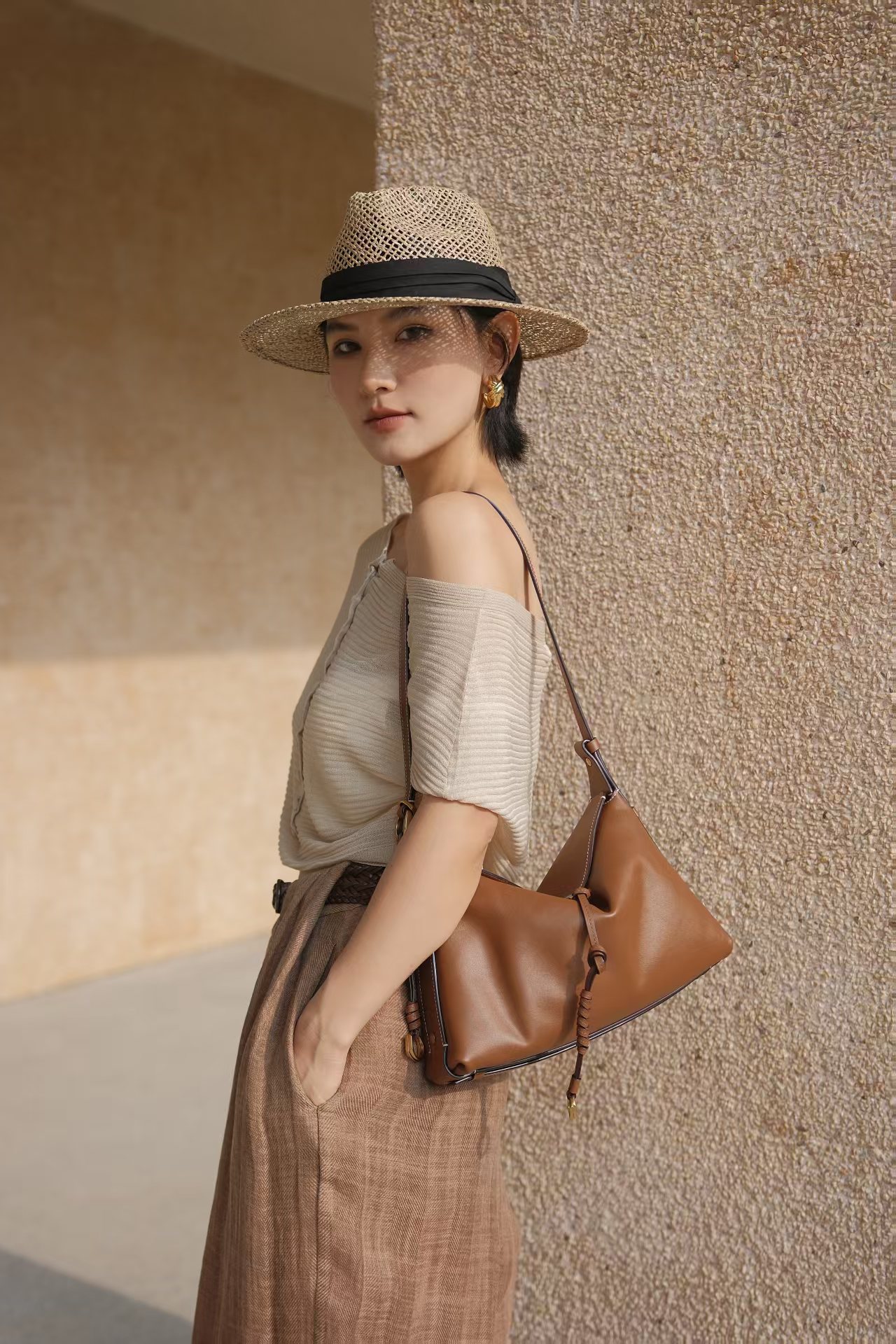 迪桑娜新品董洁同款回声hobo包植鞣牛皮女包单肩斜挎包腋下饺子包