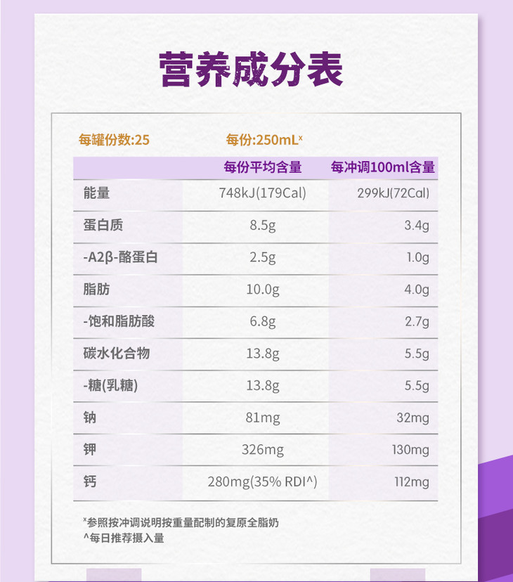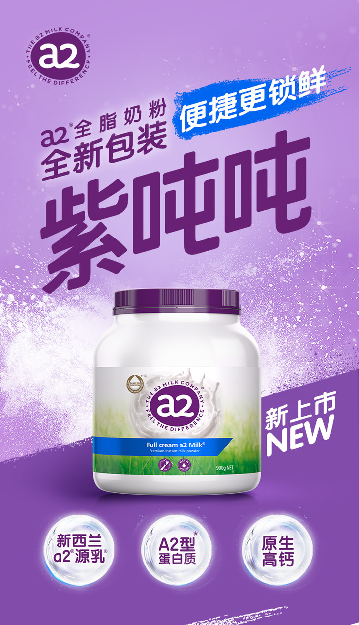 【紫吨吨】澳洲a2成人高钙全脂奶粉全家营养青少年中老年奶粉900g