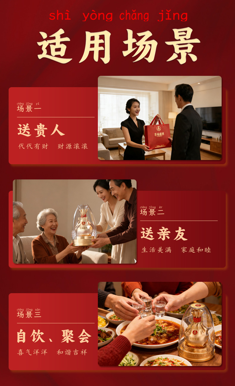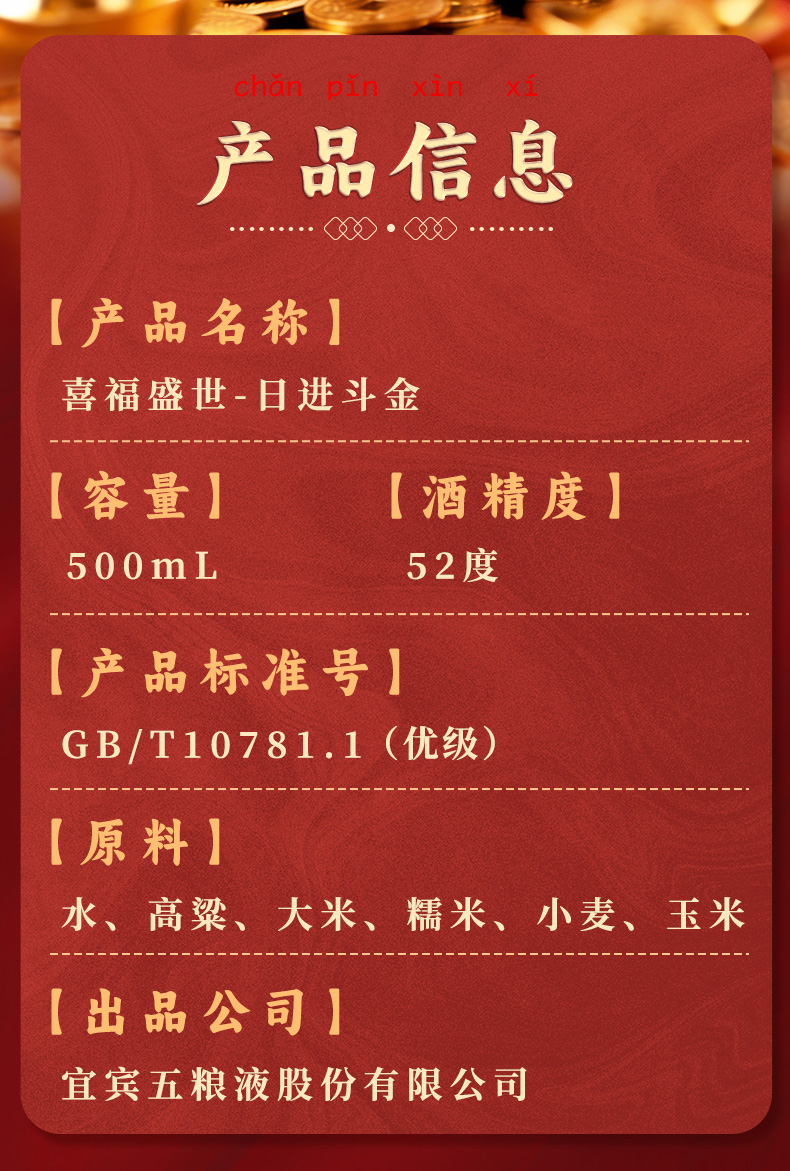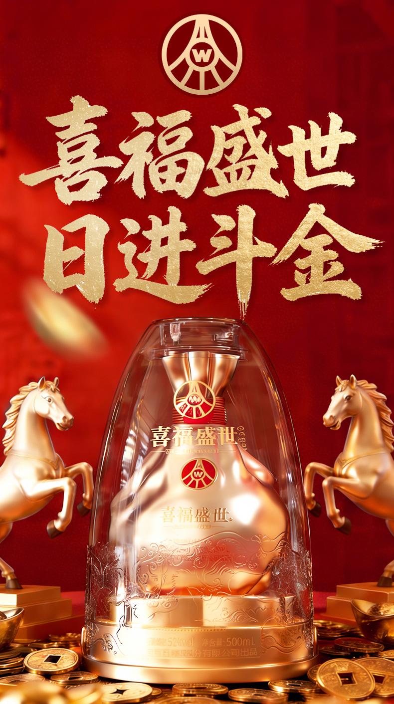 【年货节会员专享】五粮液股份出品 浓香型优级 喜福盛世 52度 500mL 2瓶 聚财金樽双支装