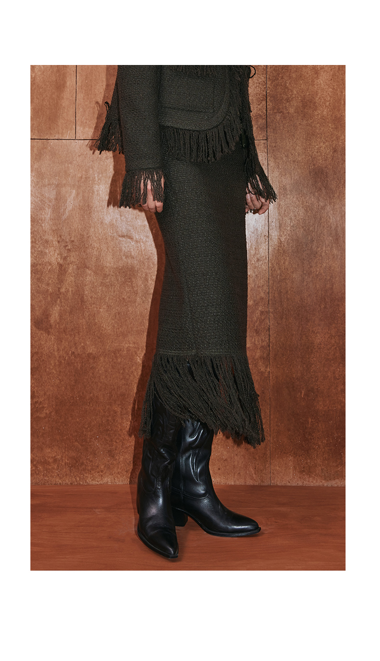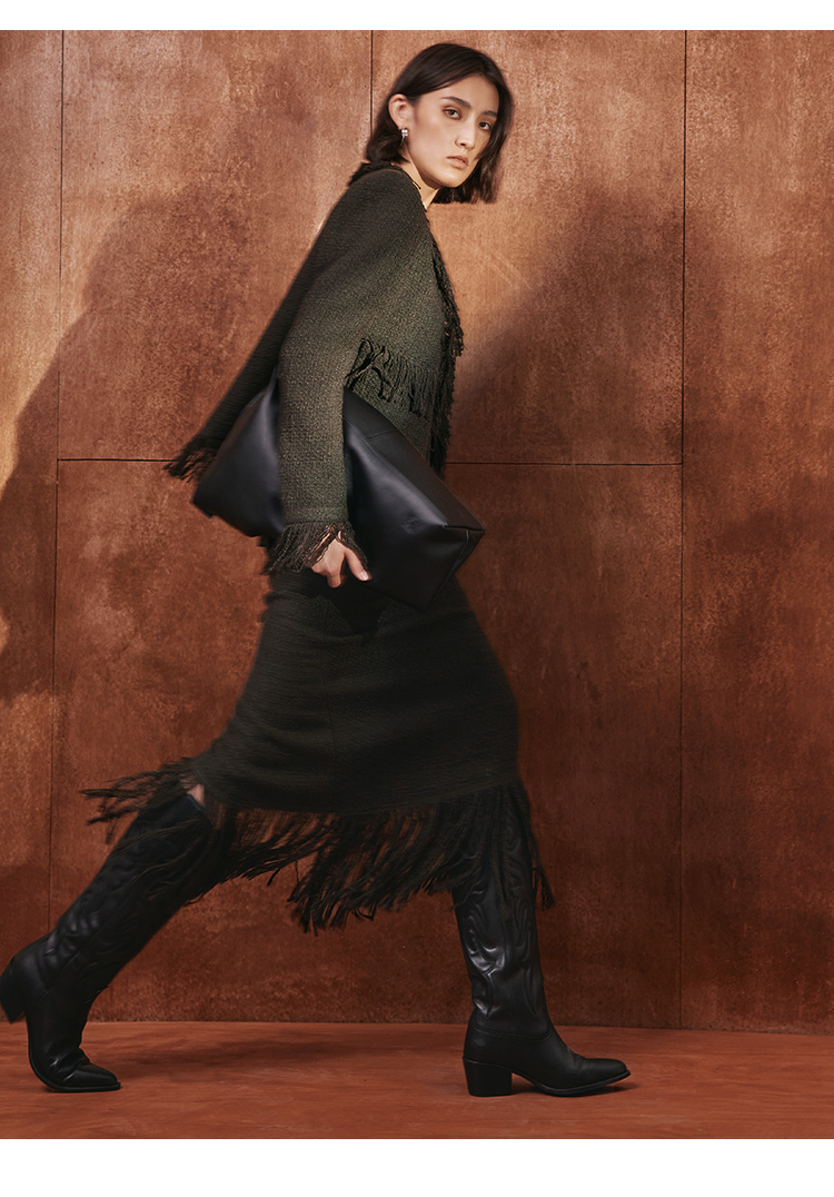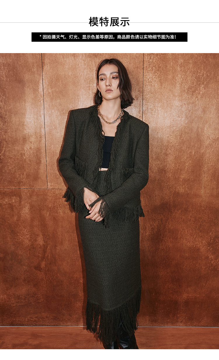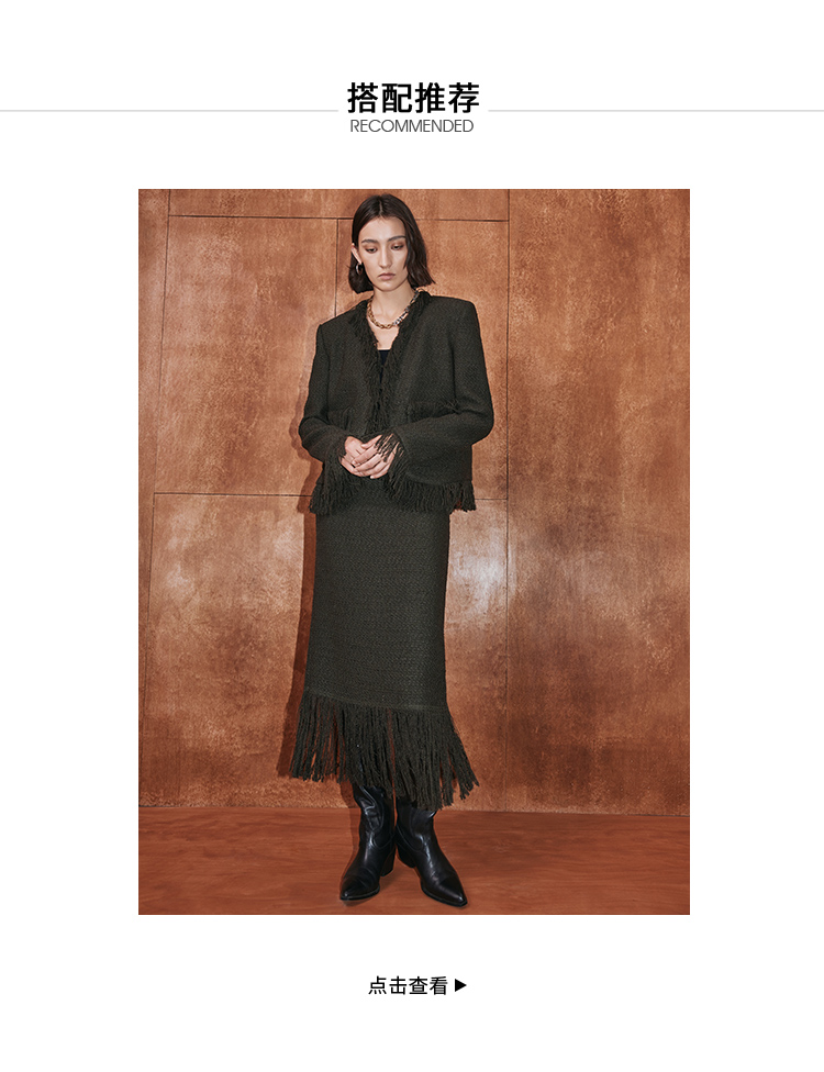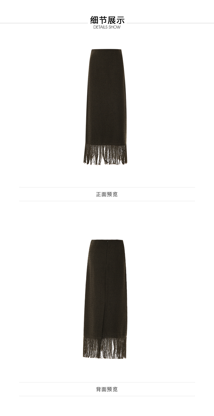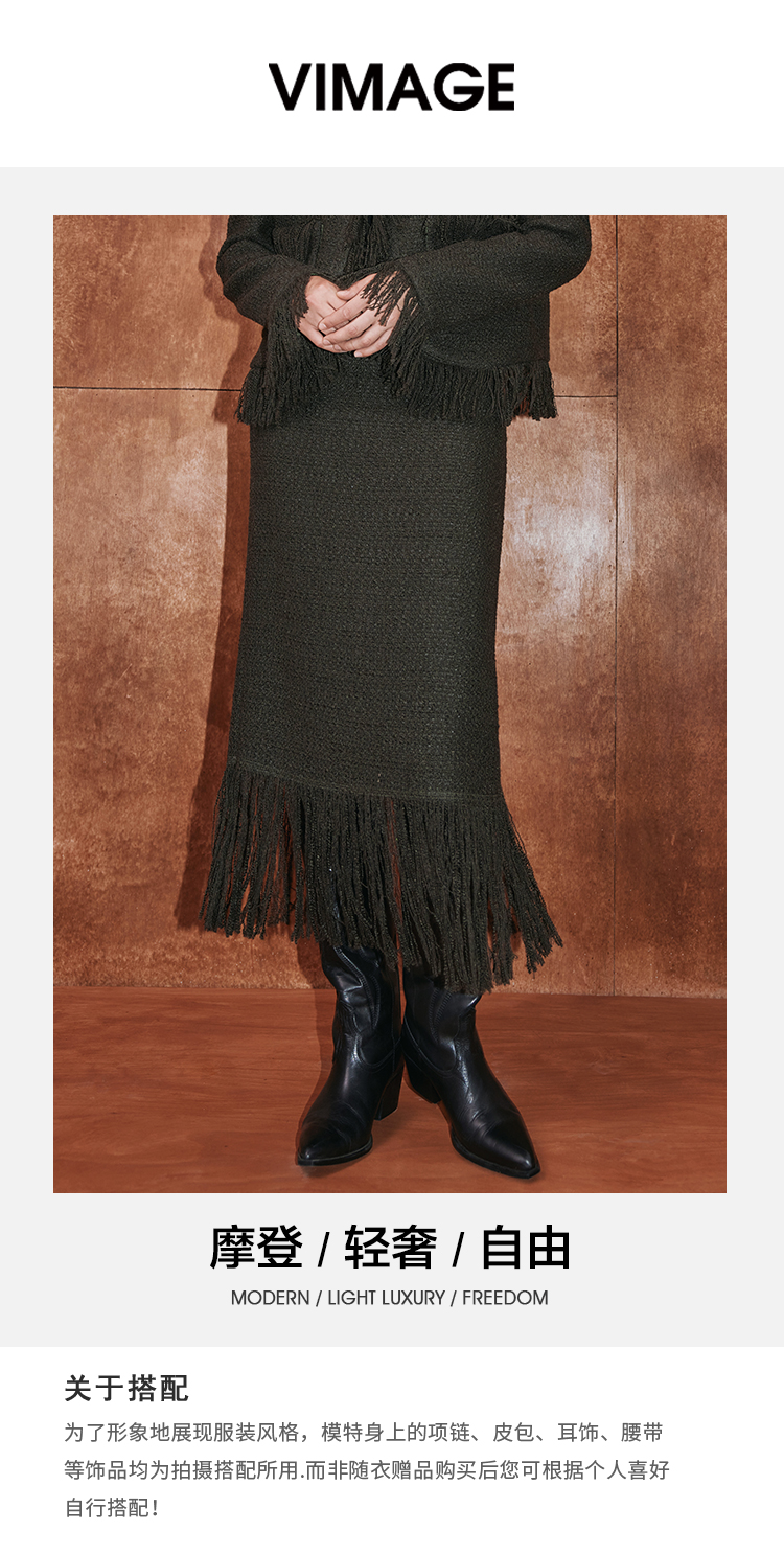 VIMAGE纬漫纪冬季新品流苏包臀H型直筒半身裙V2006632