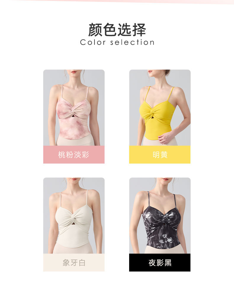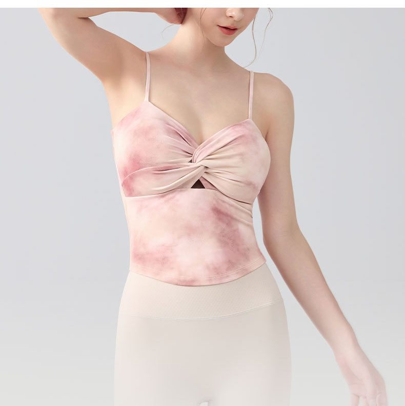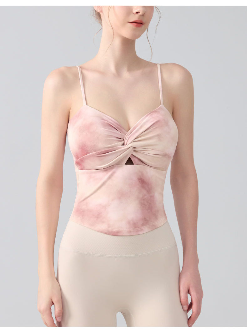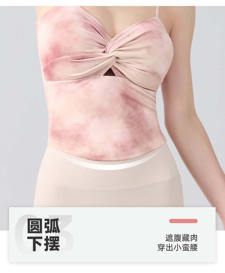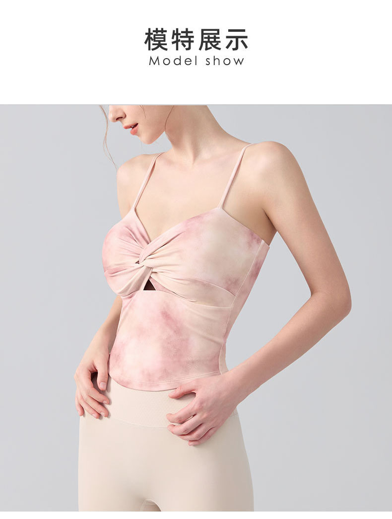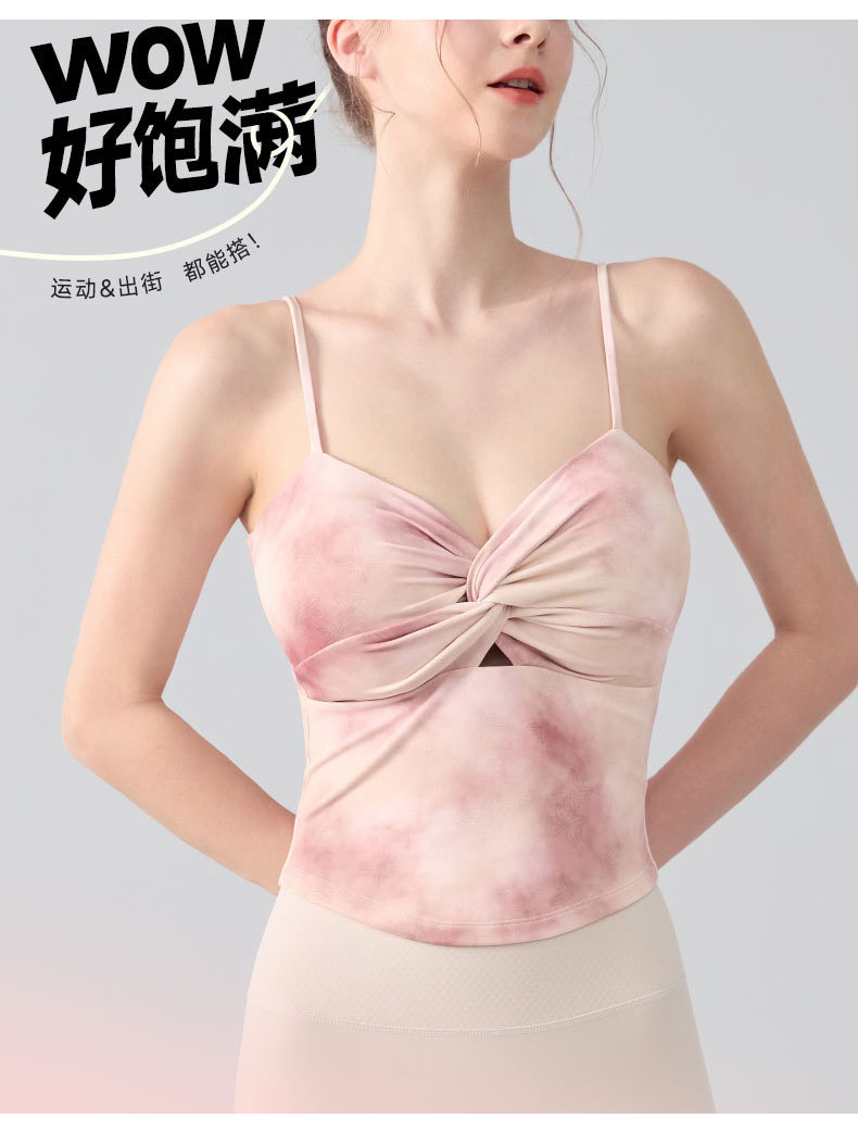 跃牌【海听系列】瑜伽服性感扭结吊带运动背心女带胸垫印花修身内搭健身上衣XC81