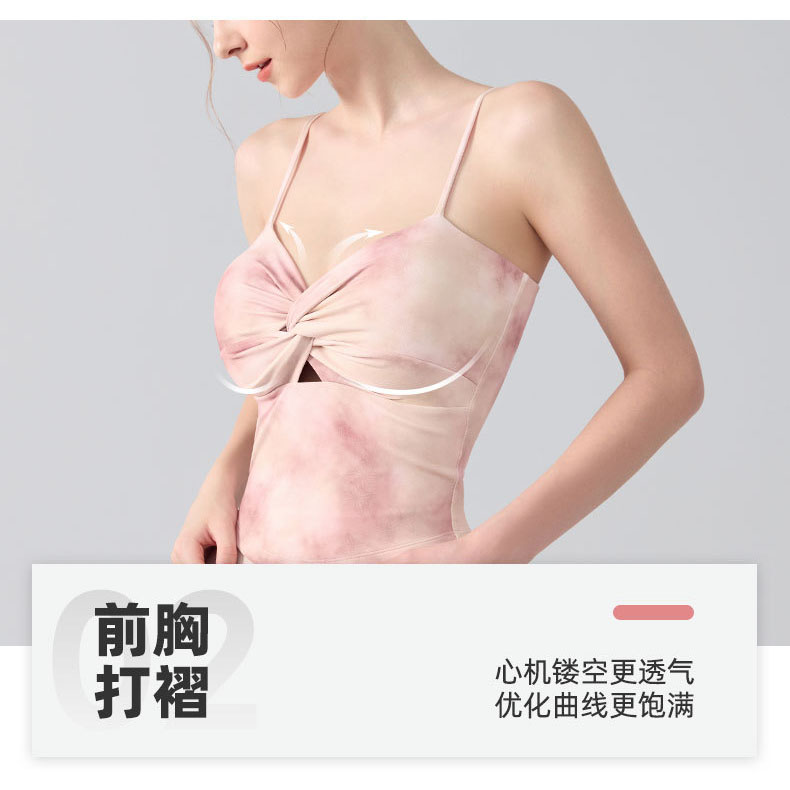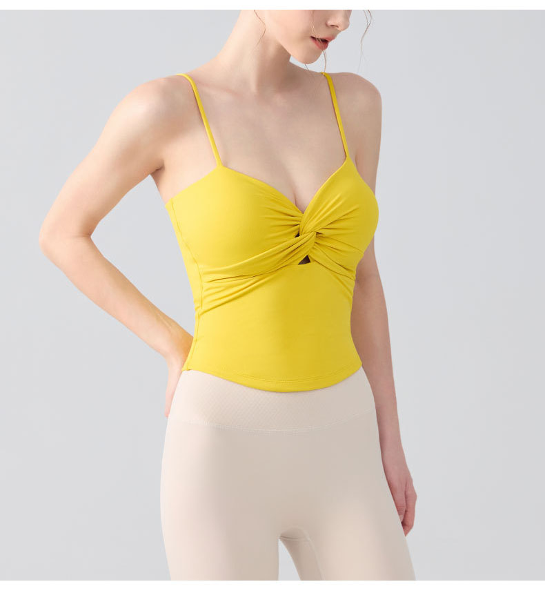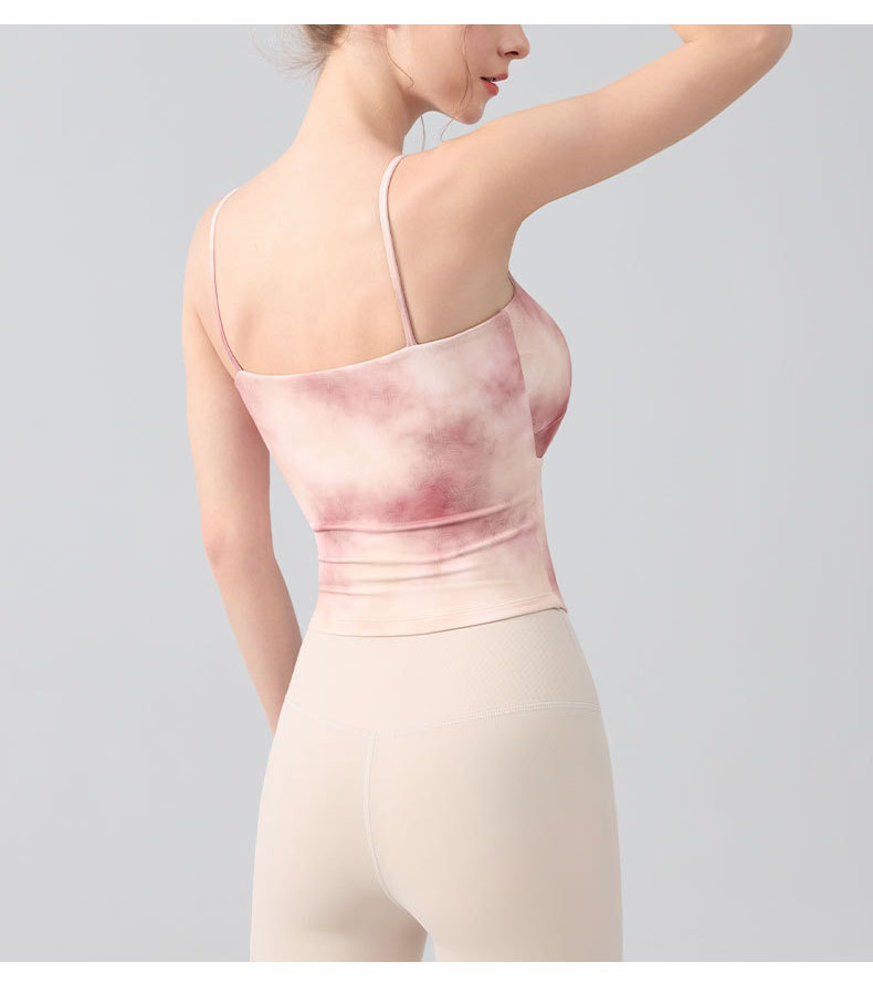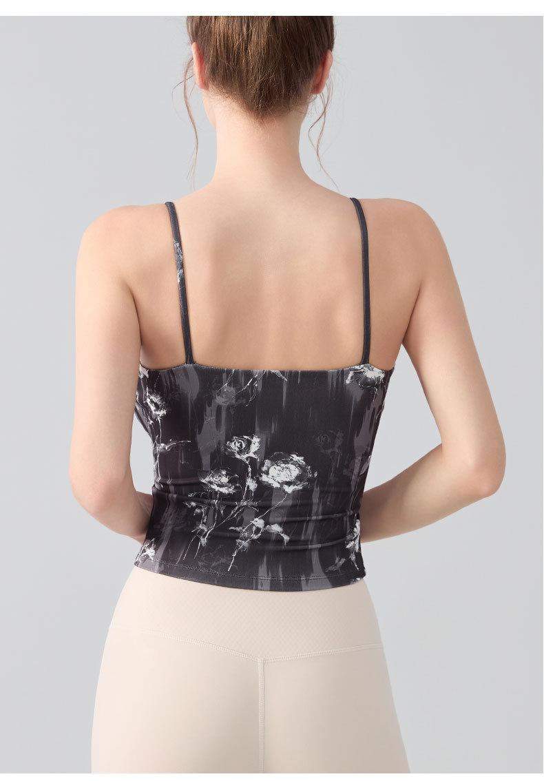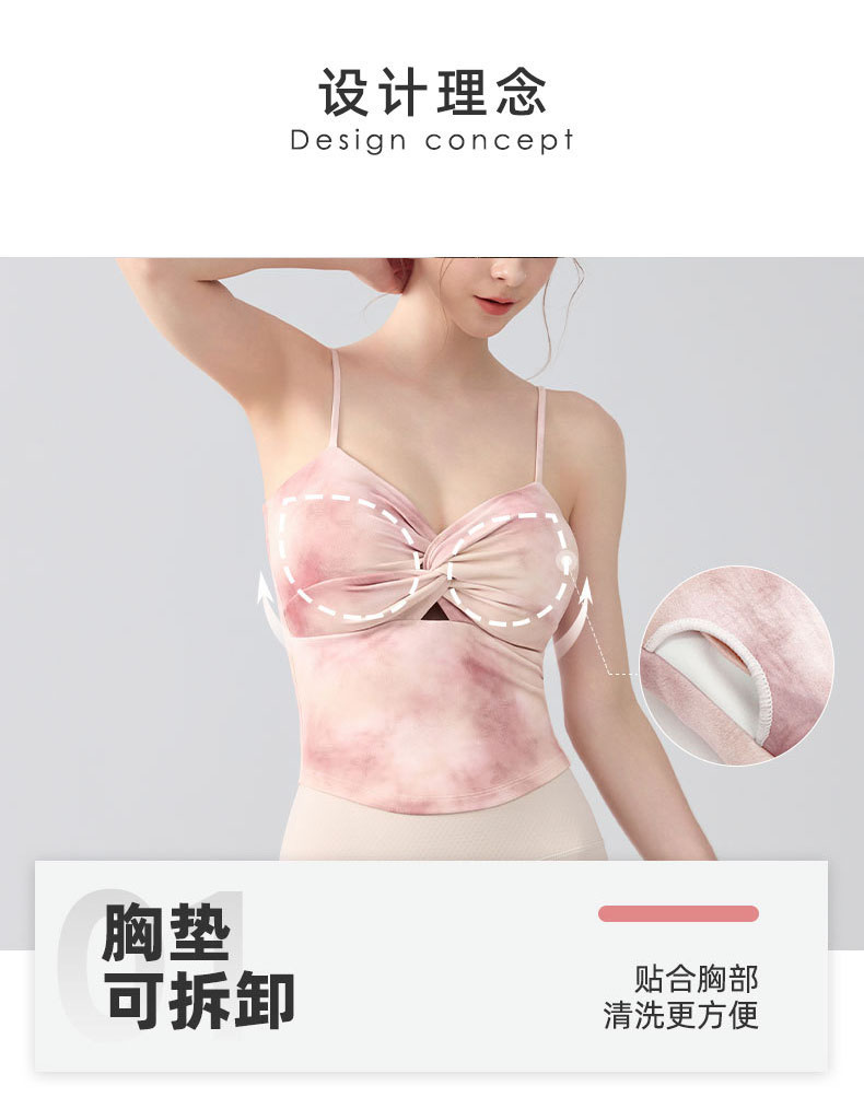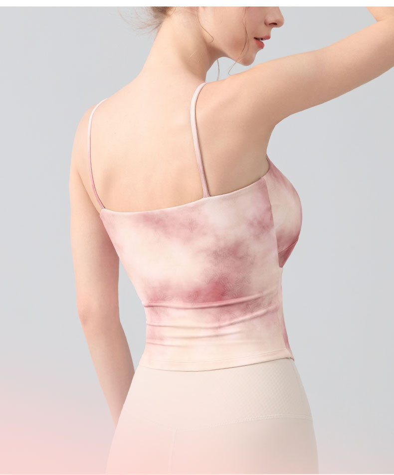 跃牌【海听系列】瑜伽服性感扭结吊带运动背心女带胸垫印花修身内搭健身上衣XC81