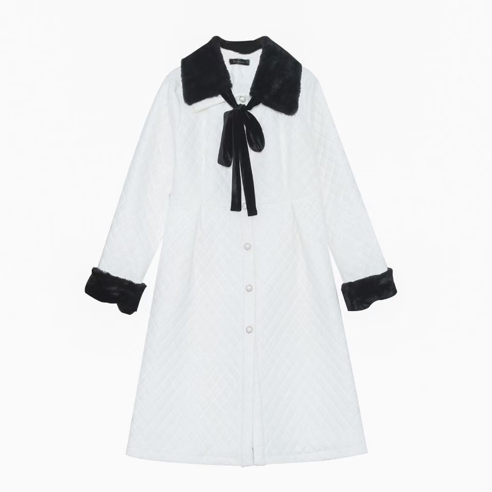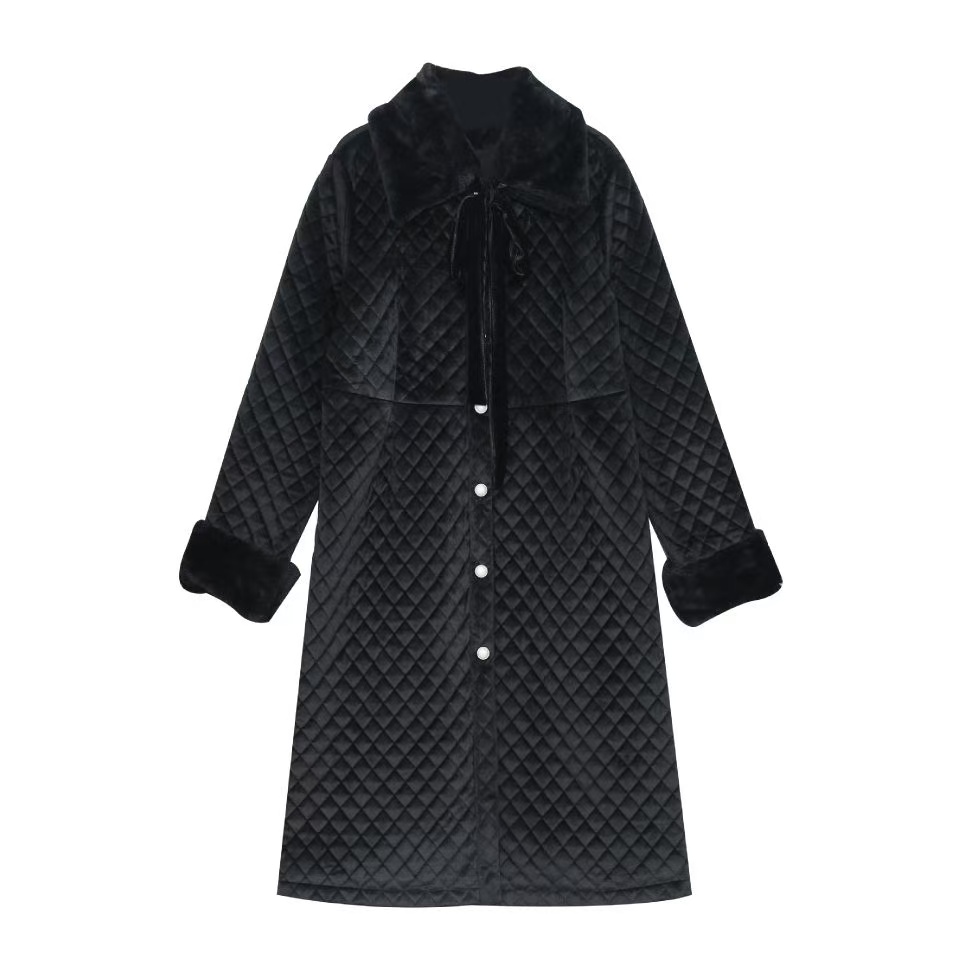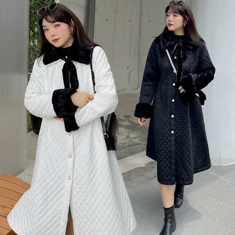 双十二福利!清!不支持退(无毛领毛袖套件)【诗铭洛可】XCA423棉服大码法式复古OL中长款气质菱格大衣外套