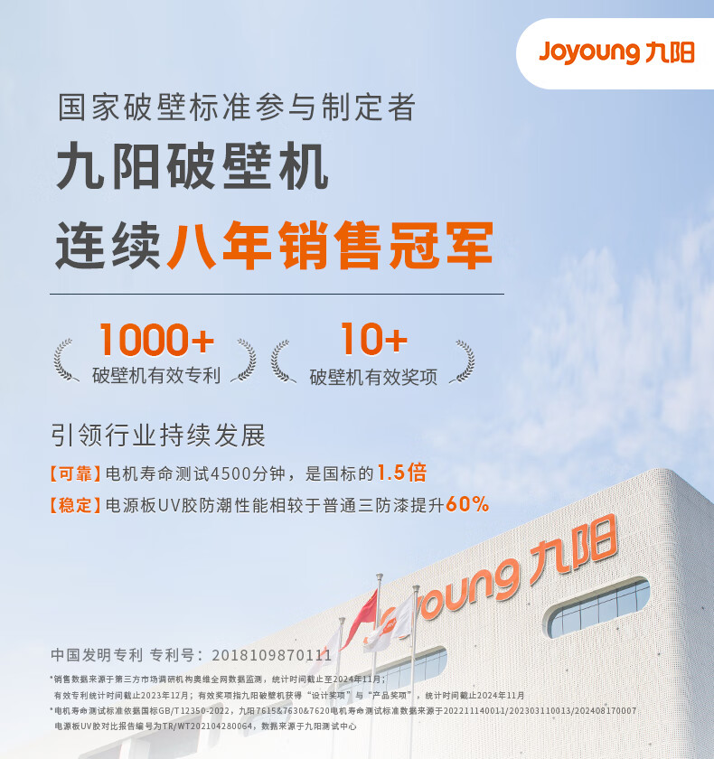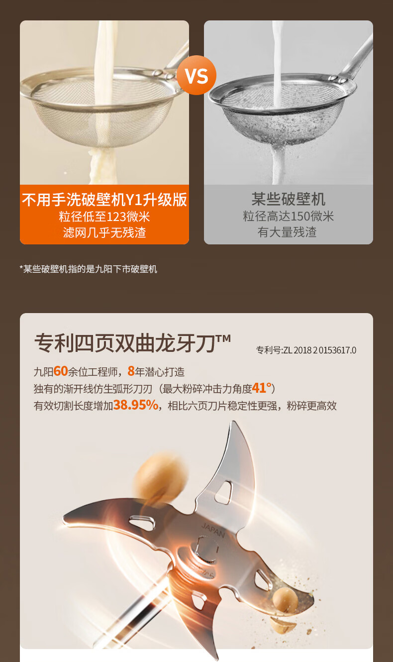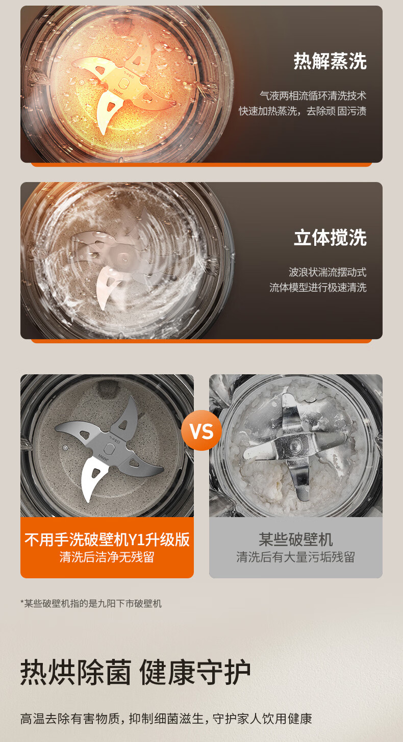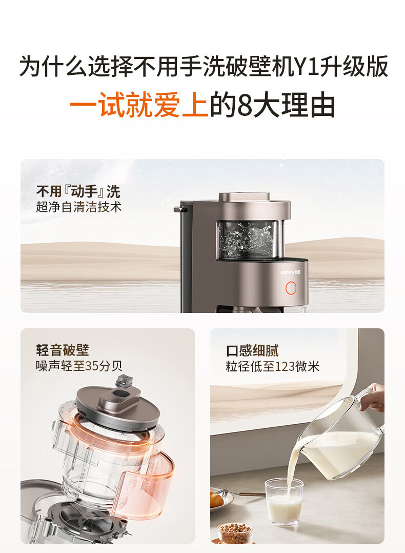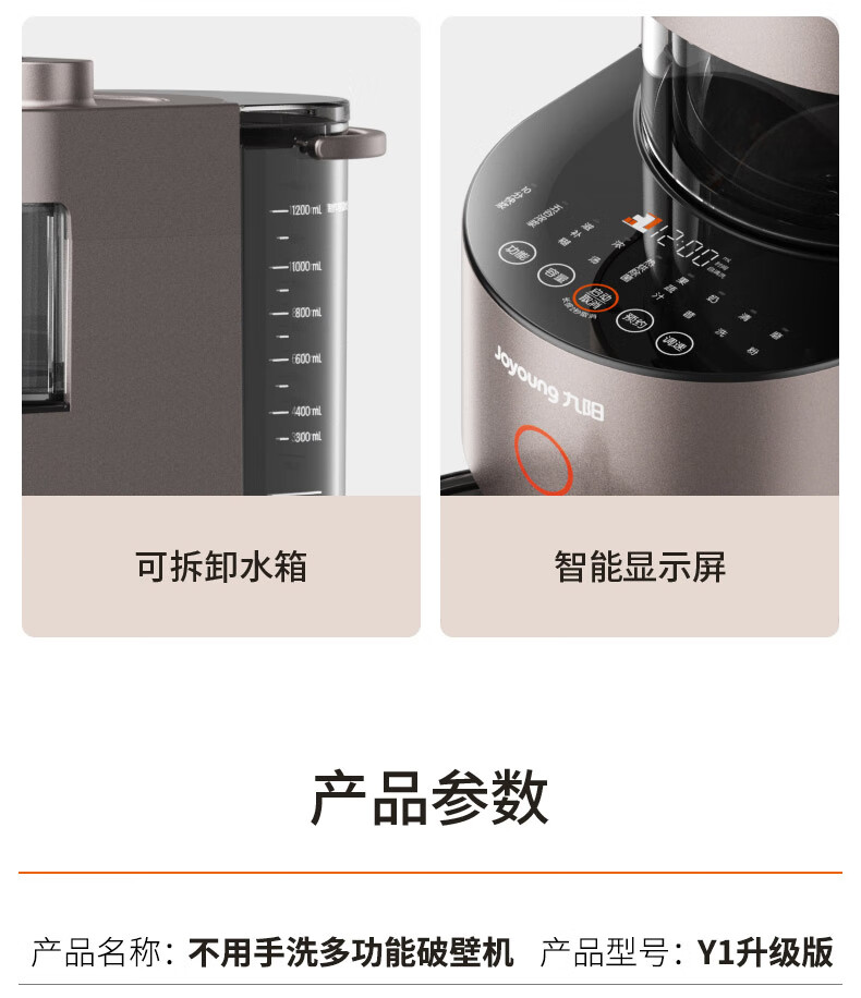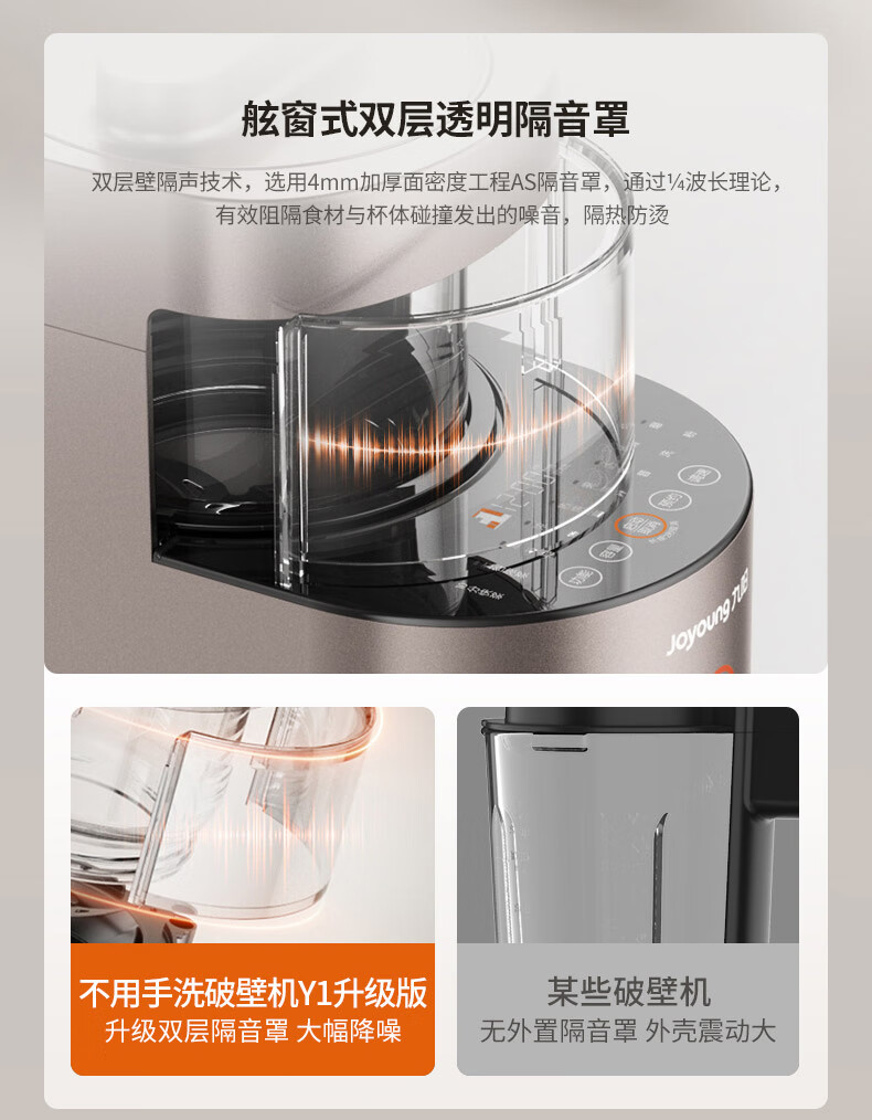 【升级款】Joyoung/九阳Y1破壁机低噪音全自动清洗不用手洗家用多功能预约热烘料理机养生豆浆机