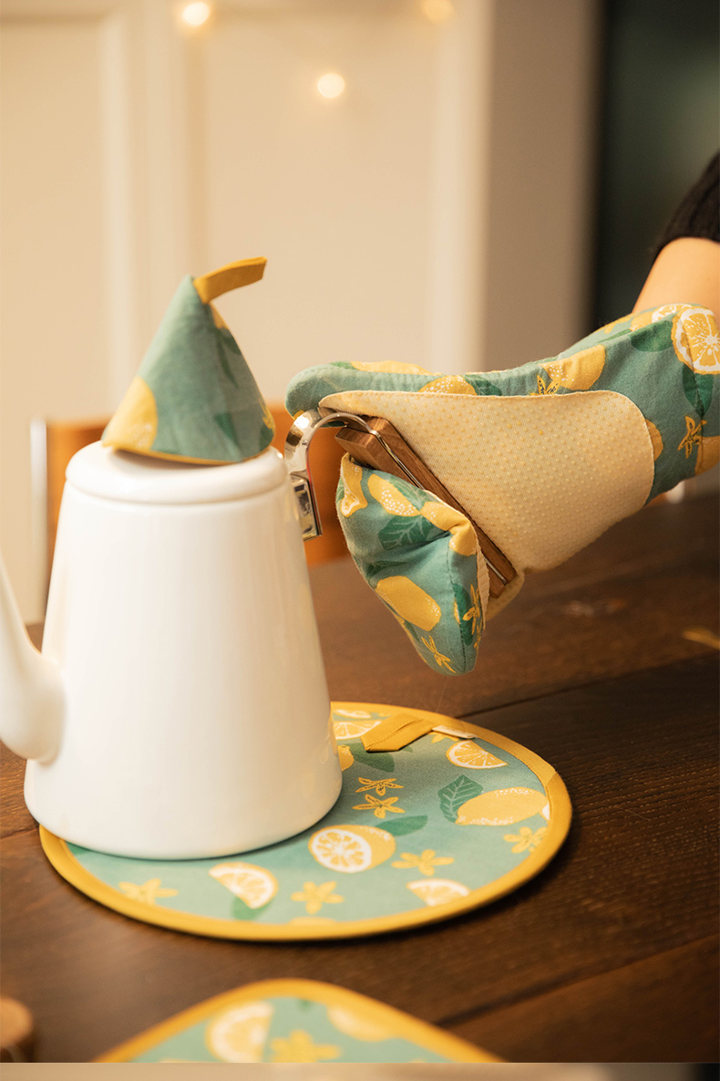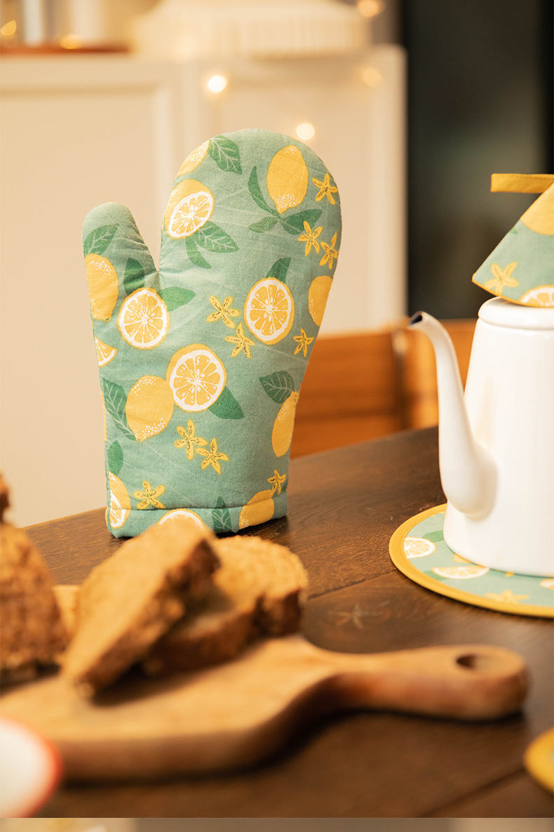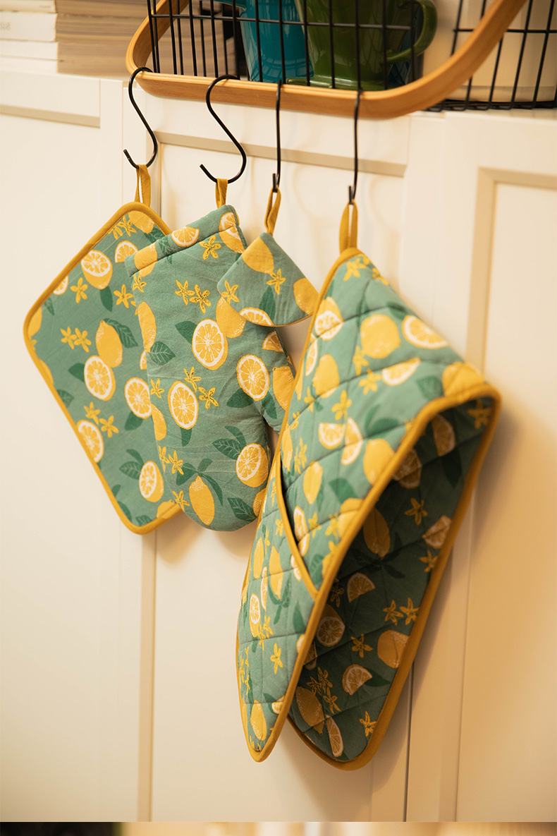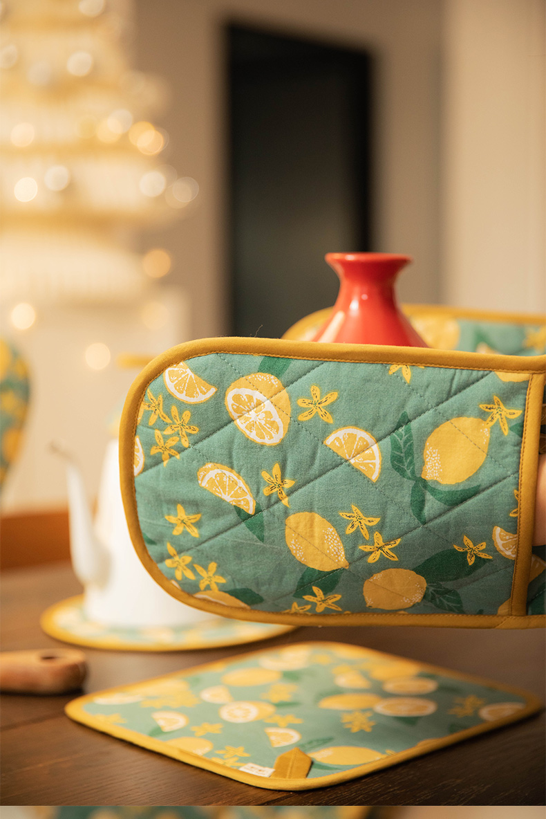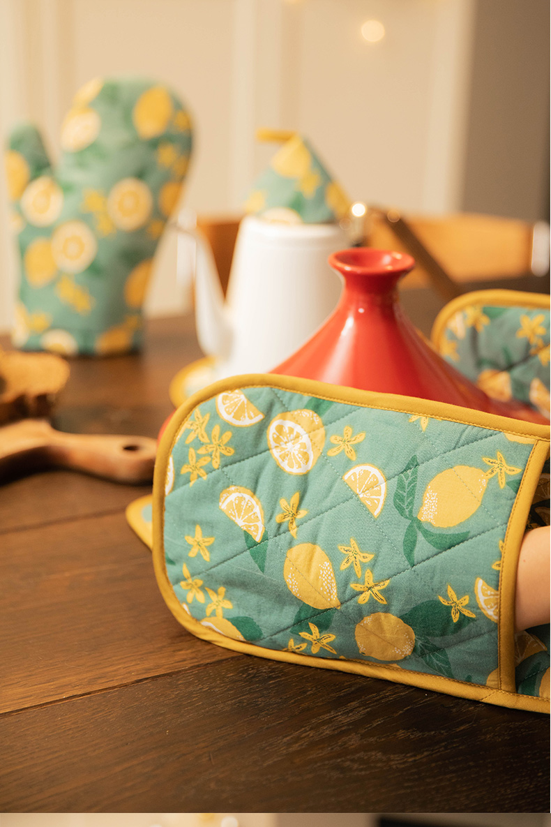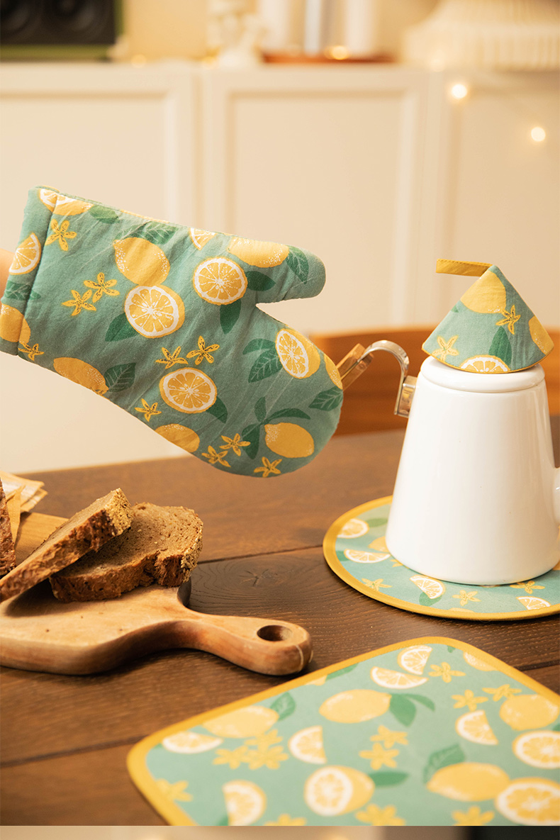 柠檬系列厨房套件纯棉布艺耐高温隔热手套隔热垫