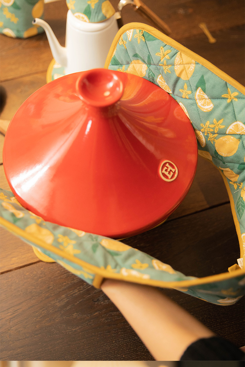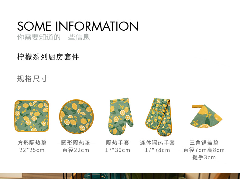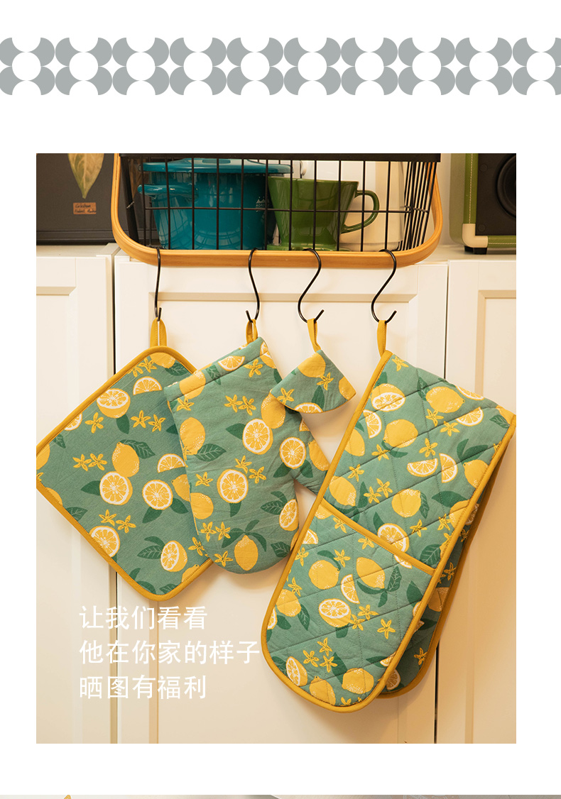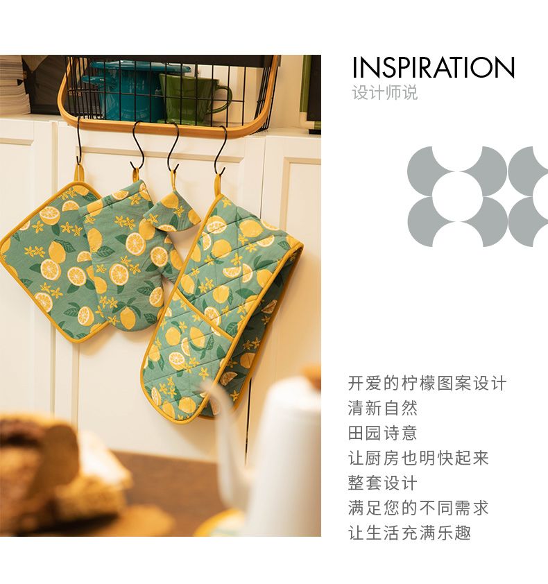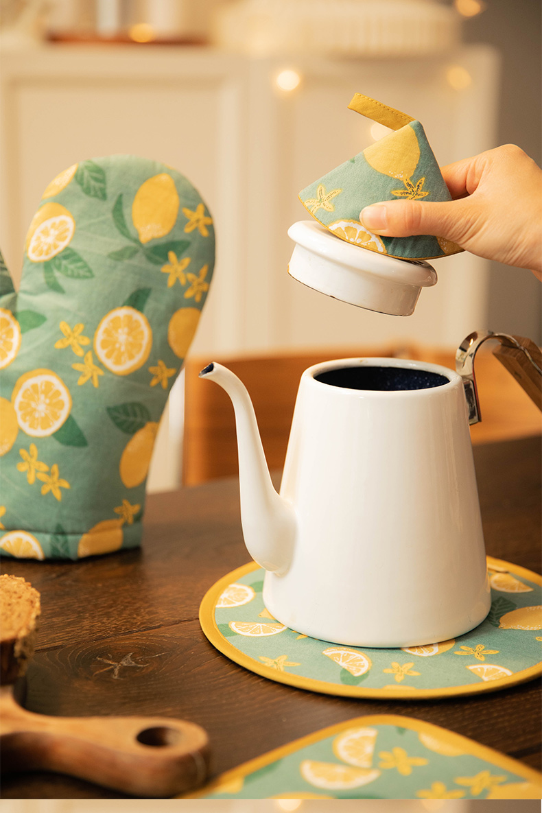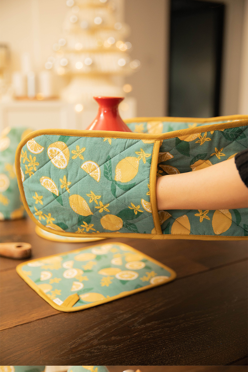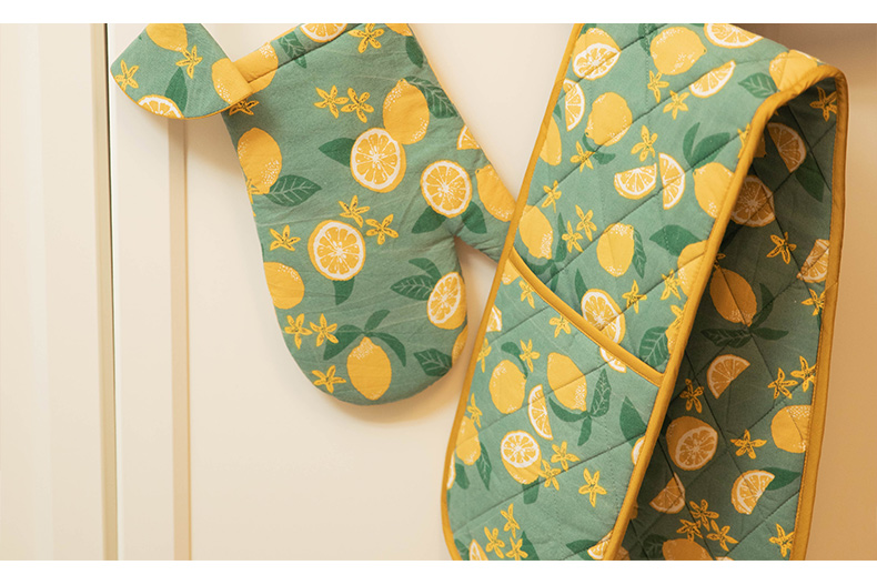 柠檬系列厨房套件纯棉布艺耐高温隔热手套隔热垫