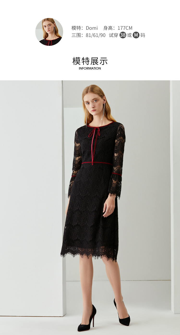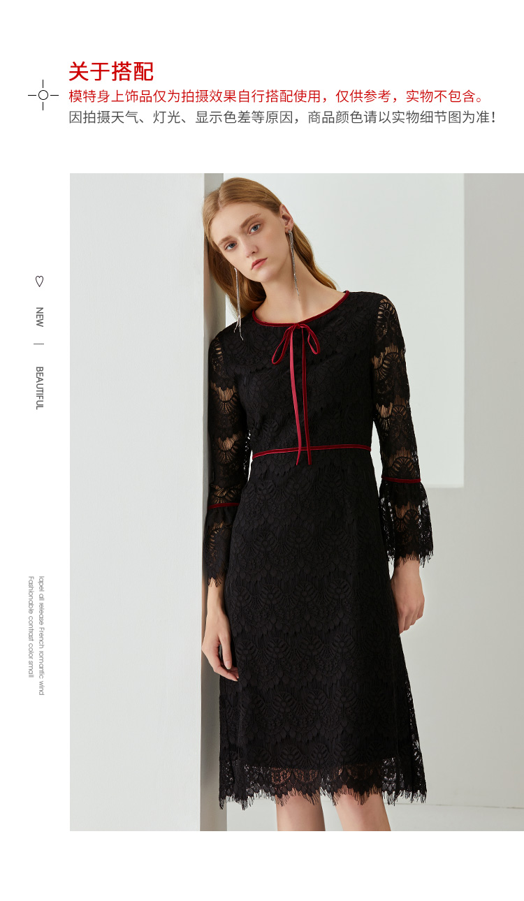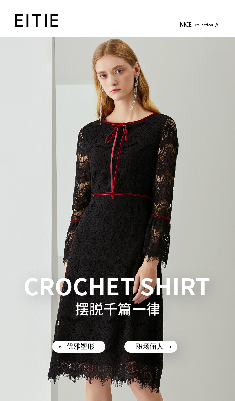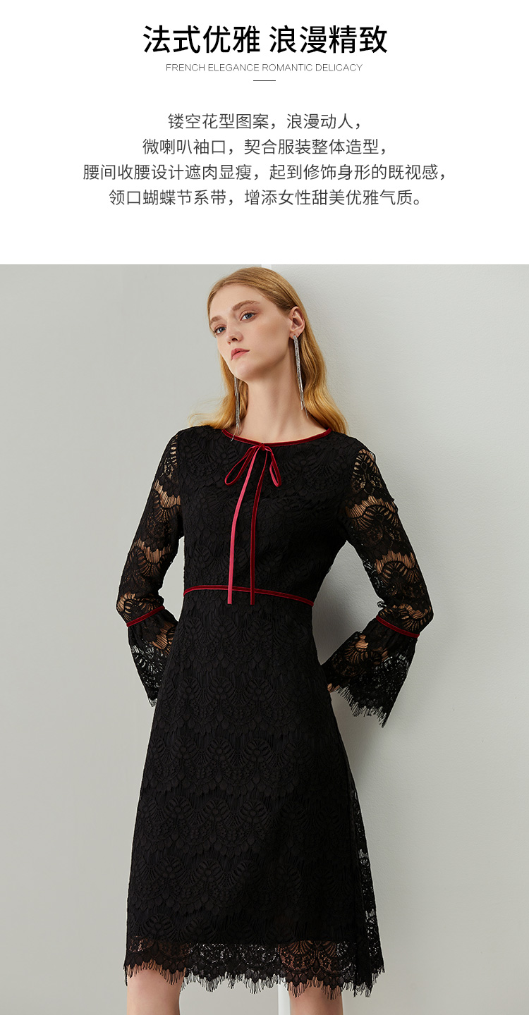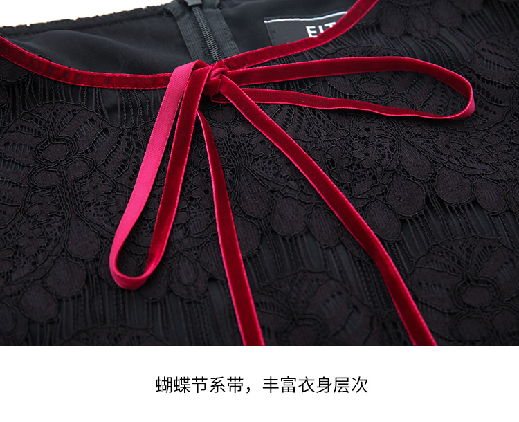 EITIE爱特爱秋季新款时尚洋气精致镂空蕾丝收腰A字显瘦连衣裙C2107802