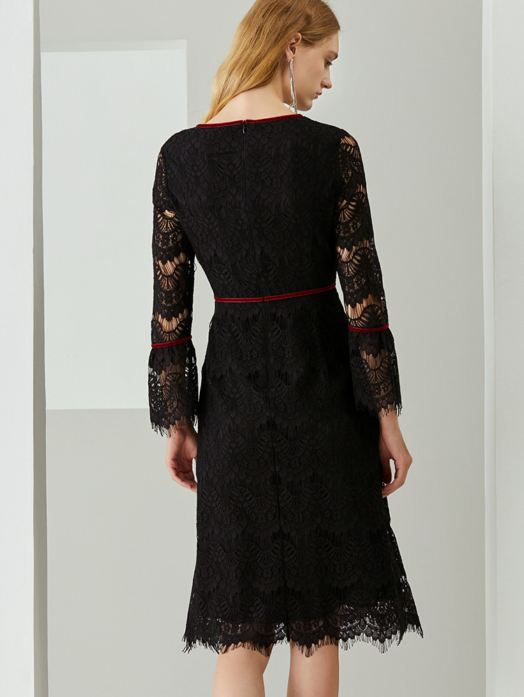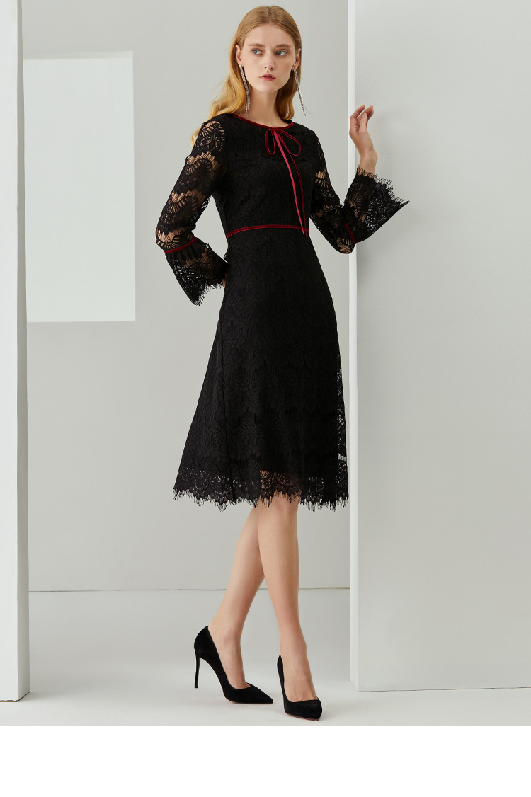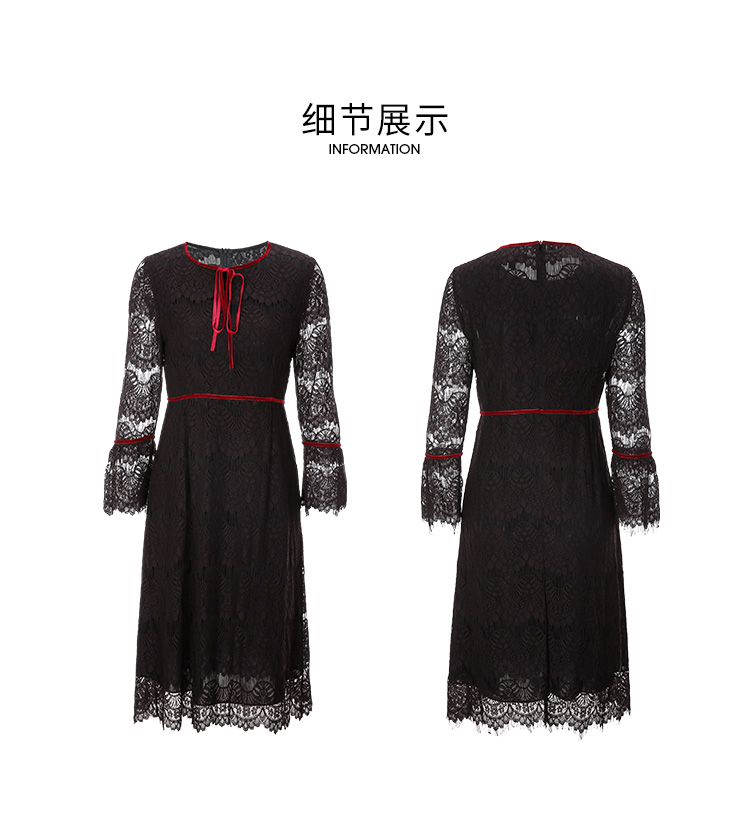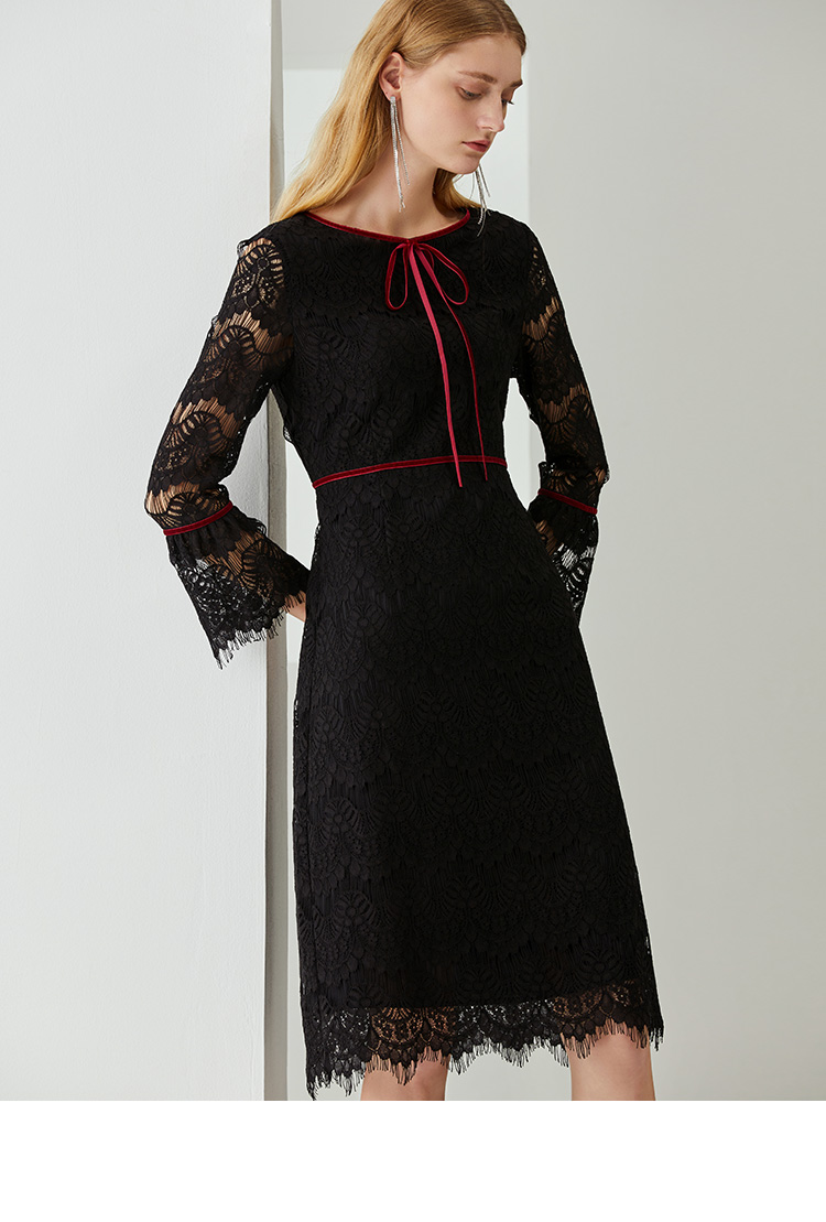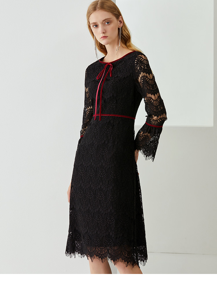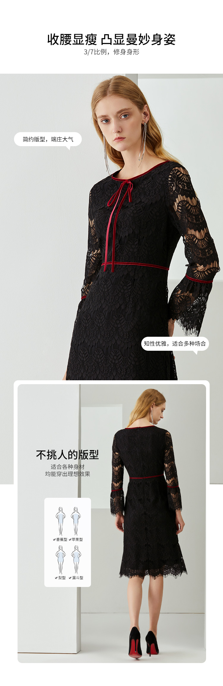 EITIE爱特爱秋季新款时尚洋气精致镂空蕾丝收腰A字显瘦连衣裙C2107802