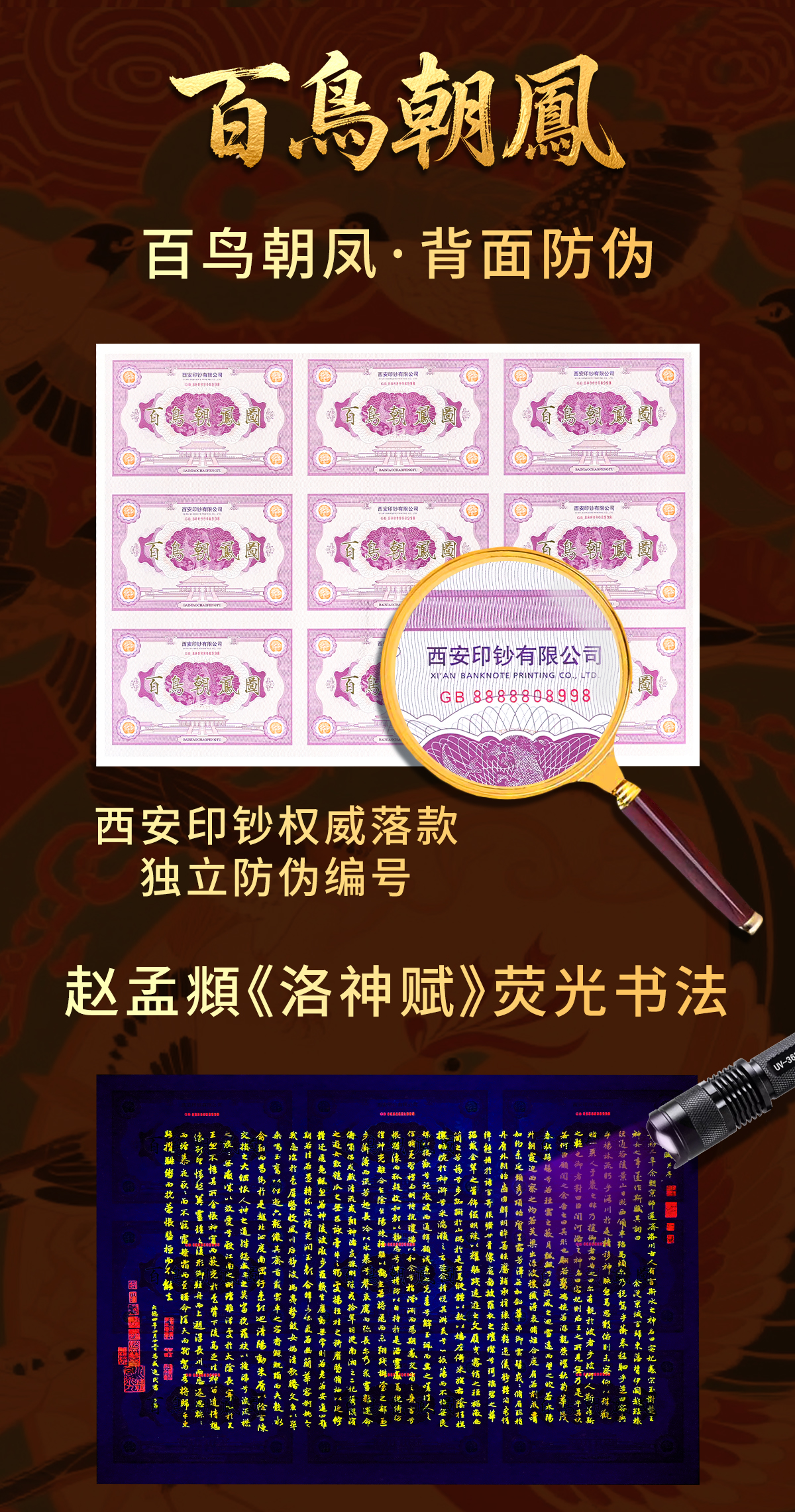 【西安印钞】百鸟朝凤荧光画纪念钞艺券炮筒