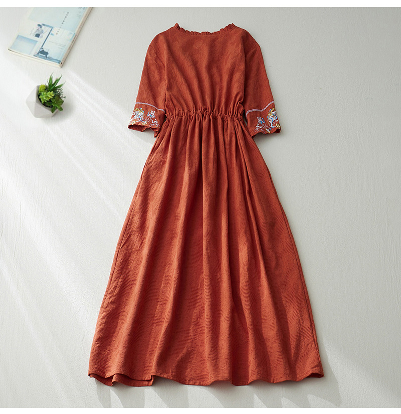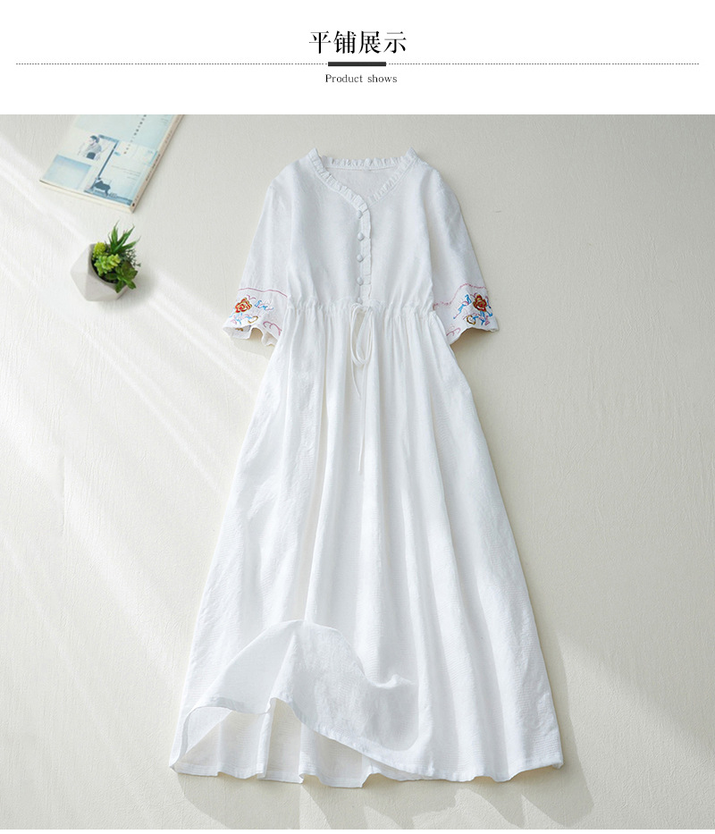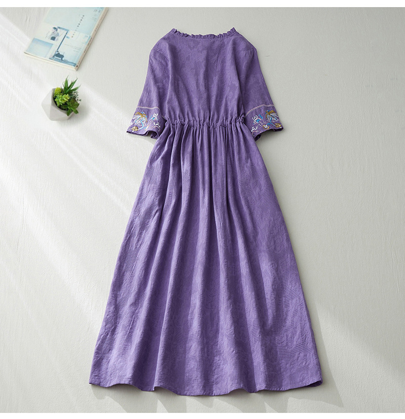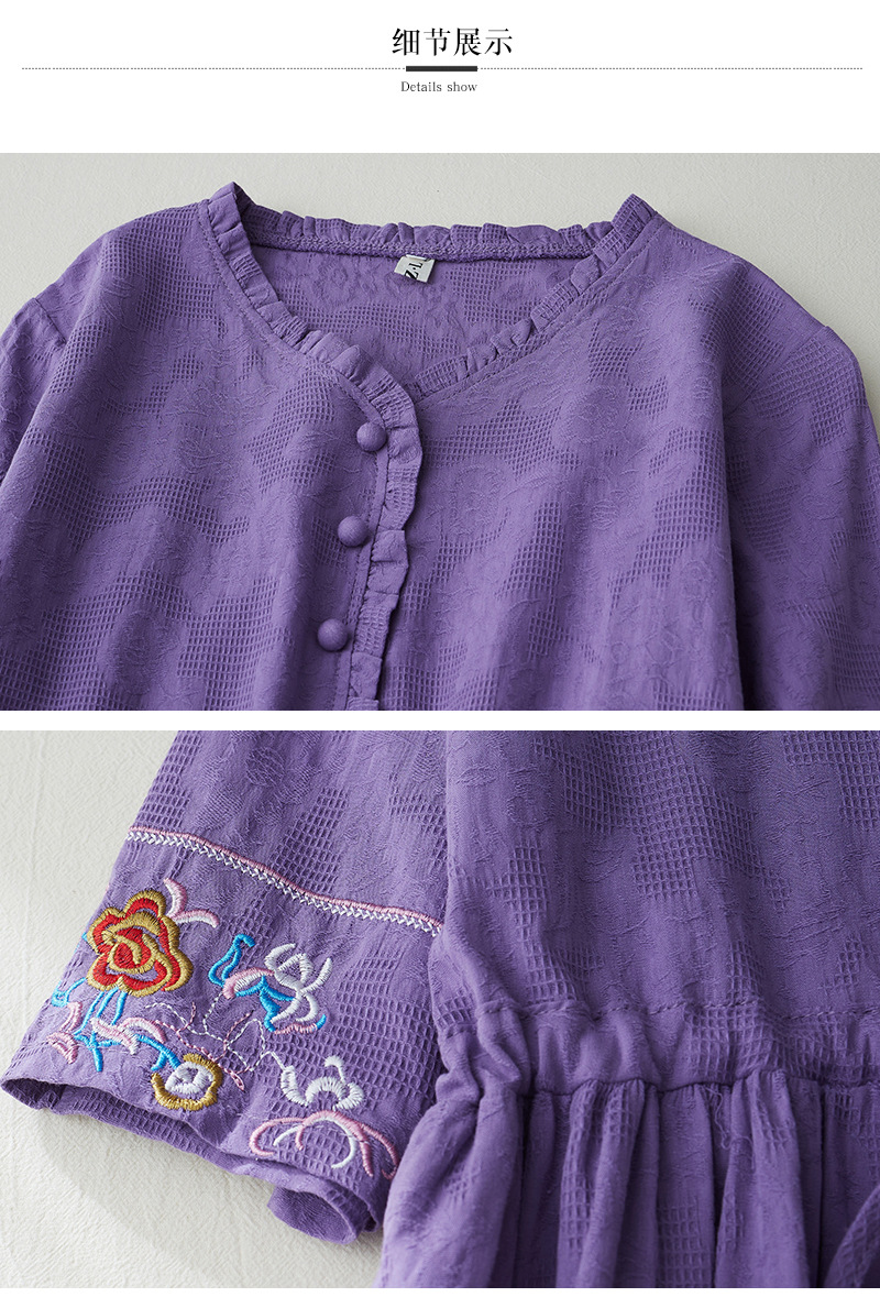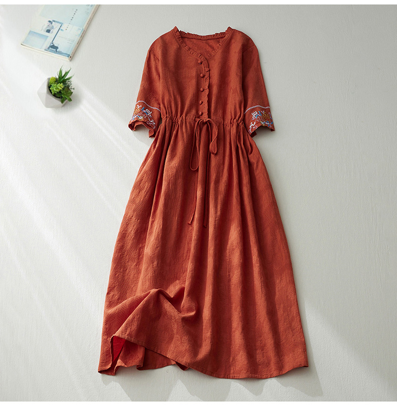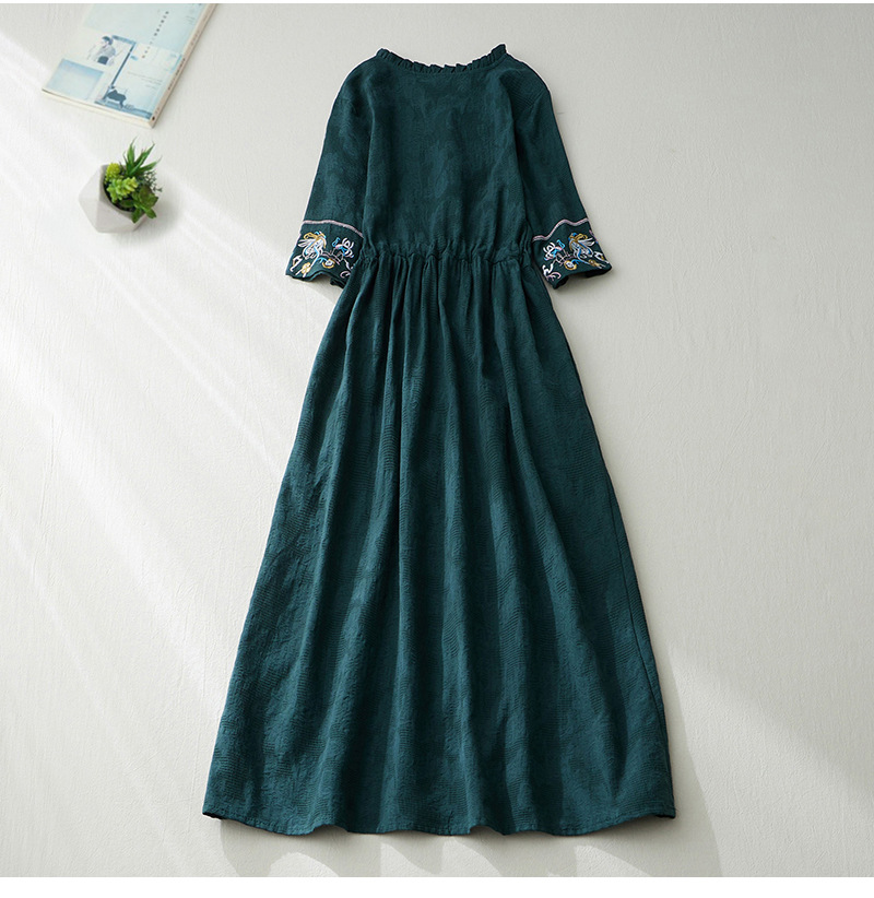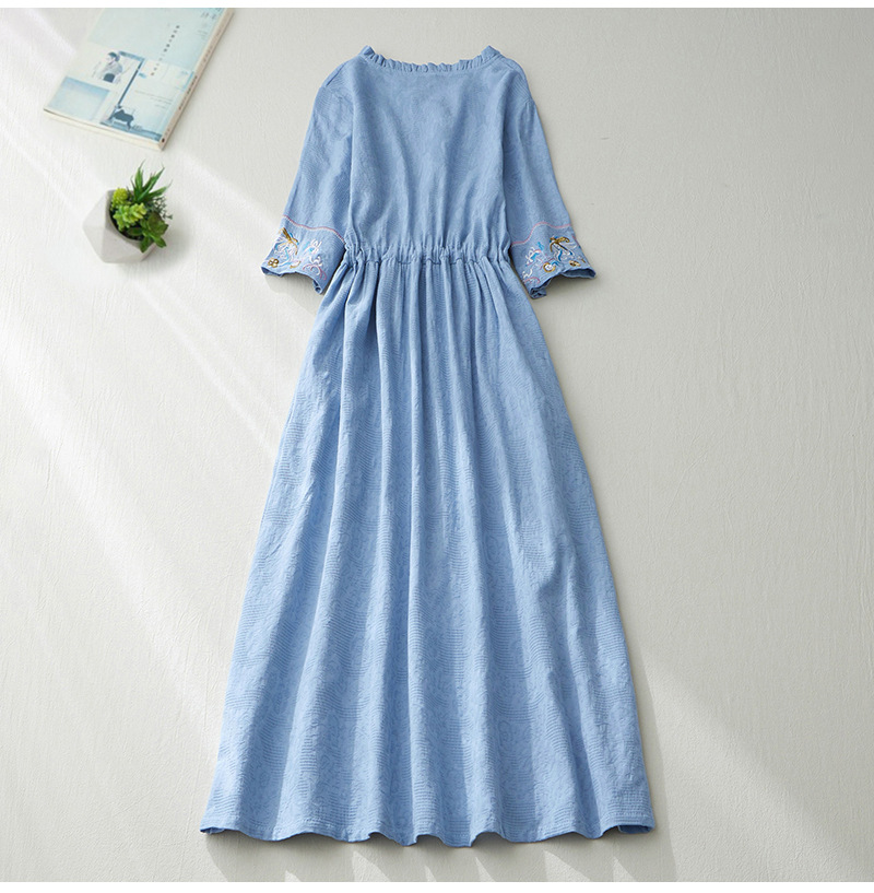 GYH 8685民族风提花刺绣V领连衣裙大码显瘦长裙
