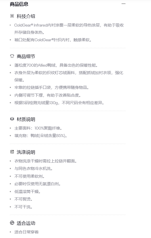 【12.21圣诞专享礼遇】 安德玛女子UA Limitless热冬系列灯芯绒羽绒夹克1384652-110【无货将做退款】