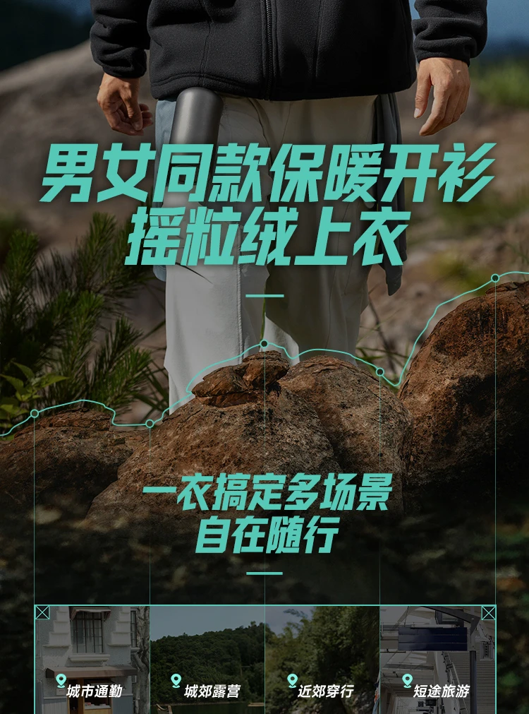 李宁户外CF溯男子加绒保暖防泼水宽松开衫摇粒绒上衣AWDV917